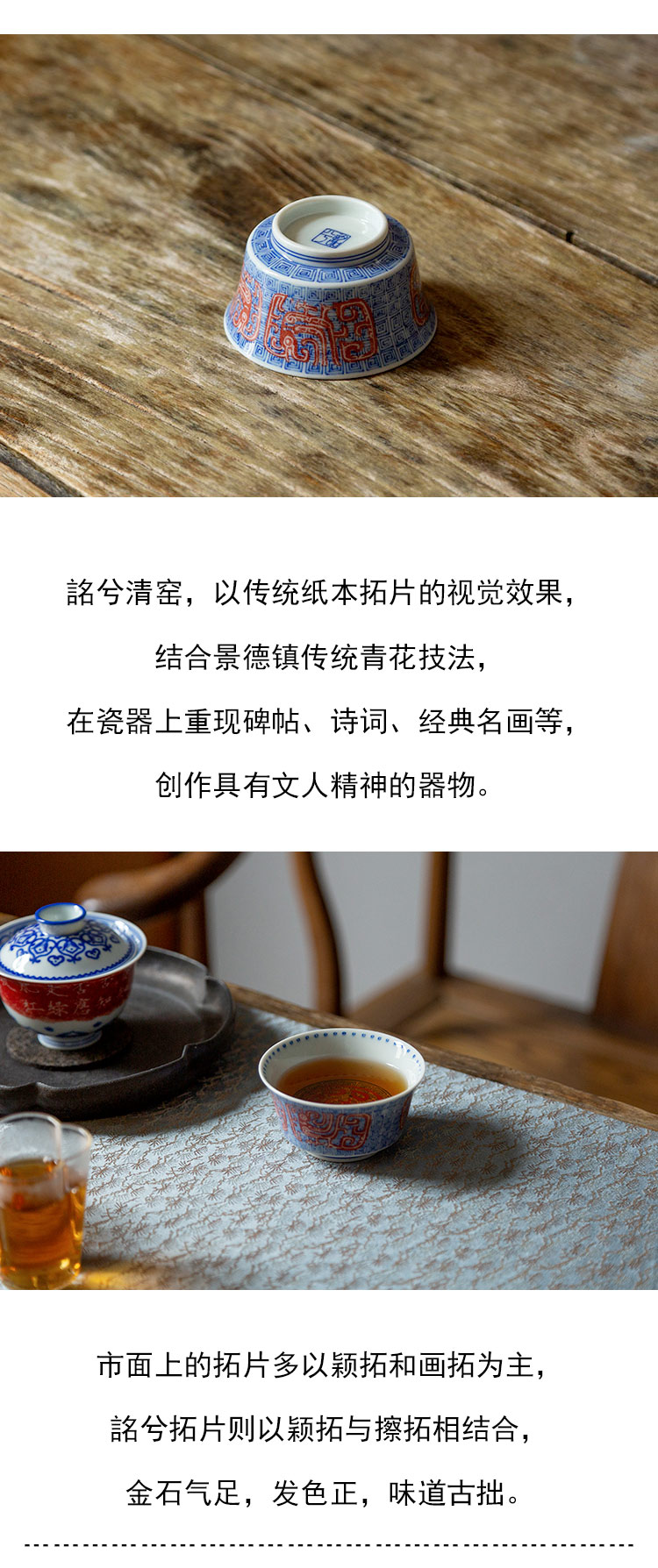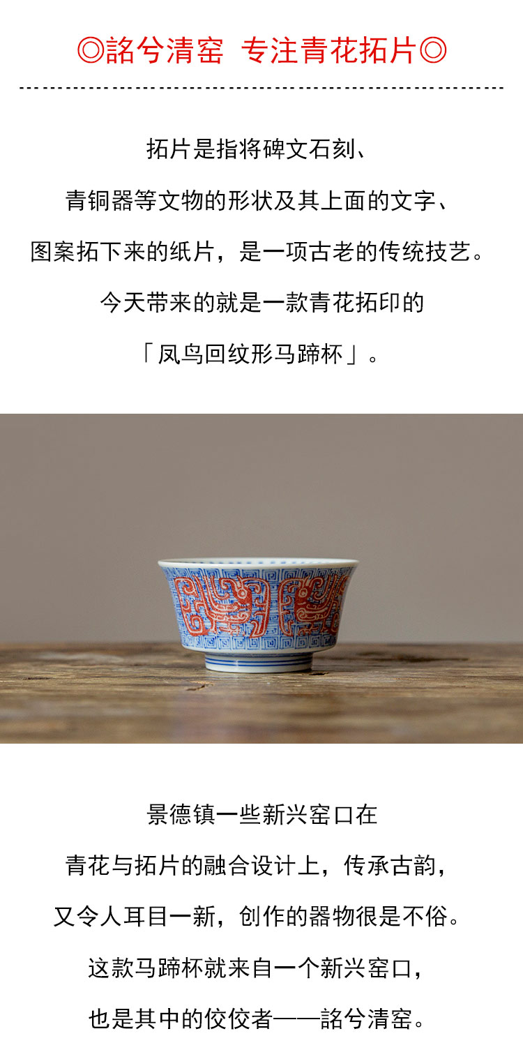 茶香记 凤鸟回纹形马蹄杯 詺兮清窑 青花拓片 古典纹饰 金石之气