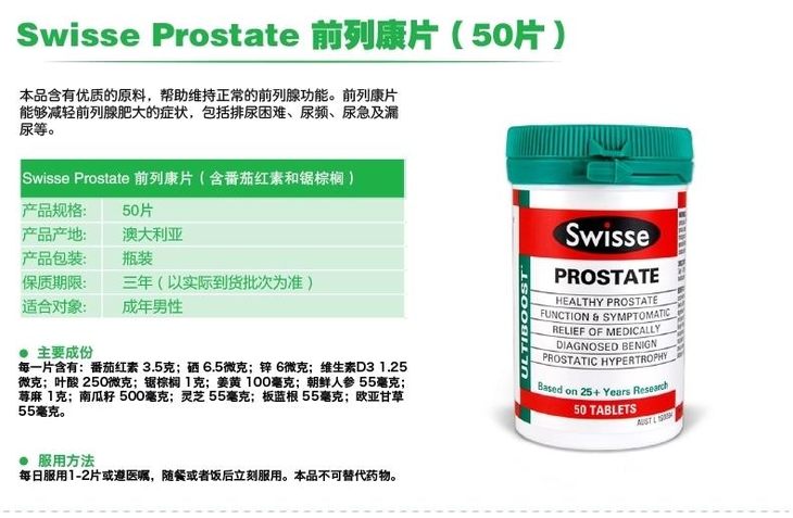 Swisse prostate番茄红素男士前列腺保健50粒