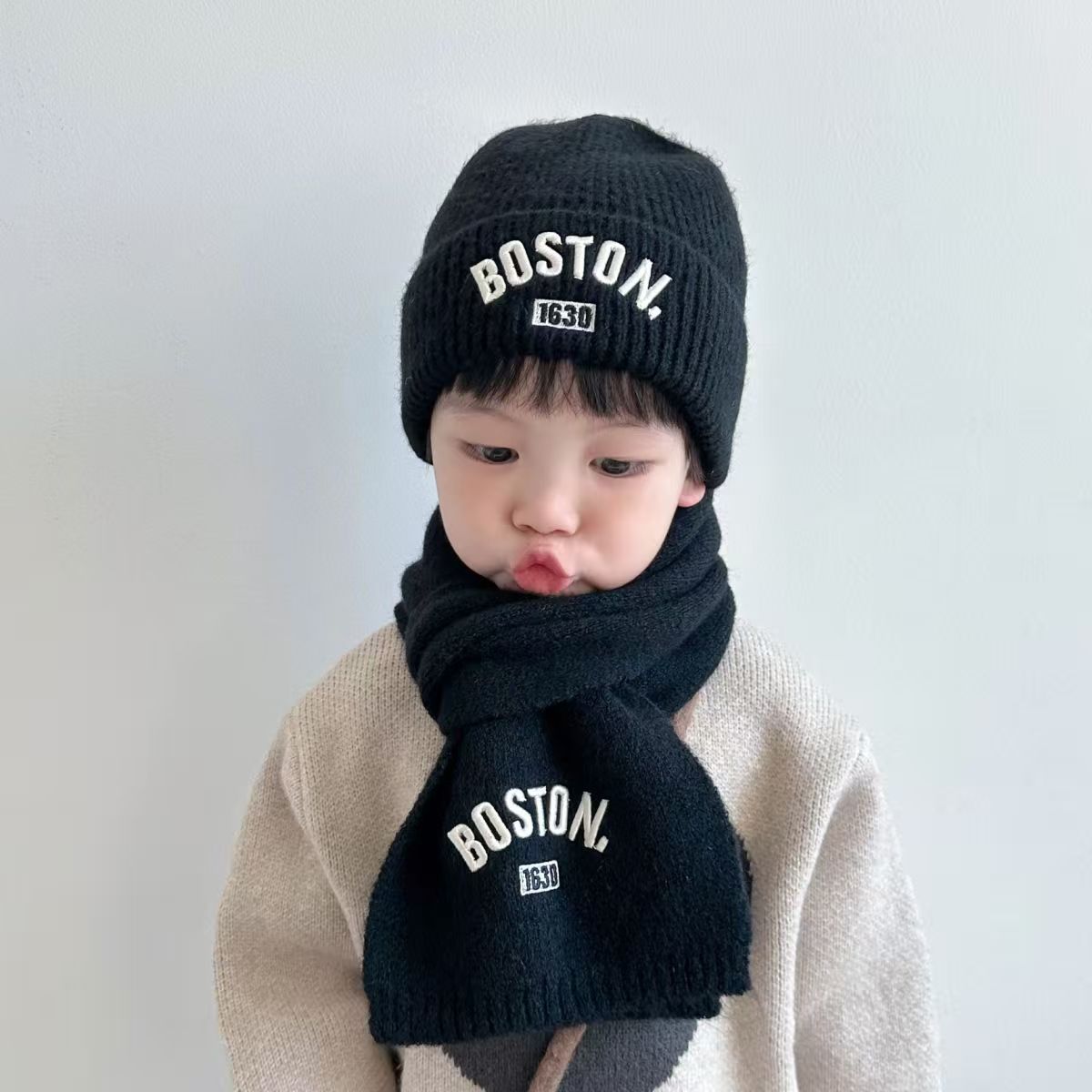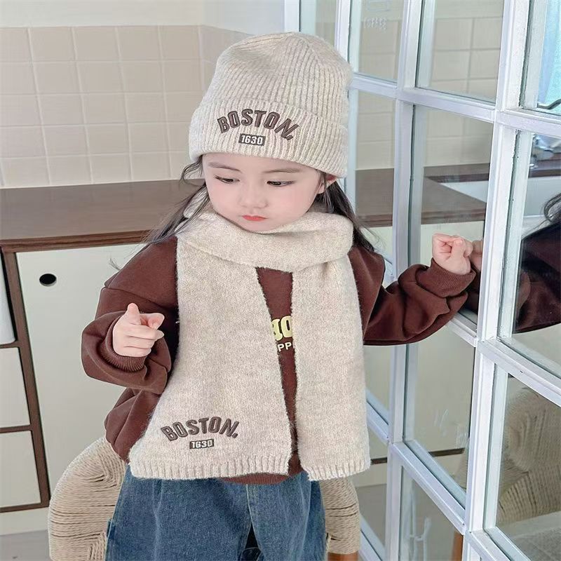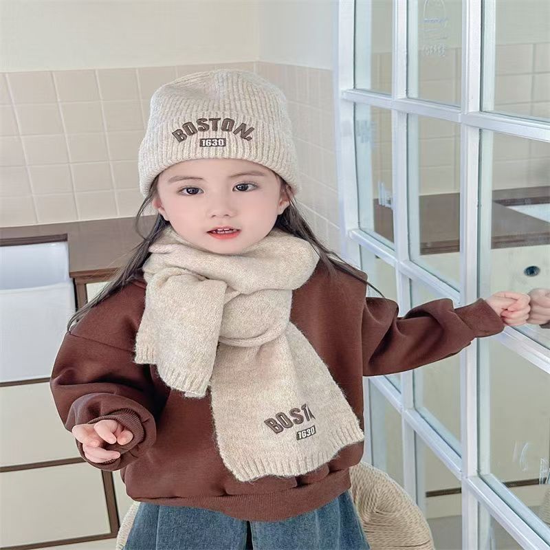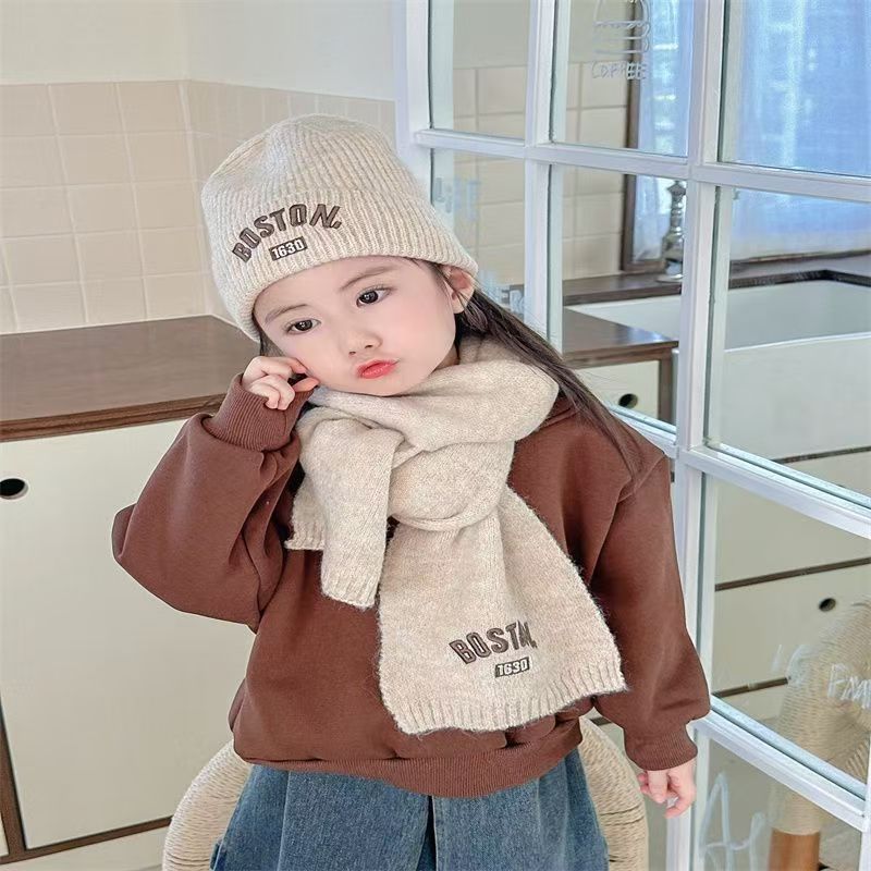 【新年款儿童帽子2件套】冬季秋冬季针织保暖套装男童宝宝女童韩版秋冬围巾毛线帽