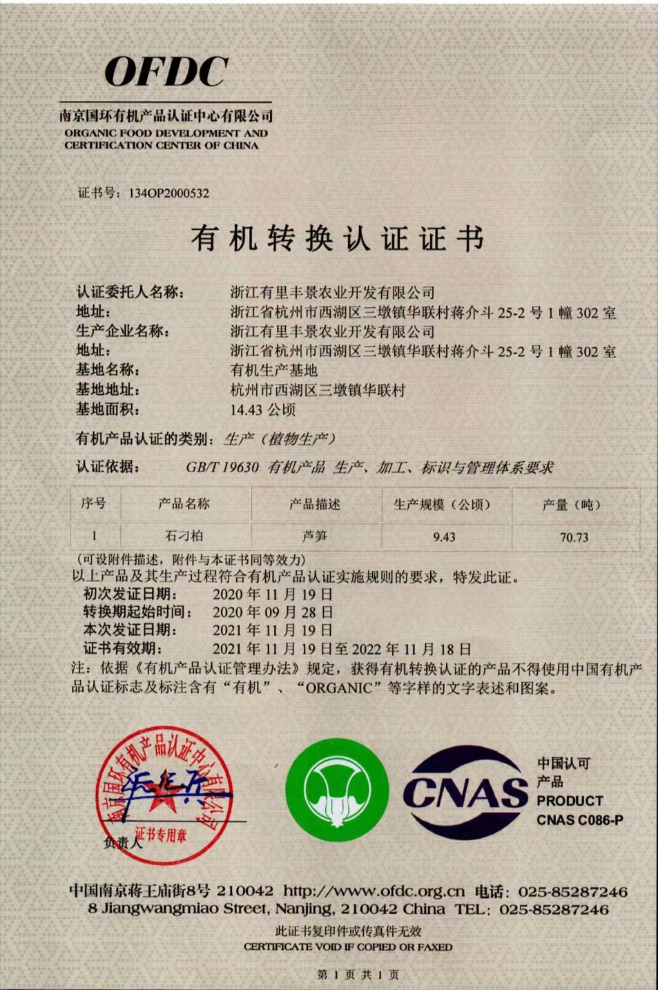 去年我们的有机芦笋是合作农户在江苏省靖江市马桥镇徐周村种植,但是在冬季,江浙地区的低温会使得芦笋断档好几个月,为了让大家能在冬天也能吃上有机芦笋,韩青在岳阳以及杭州新开拓了两个个有机芦笋种植基地,一样的种植方式,已经取得有机转换证书。