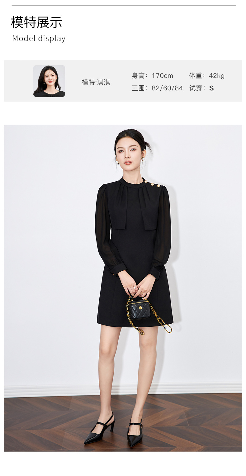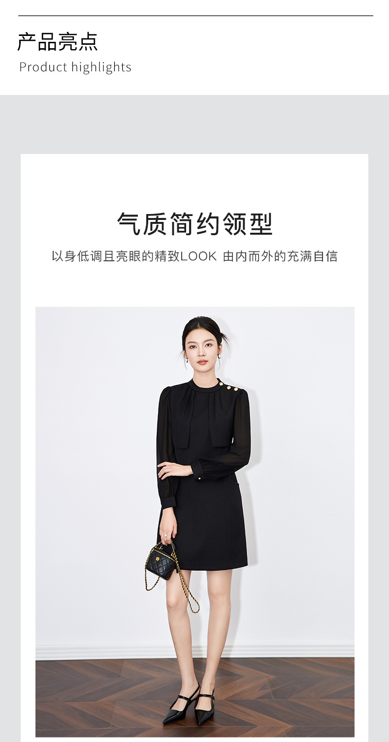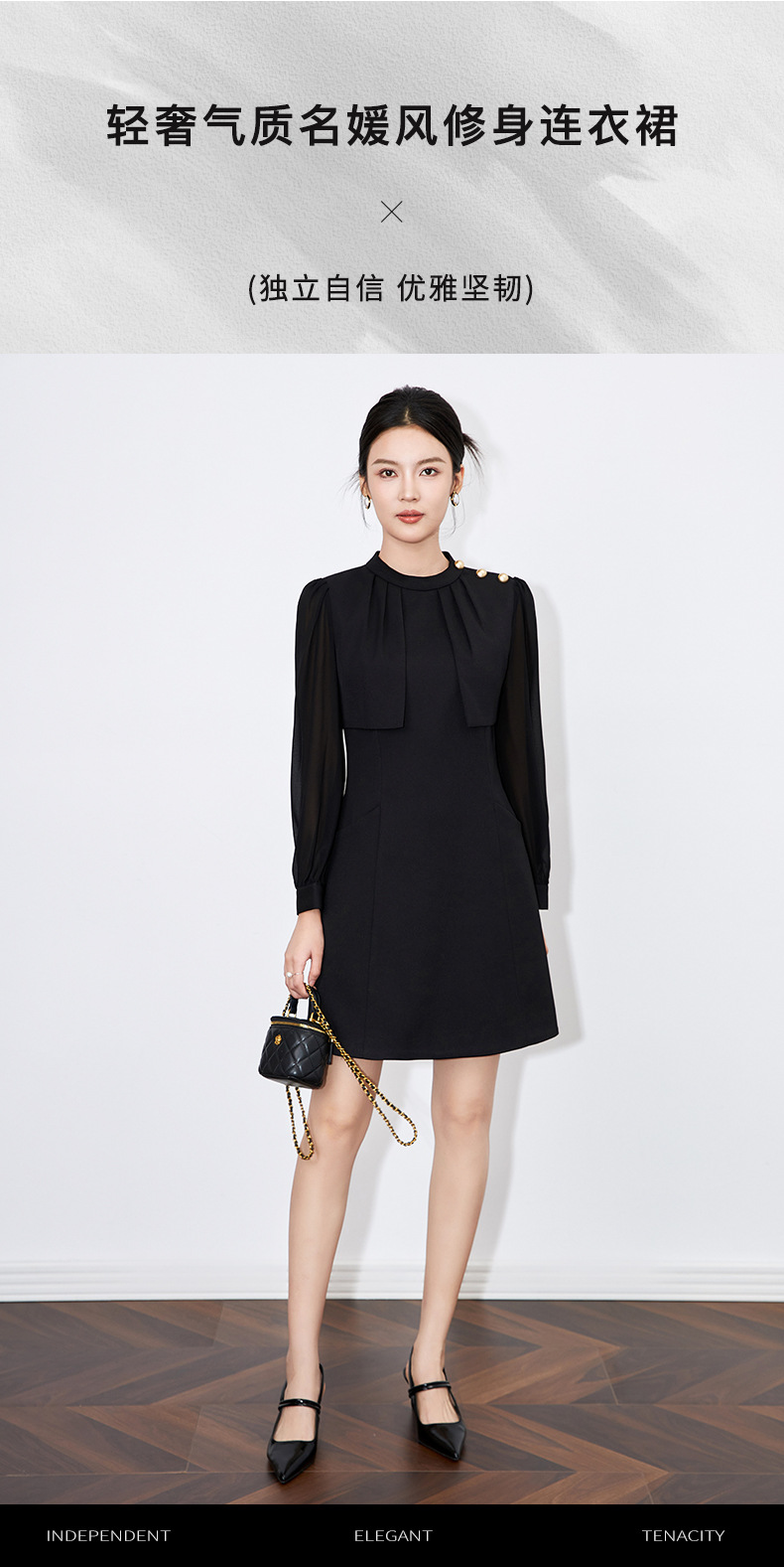 【高货wl】全新升级【铂金会员349/天猫469/差价120】(33725) 洛诗琳质名媛风连衣裙法式轻奢立领设计感修身显瘦裙子
