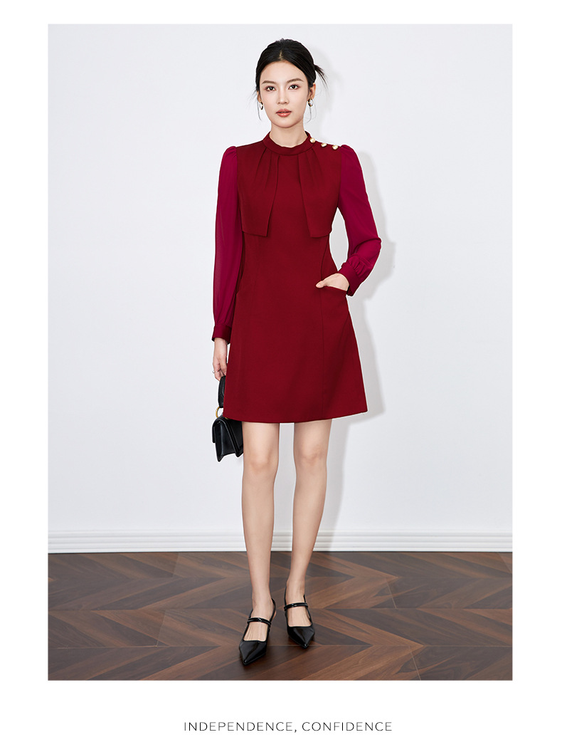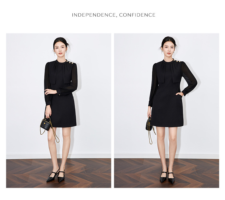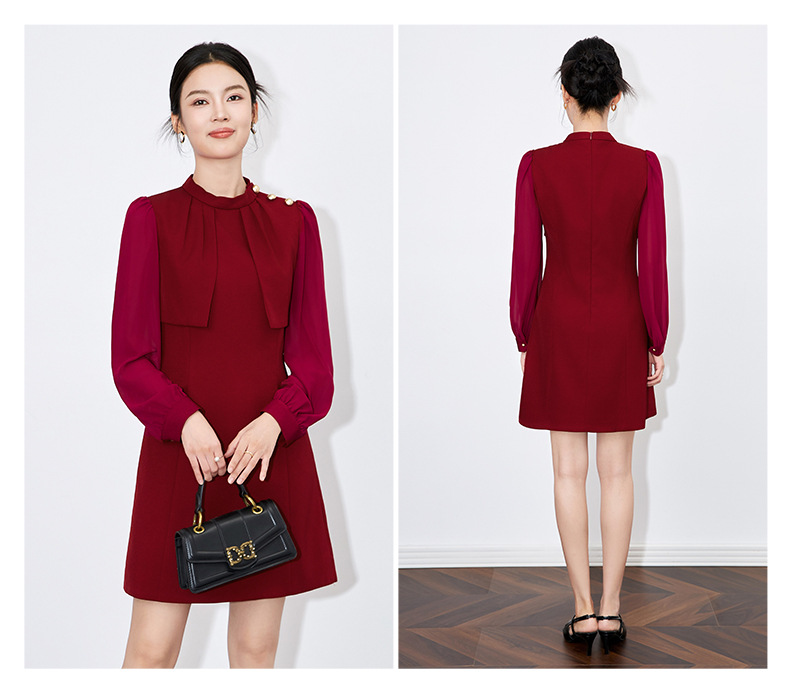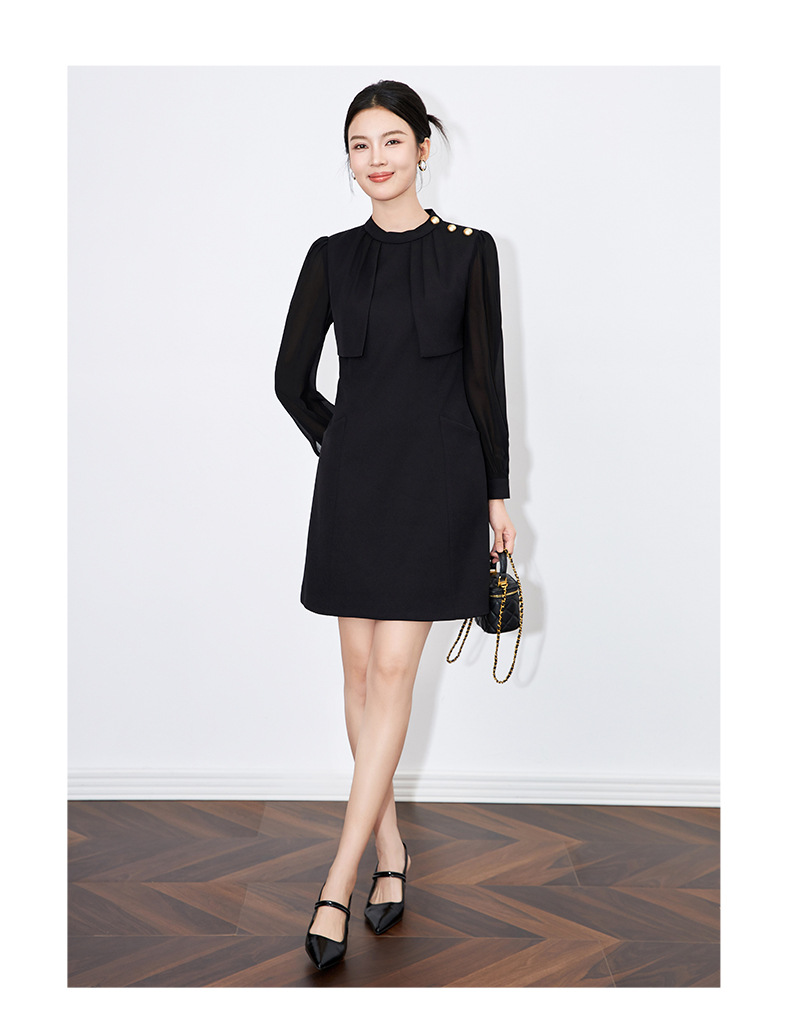 【高货wl】全新升级【铂金会员349/天猫469/差价120】(33725) 洛诗琳质名媛风连衣裙法式轻奢立领设计感修身显瘦裙子