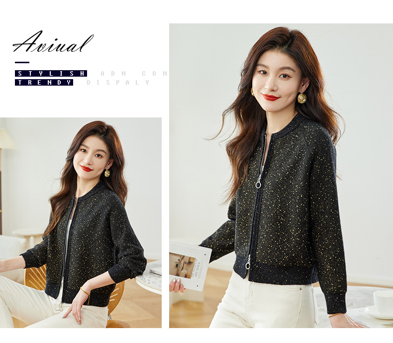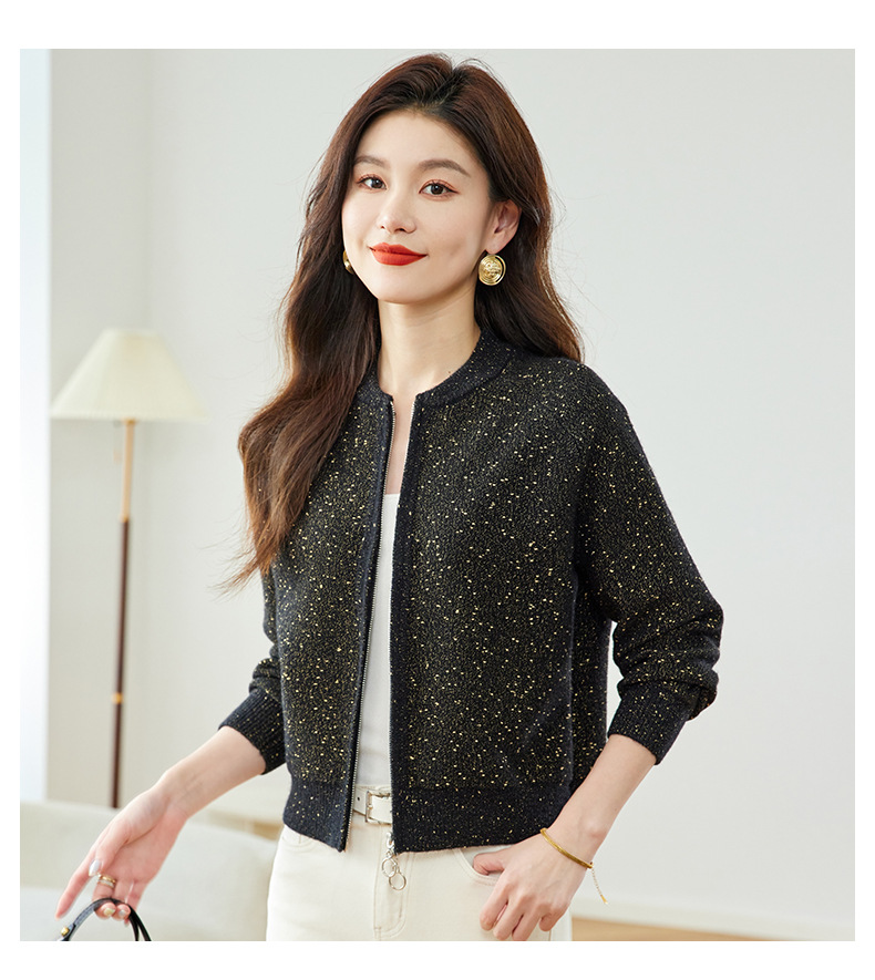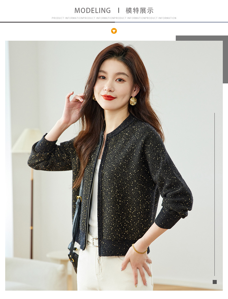 CC-MY-1129高腰短款针织开衫女早春秋2024新款小个子卫衣棒球服毛衣外套