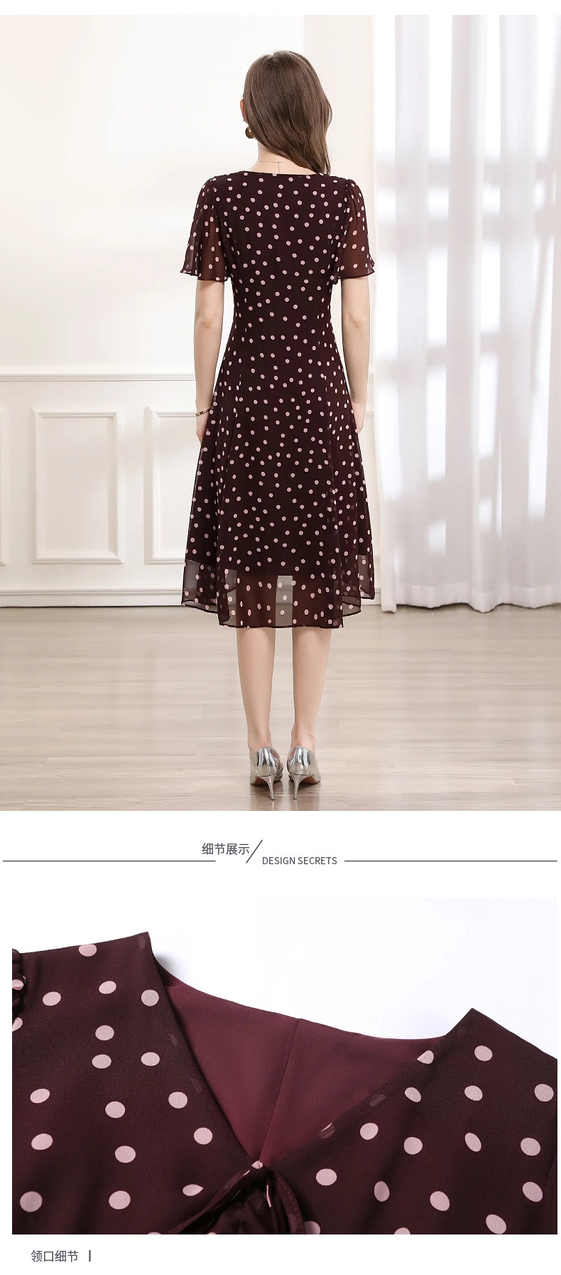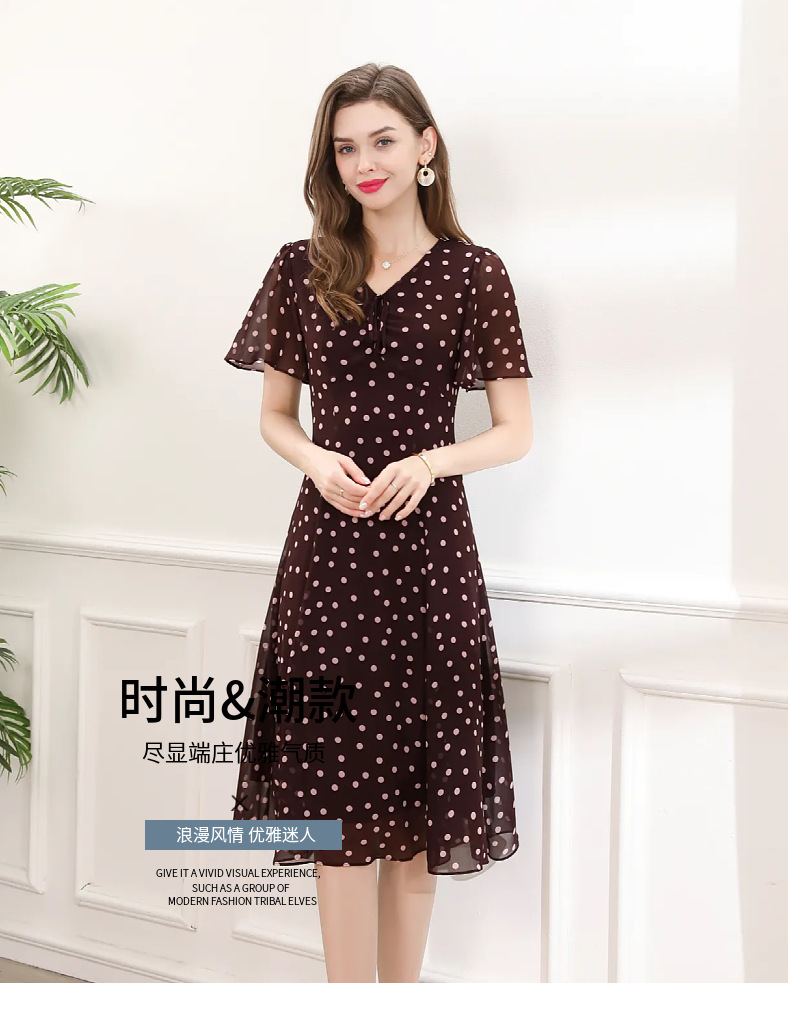 「高货deo」全新升级【铂金会员358/天猫479/差价121】(14613)洛诗琳法式雪纺连衣裙2025夏季新款V领收腰A摆波点连衣裙
