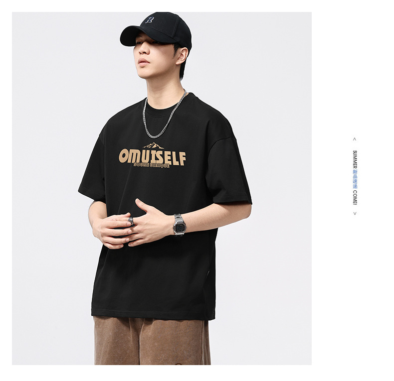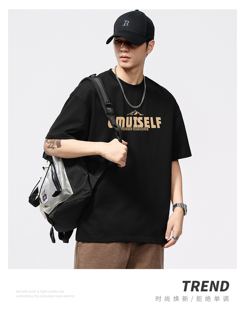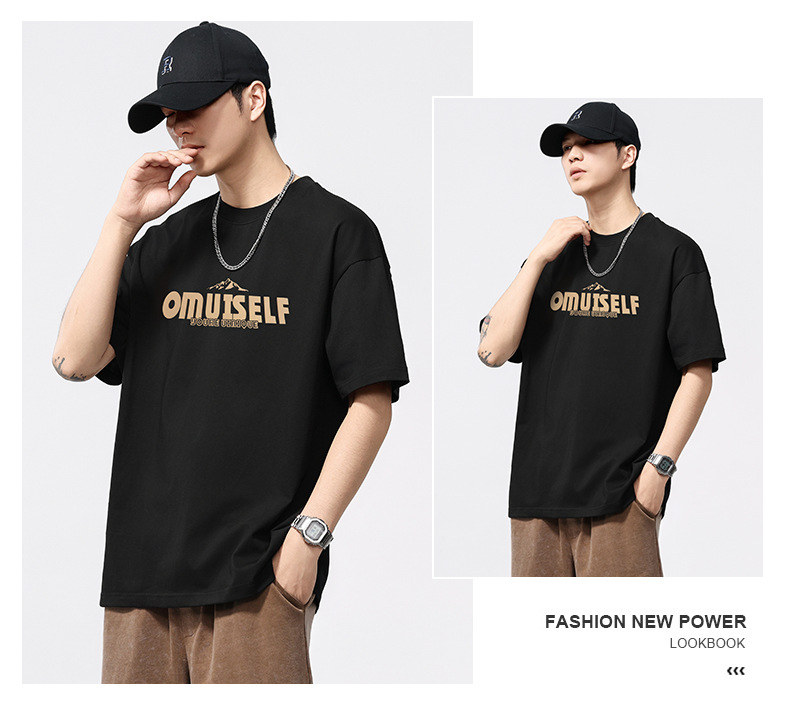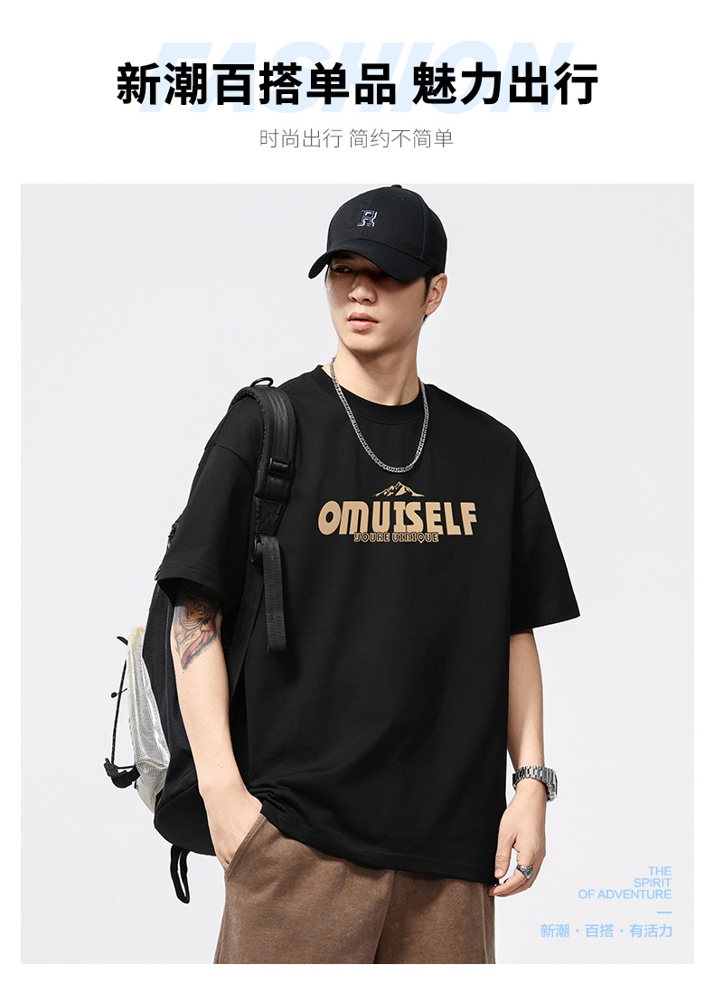 【DQ】大依优型大码男装260G重磅圆领T恤男宽松印花短袖半袖夏季新品潮款