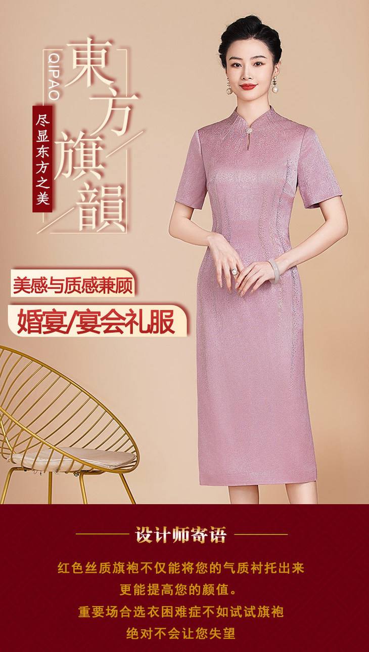新款高档醋酸旗袍中式婚礼,妈妈装礼服敬酒服高端气质款WX88620