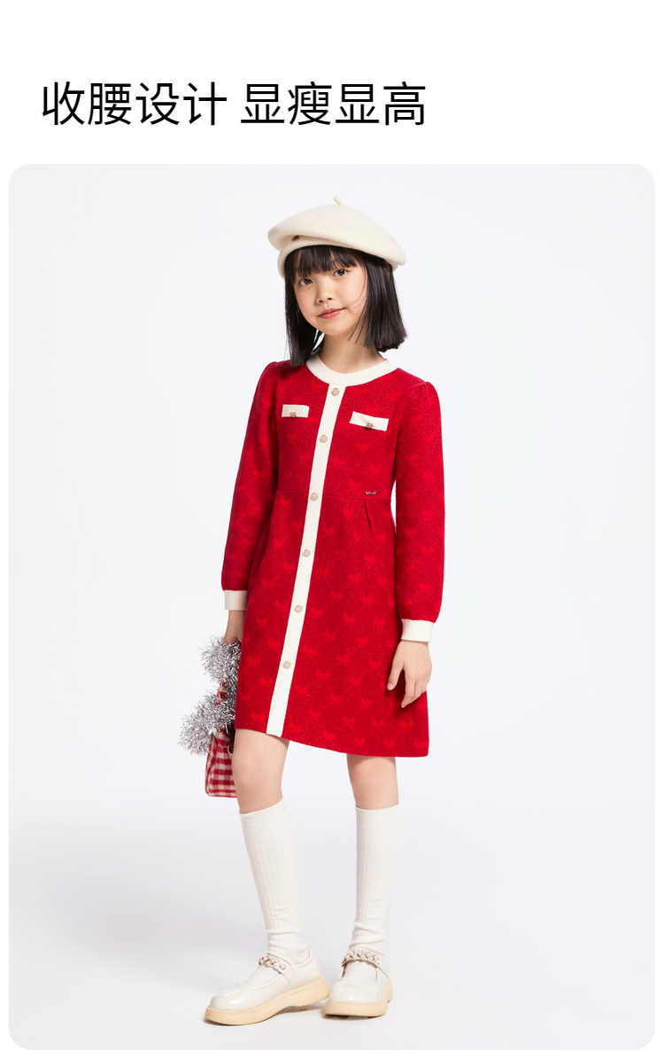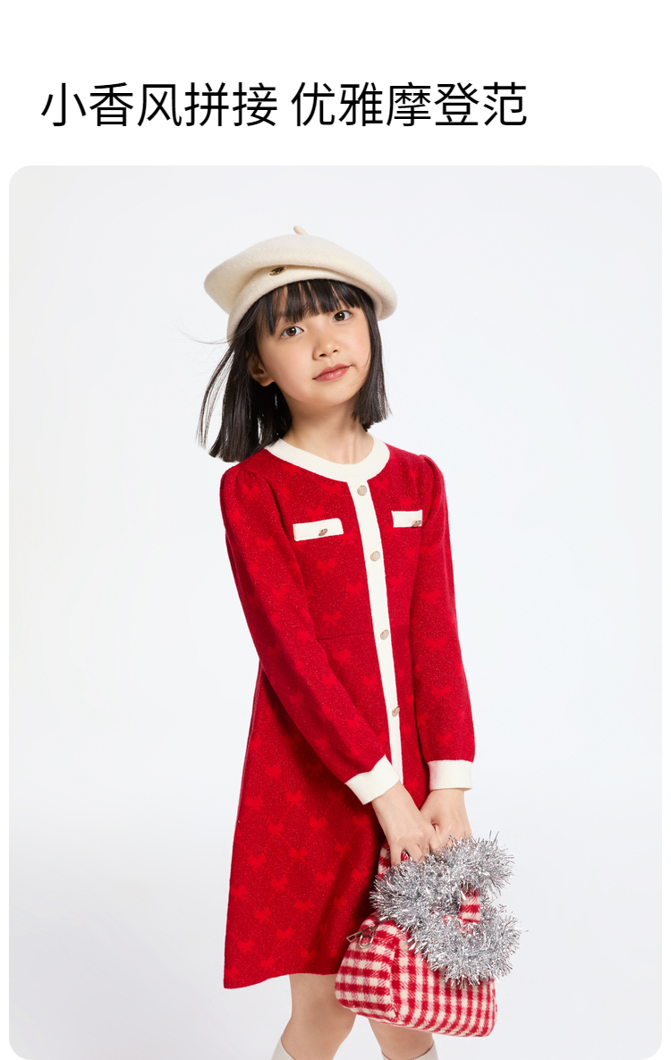女童小香风毛衣裙冬季新款安奈儿童装实体店同款AG443853