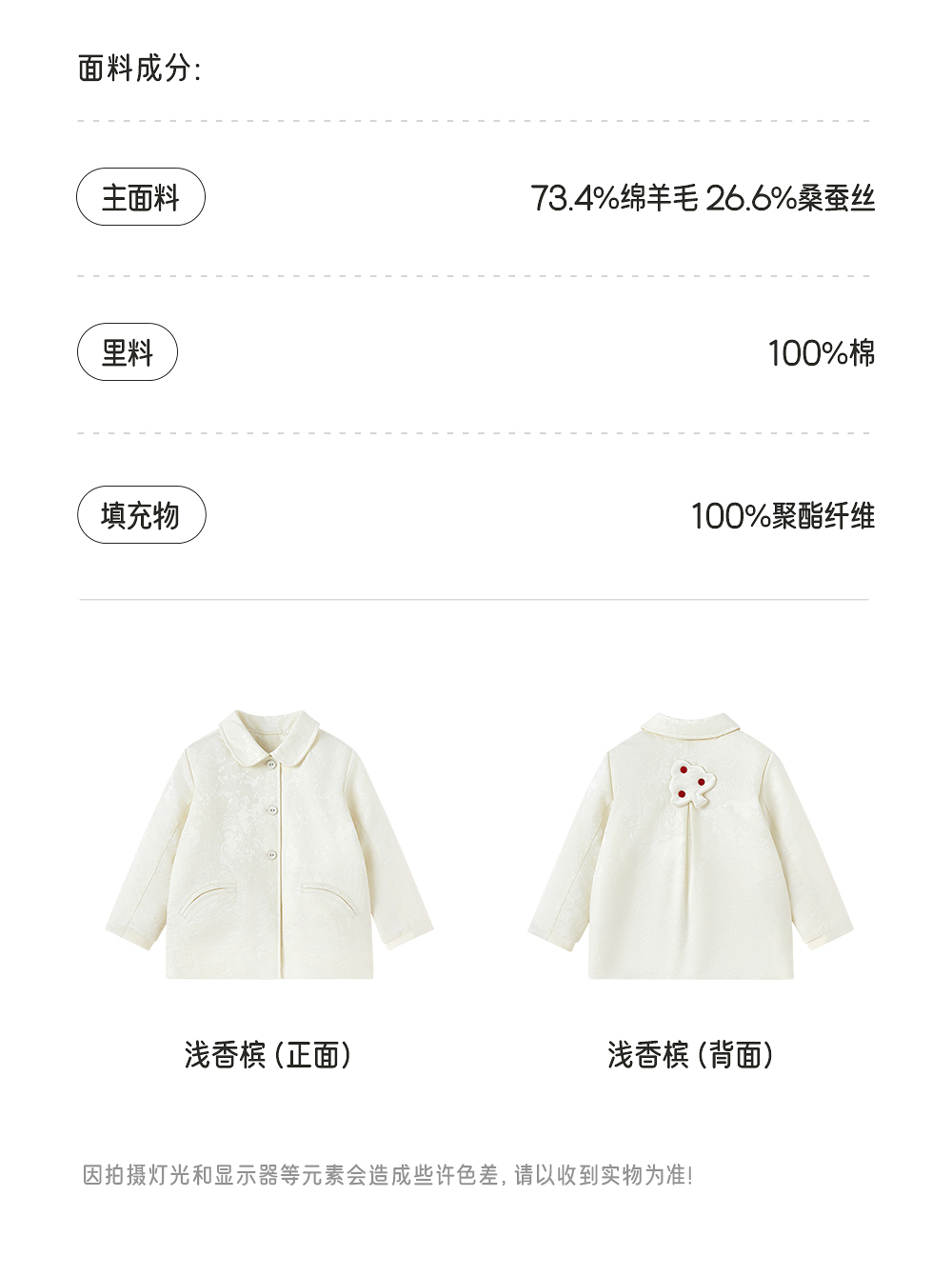 【高定系列】英氏儿童夹克绵羊毛桑蚕丝短外套秋冬保暖新款
