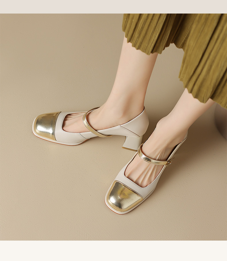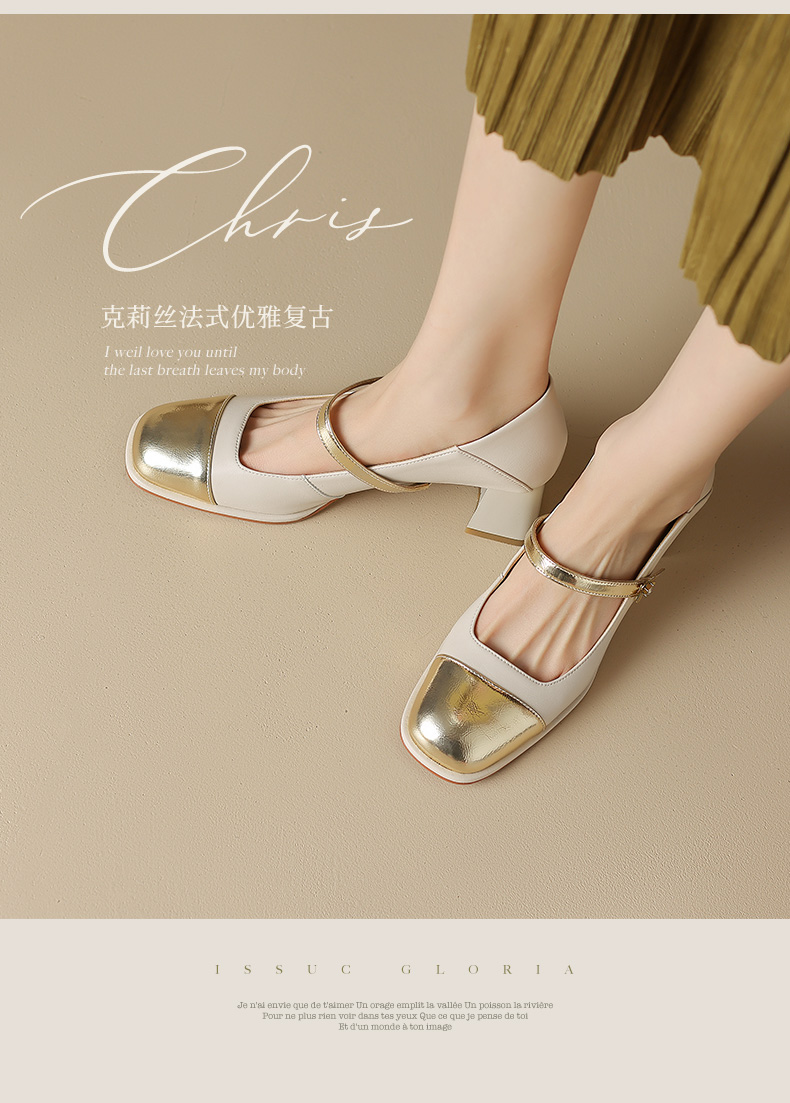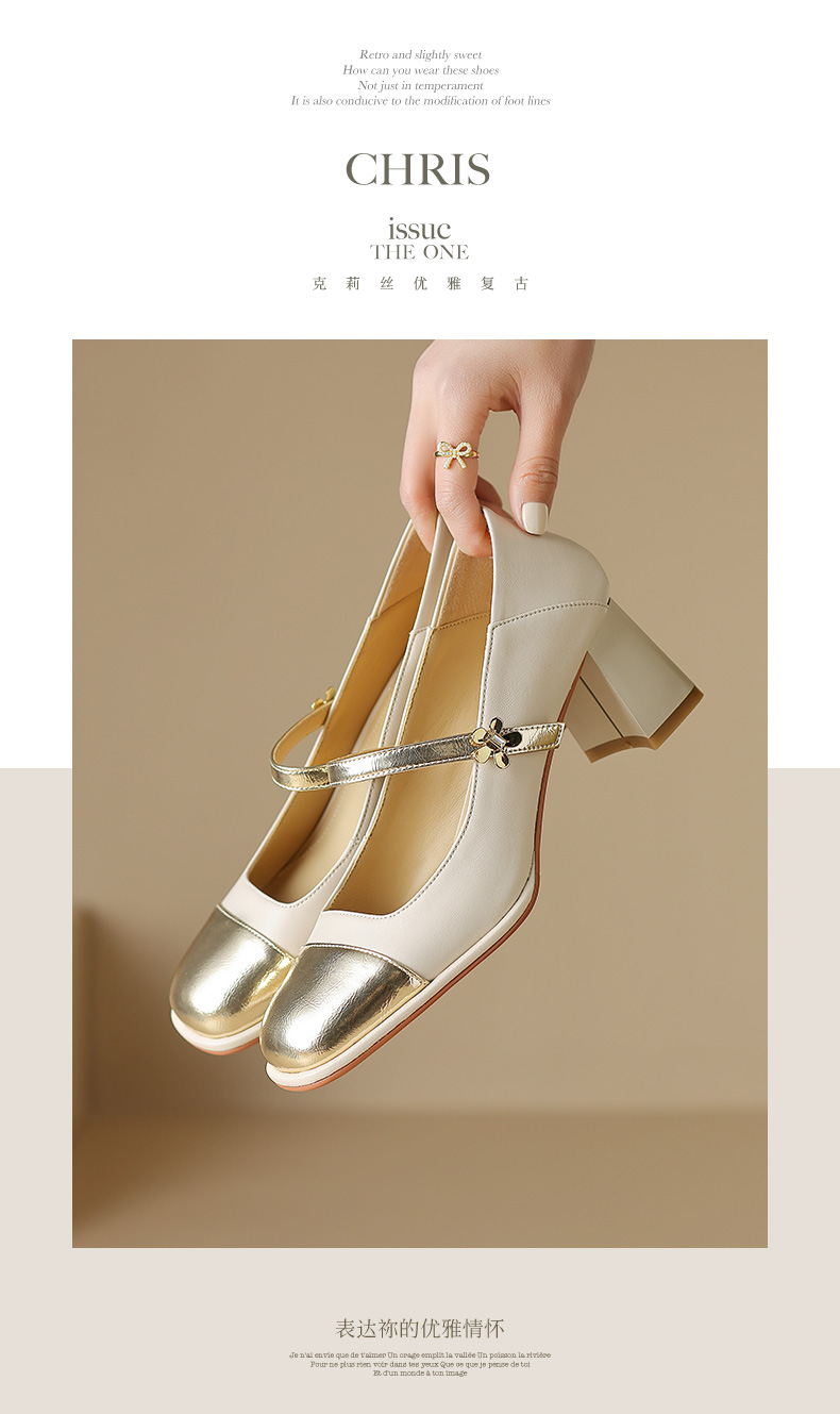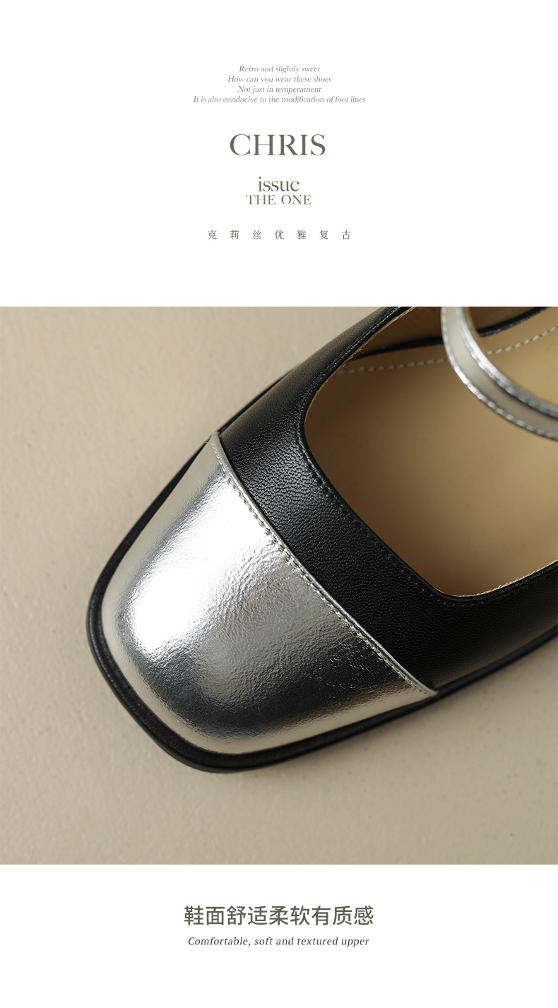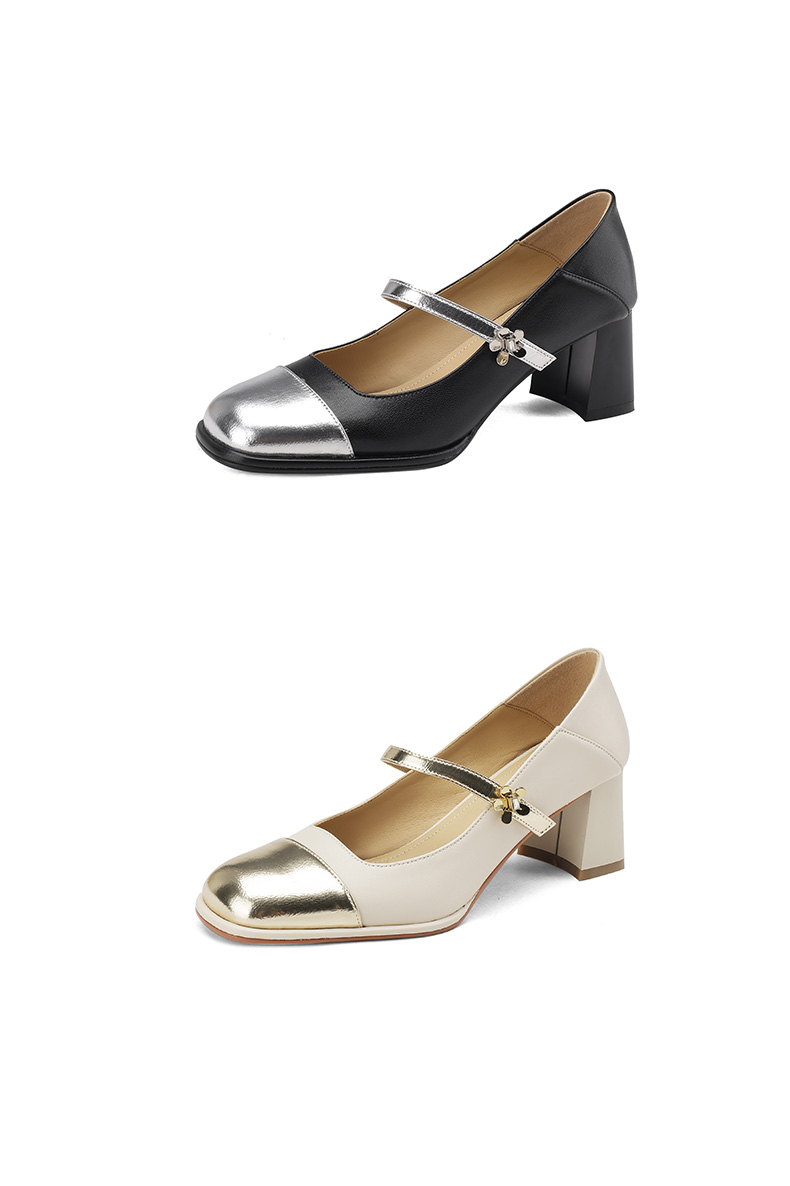 优雅百搭,真皮拼接平头浅口高跟单鞋WC-M7137