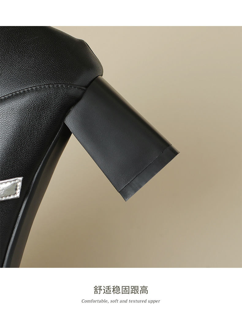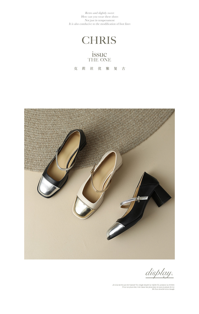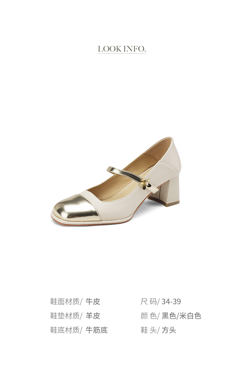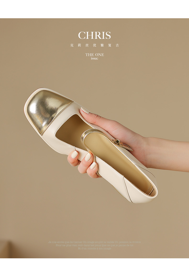 优雅百搭,真皮拼接平头浅口高跟单鞋WC-M7137