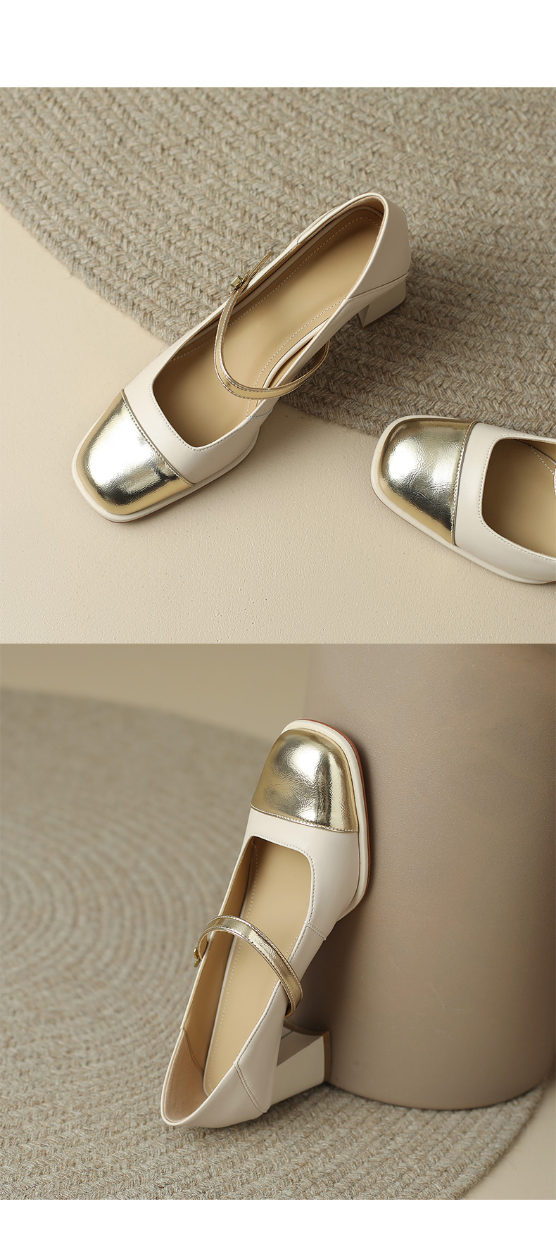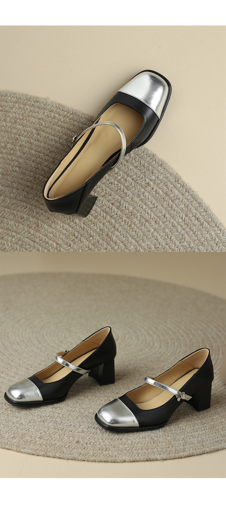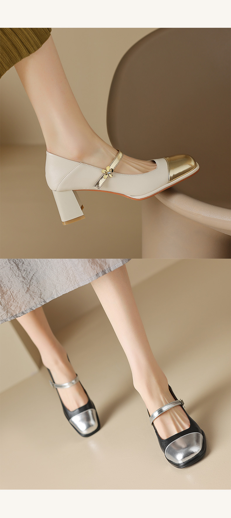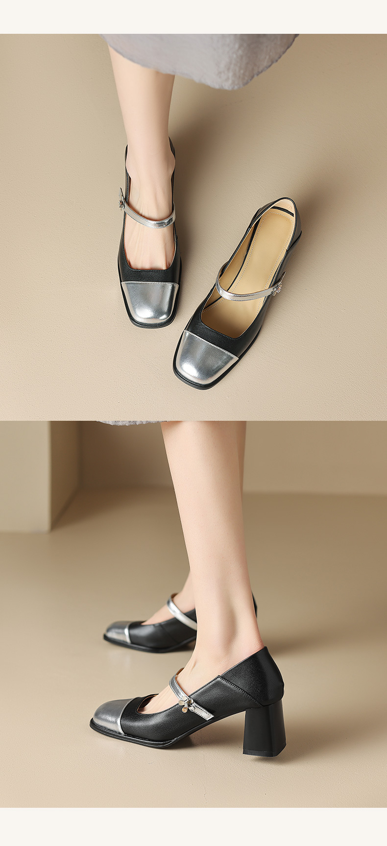 优雅百搭,真皮拼接平头浅口高跟单鞋WC-M7137