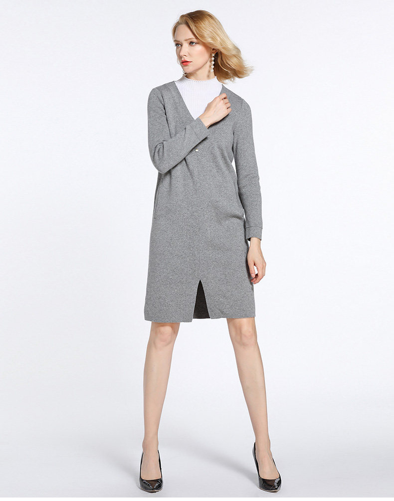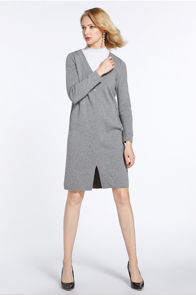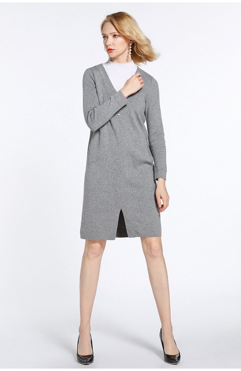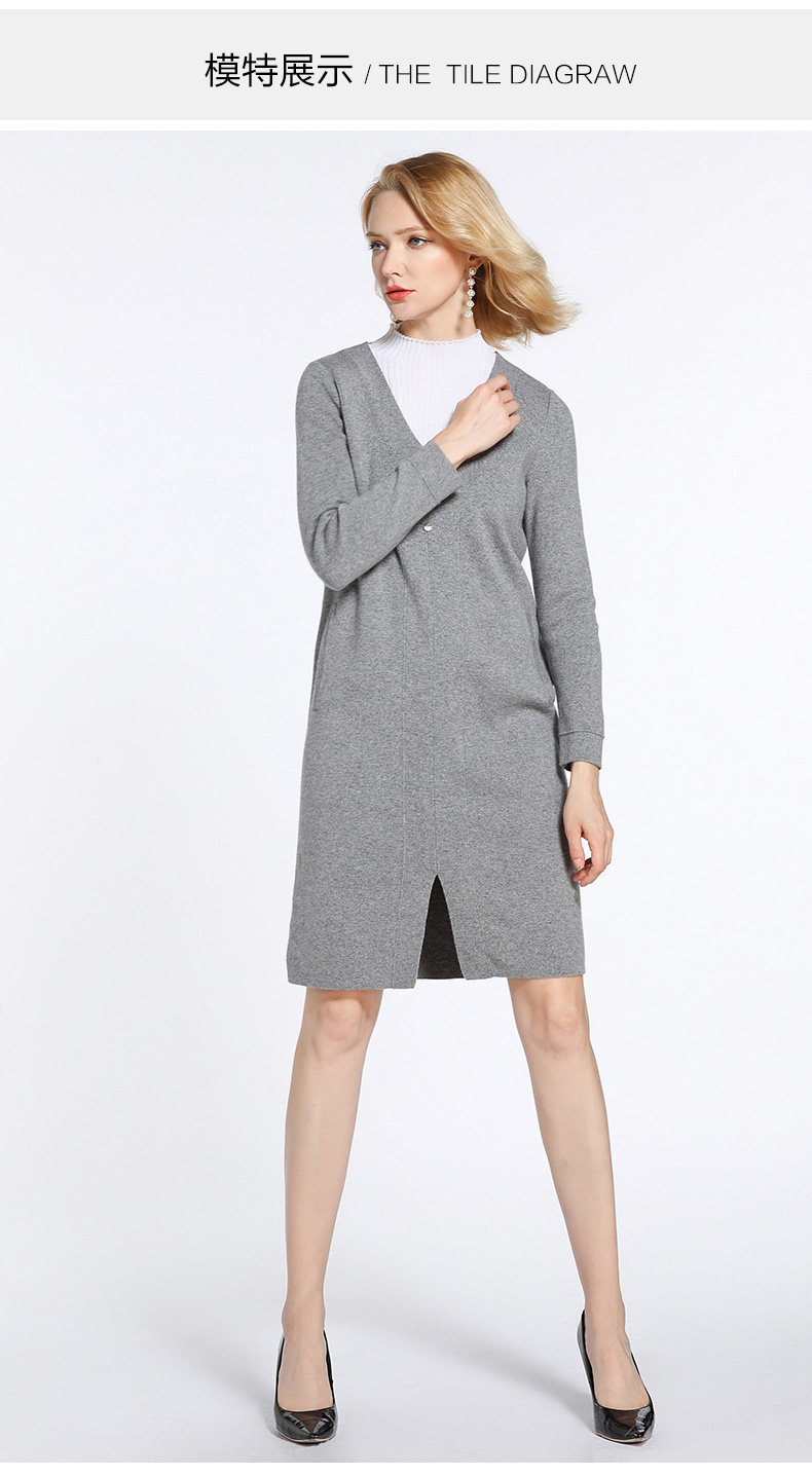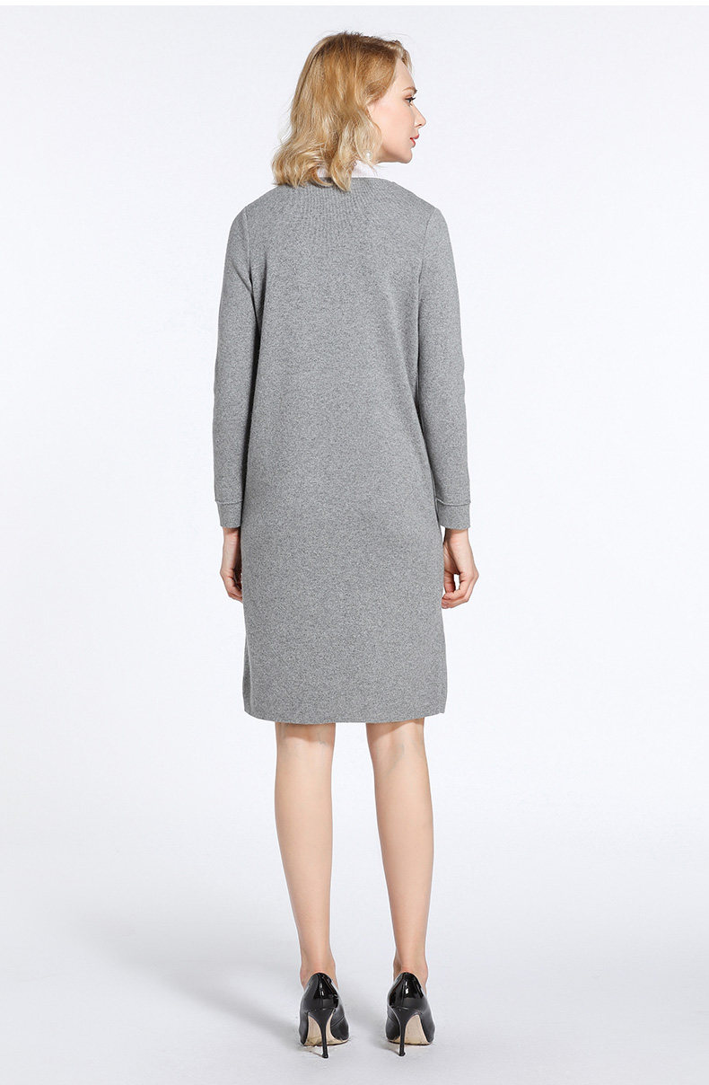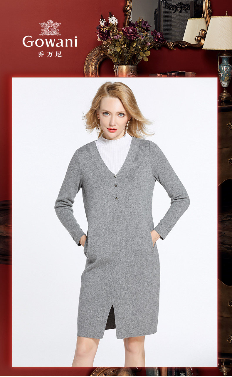 乔万尼冬季新款半高领假两件修身直筒羊毛针织连衣裙中长款厚EB4M012