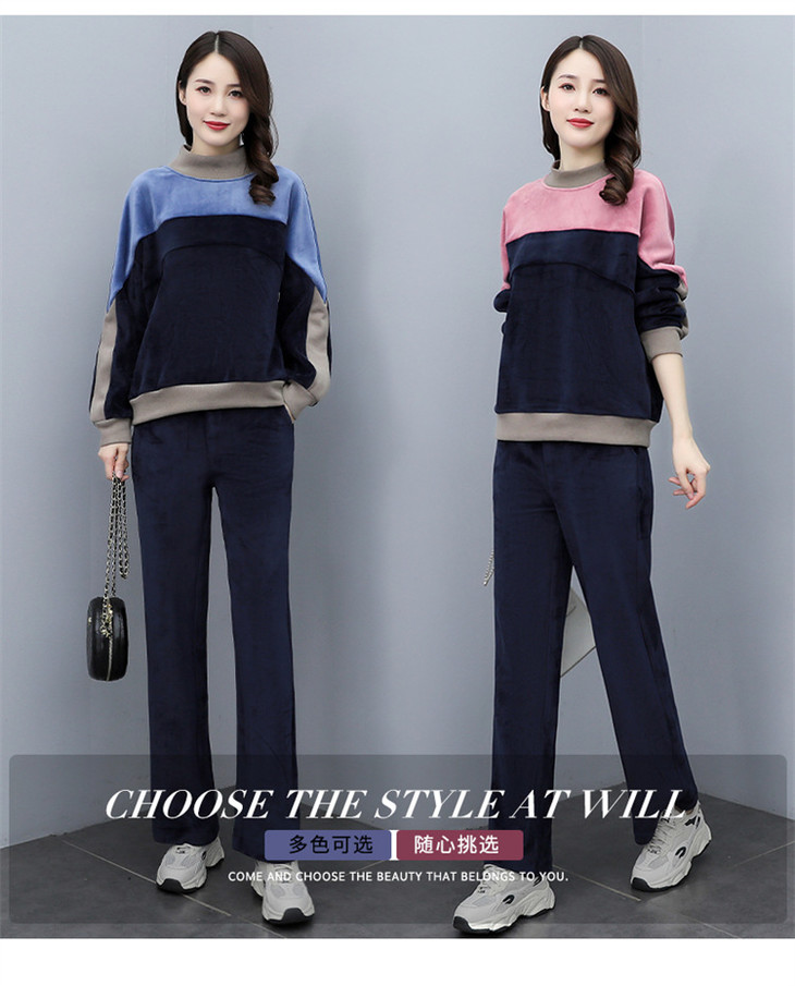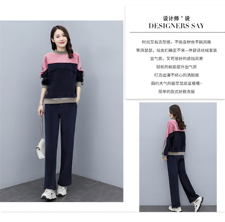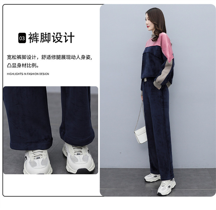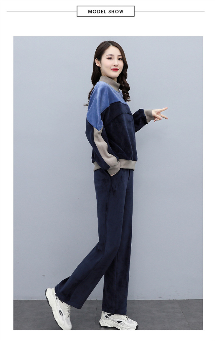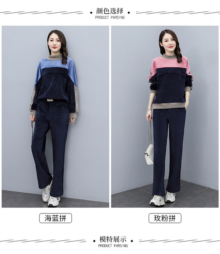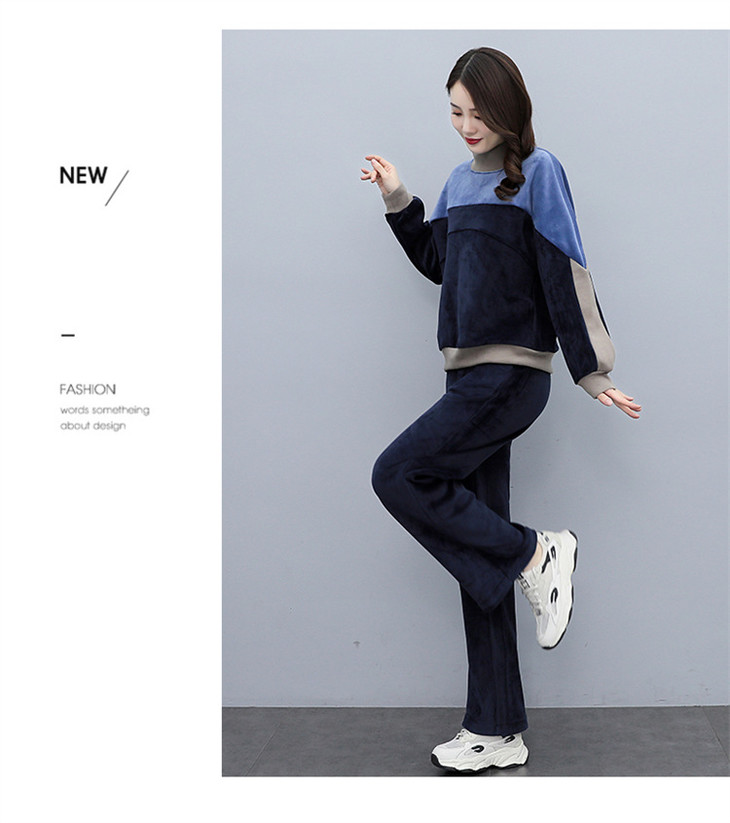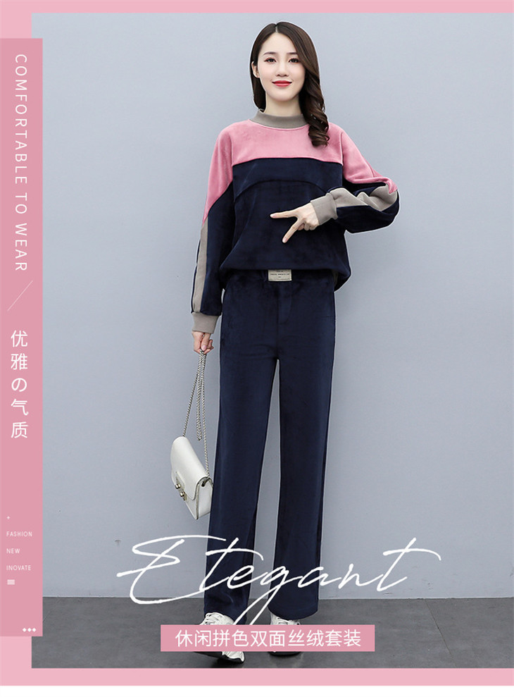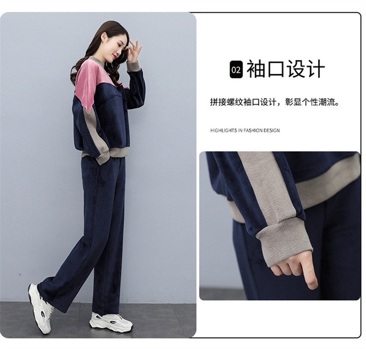 HR KSM8119加厚双面丝绒休闲运动拼色套装