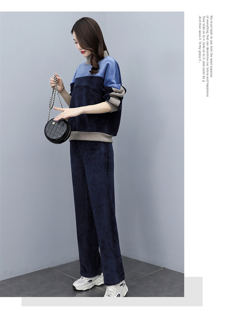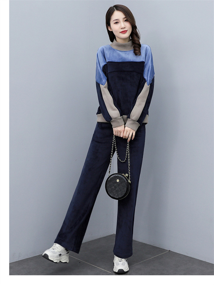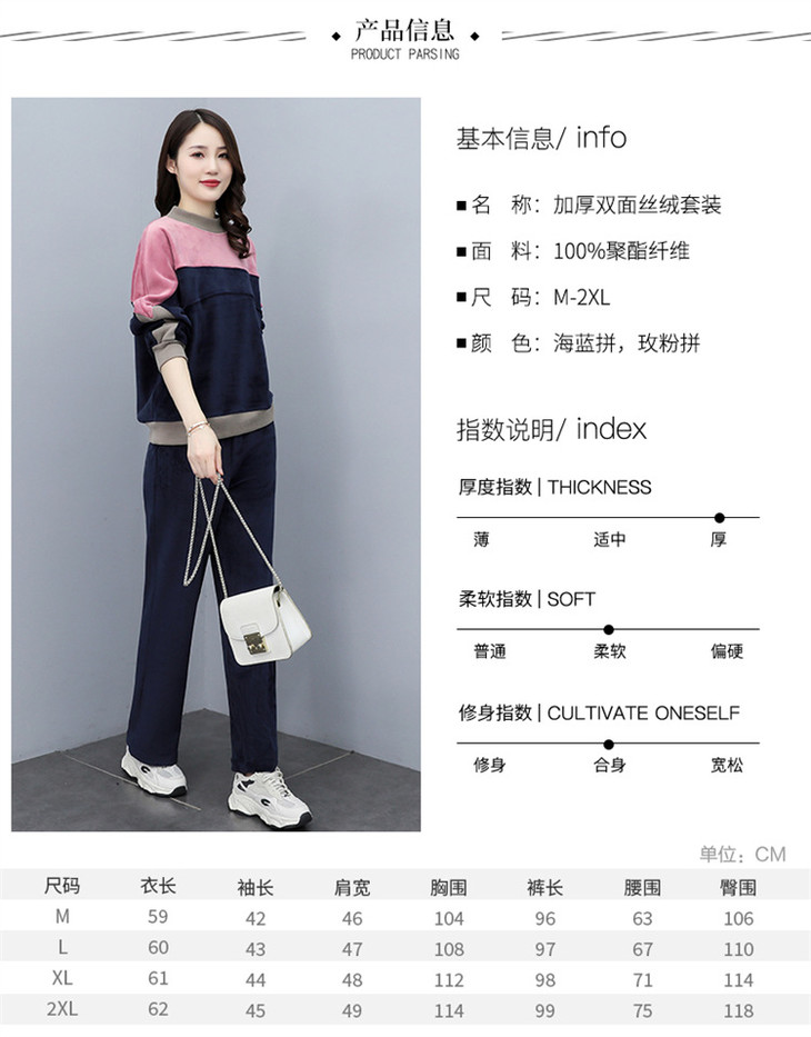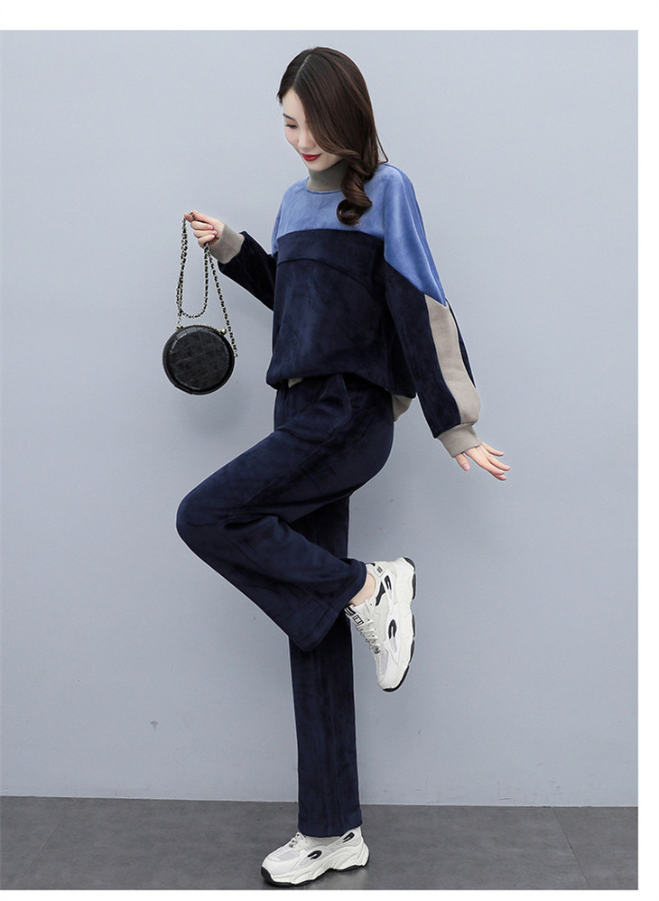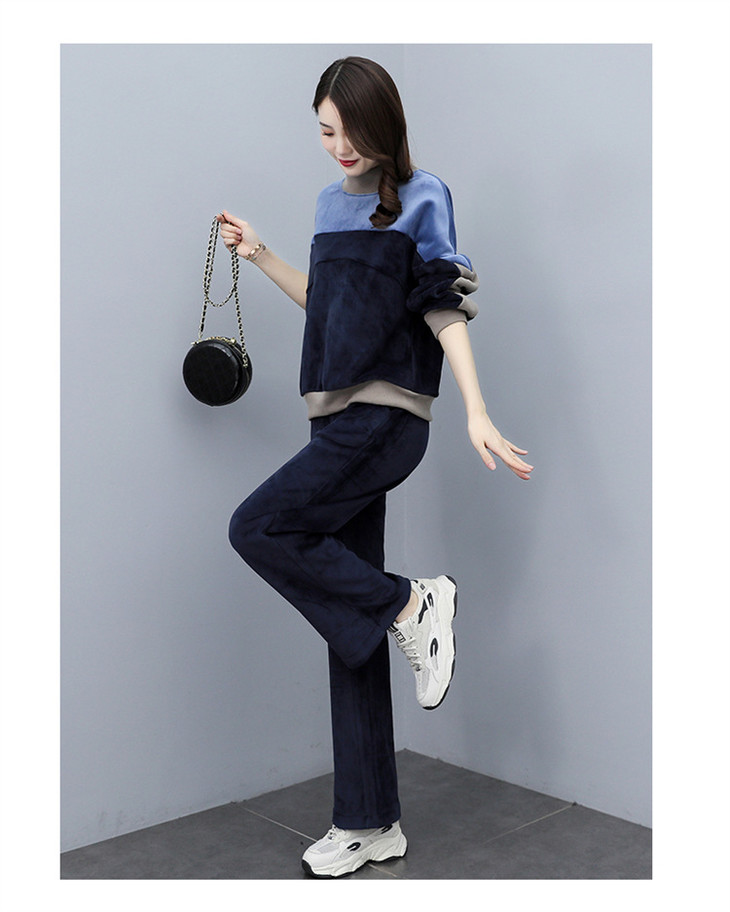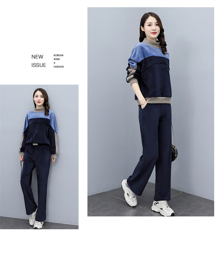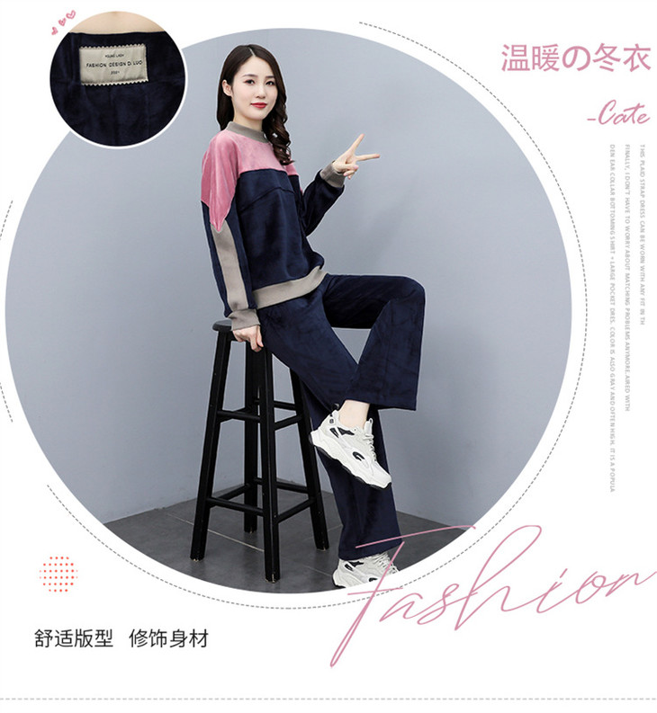HR KSM8119加厚双面丝绒休闲运动拼色套装