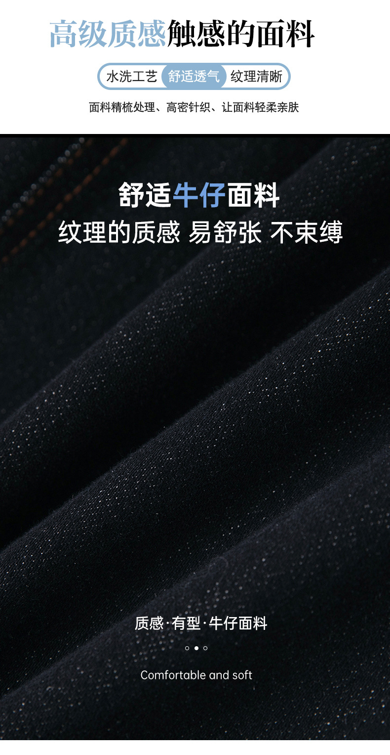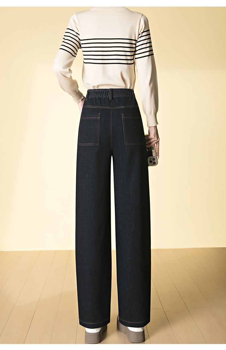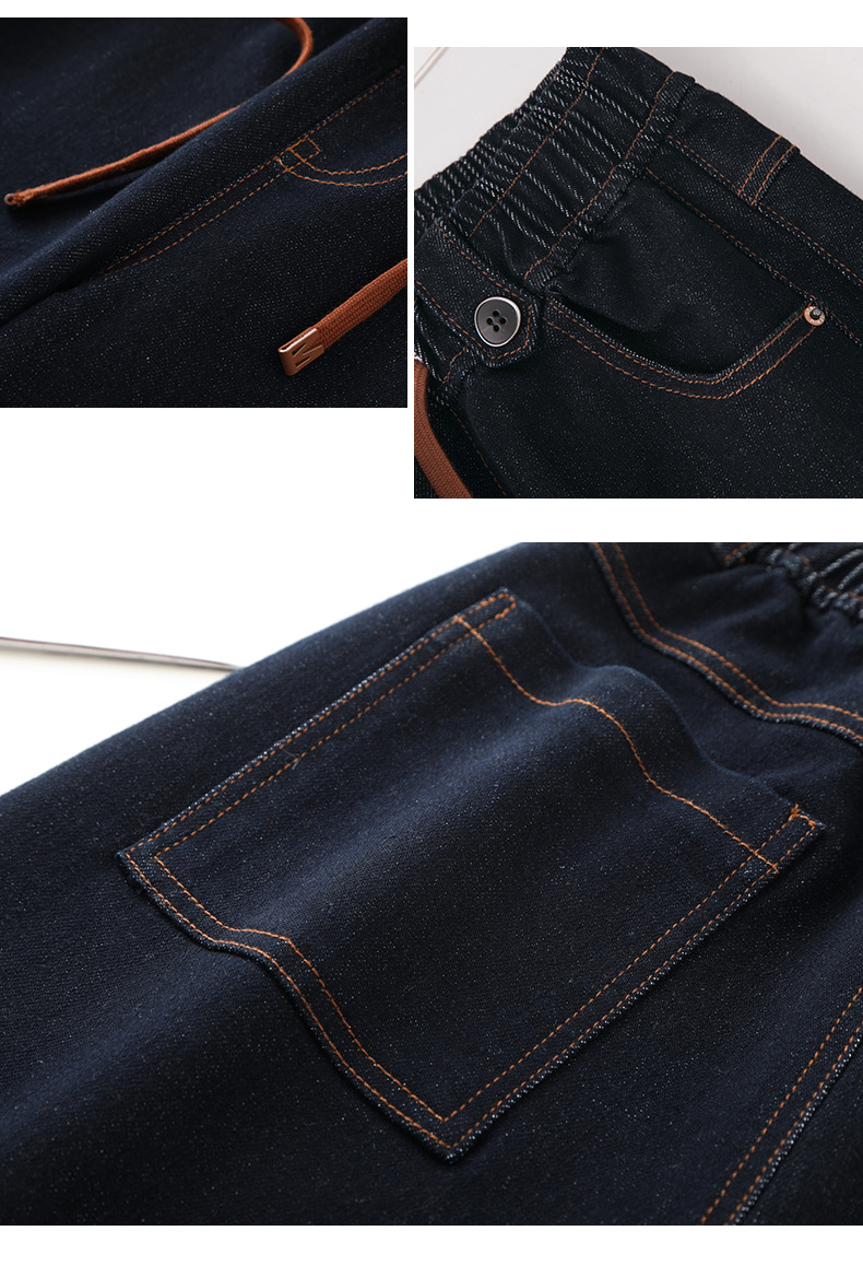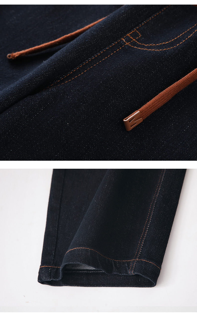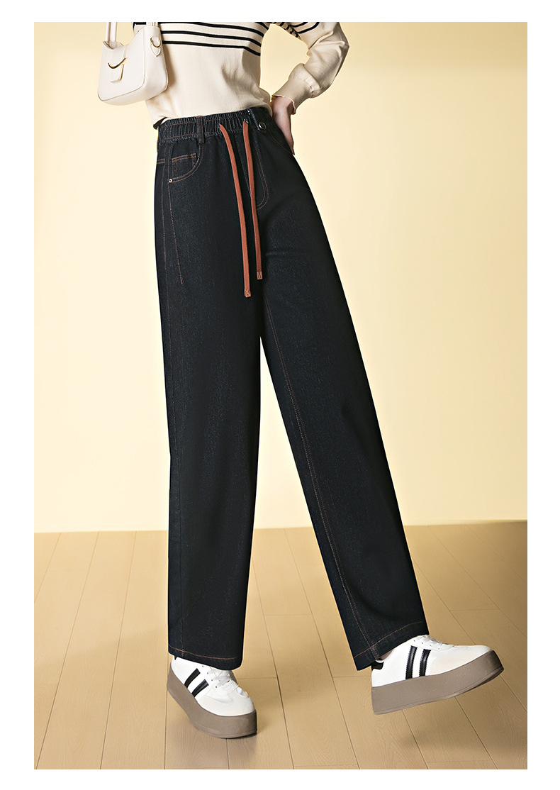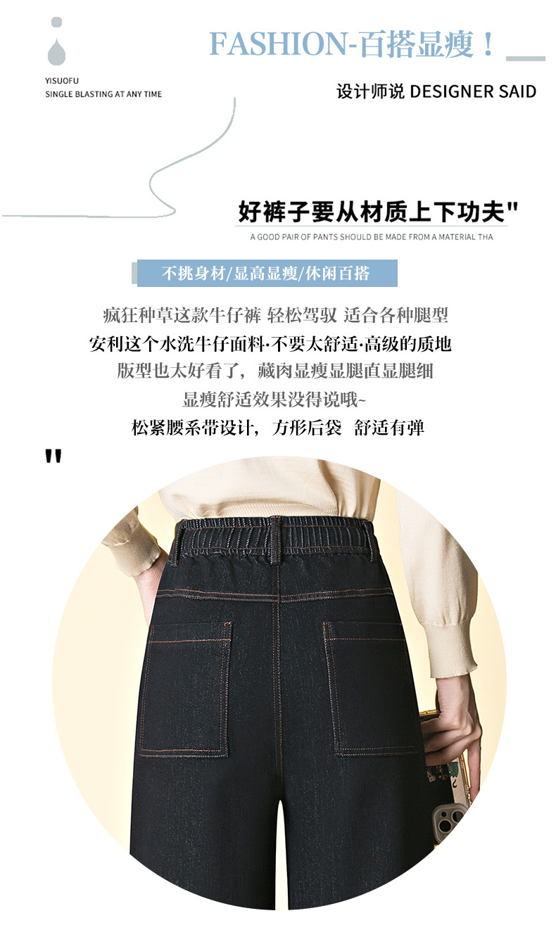 HSS 3037松紧腰系带牛仔弯刀裤水洗宽松显瘦休闲直筒裤