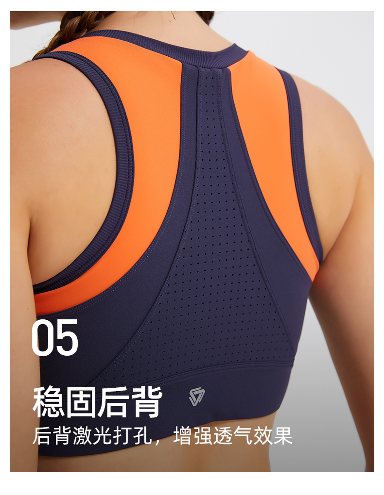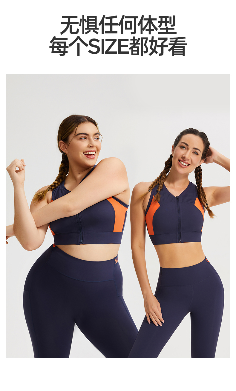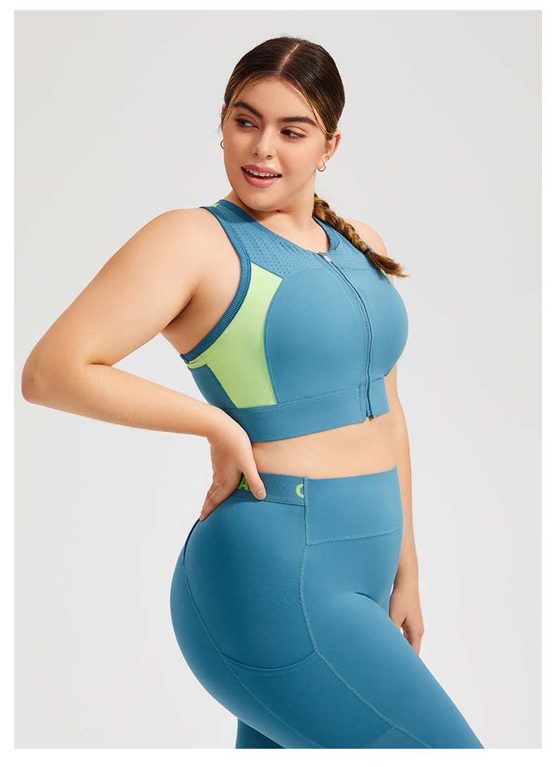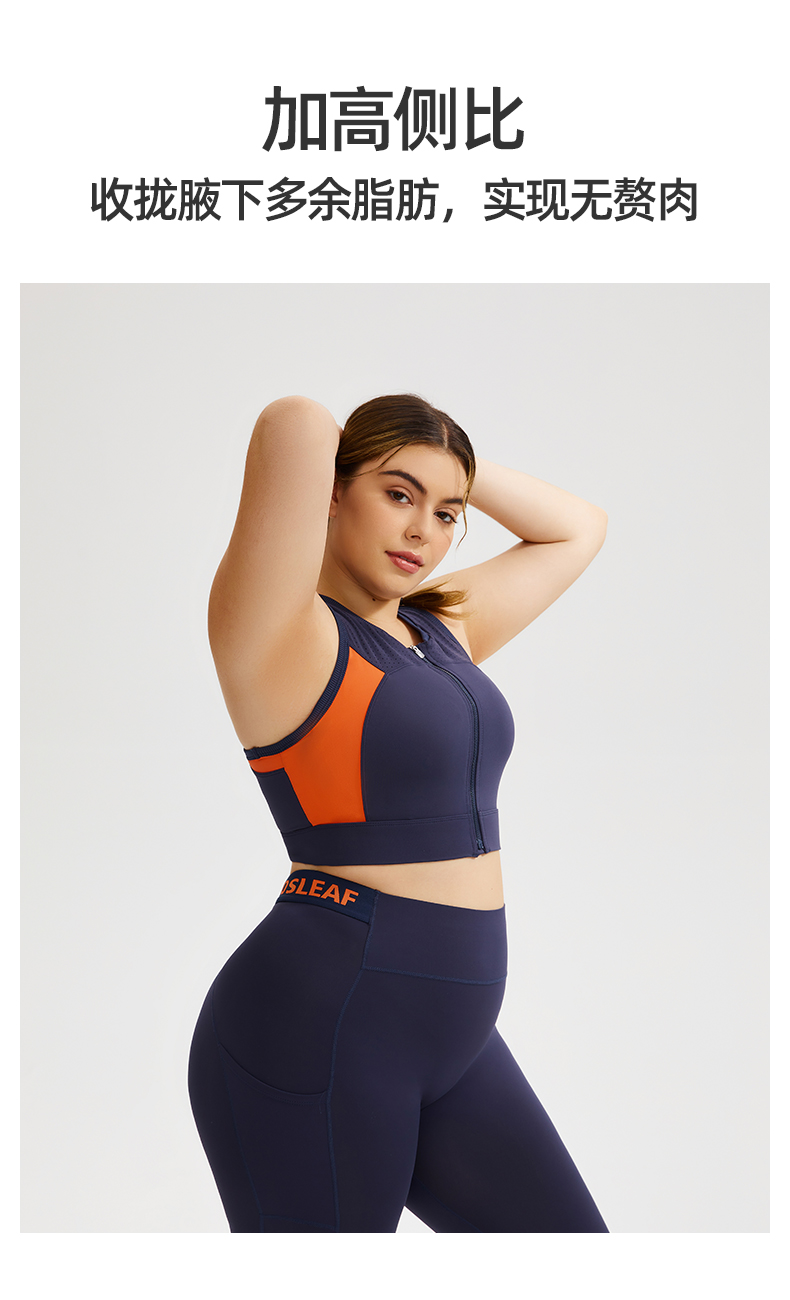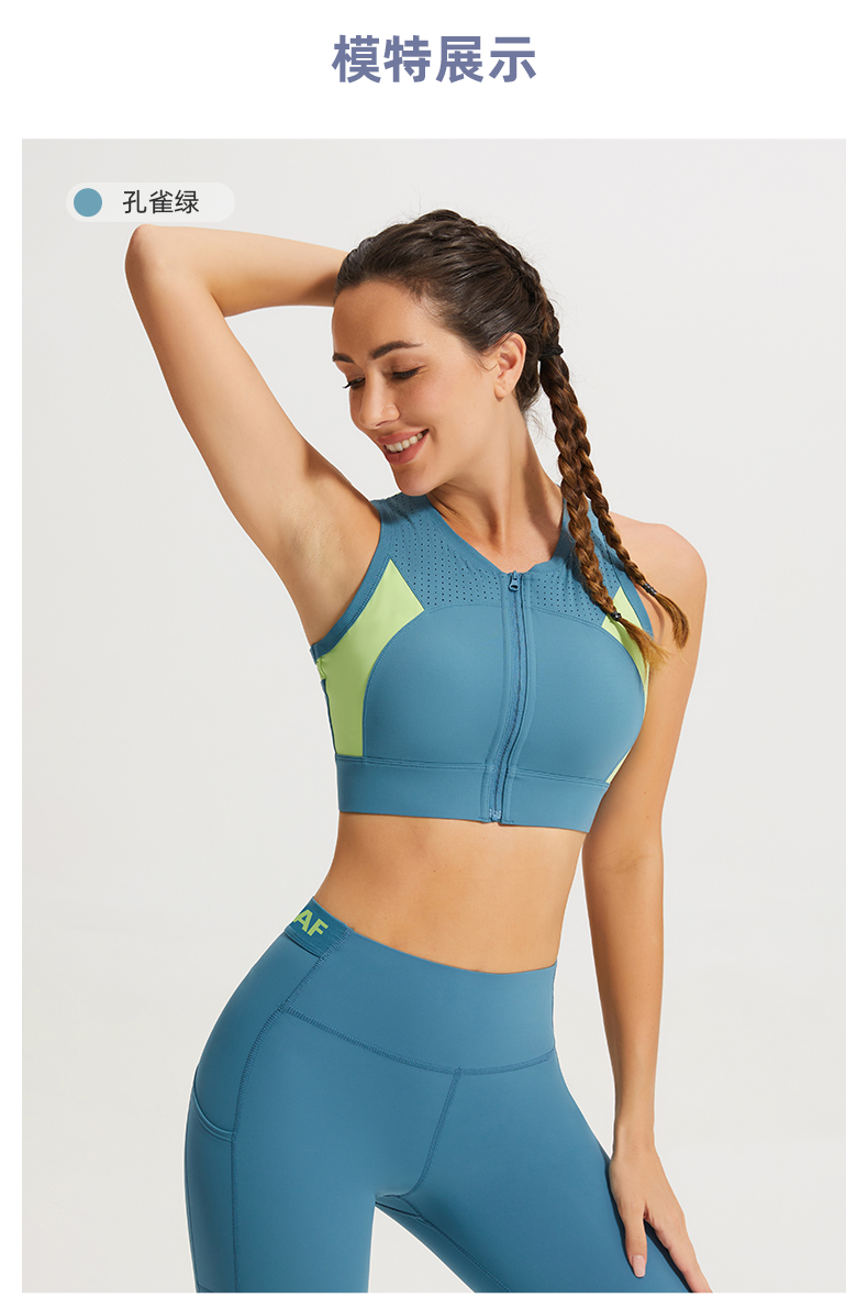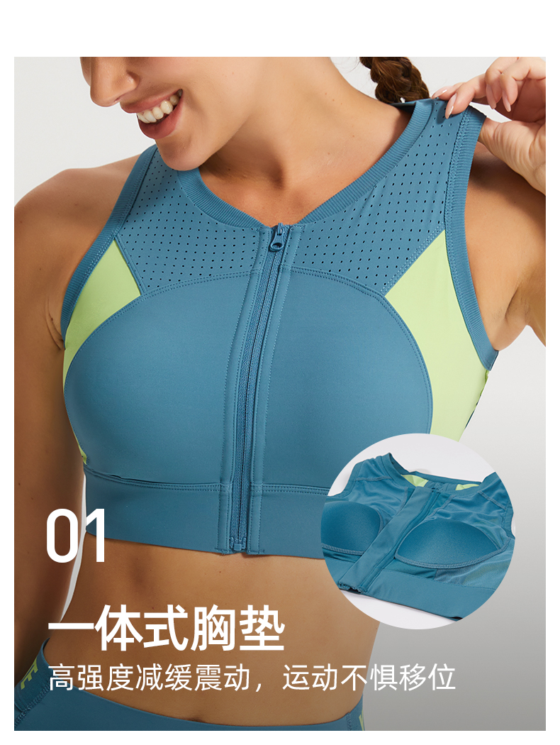 科里芙莱卡带胸垫美背圆孔拉链大码内衣健身美背聚拢高弹速干透气