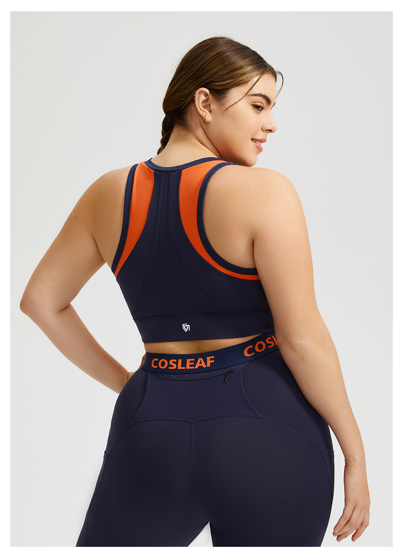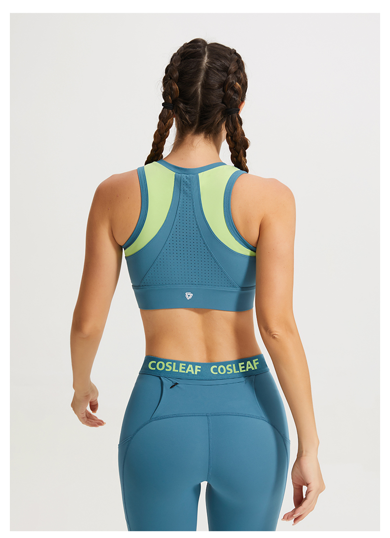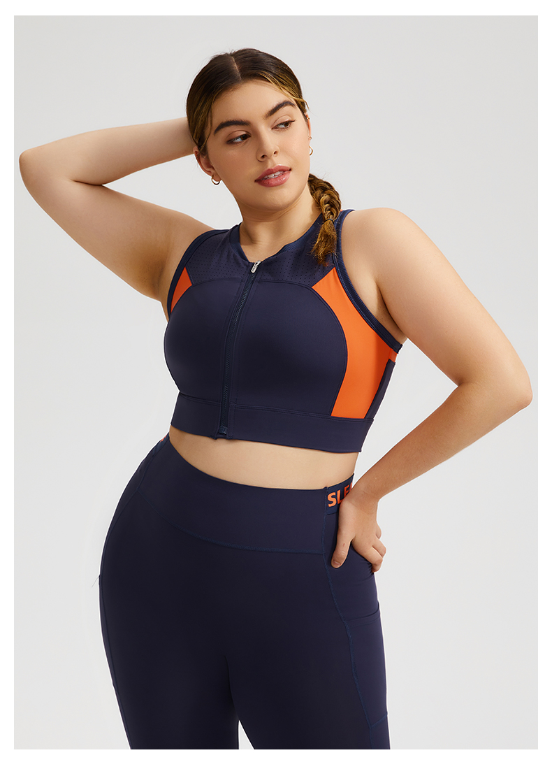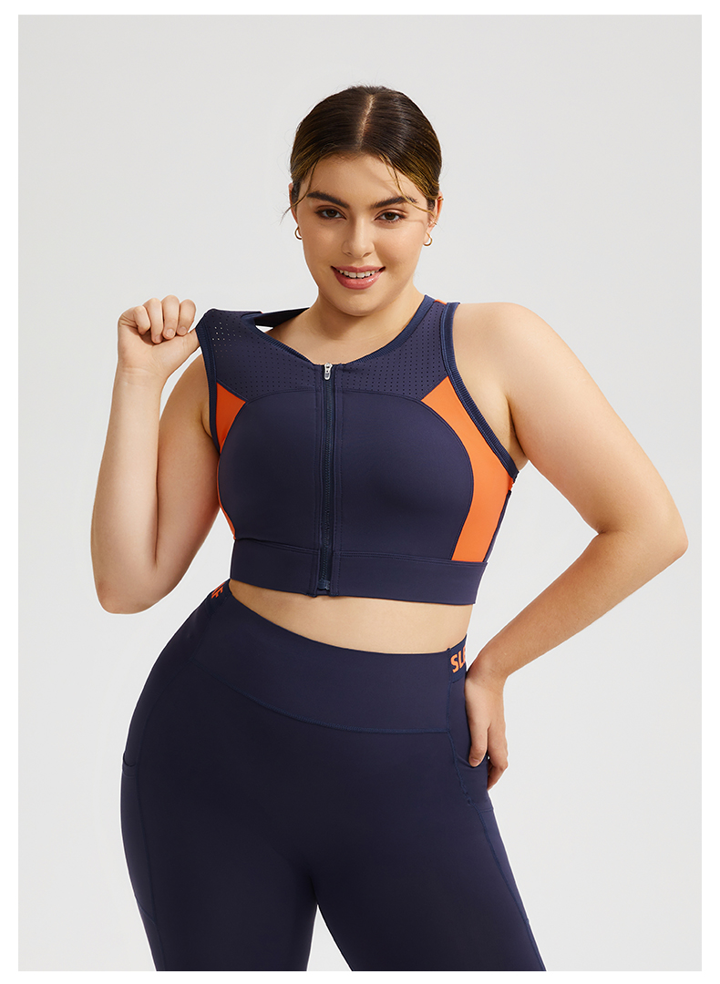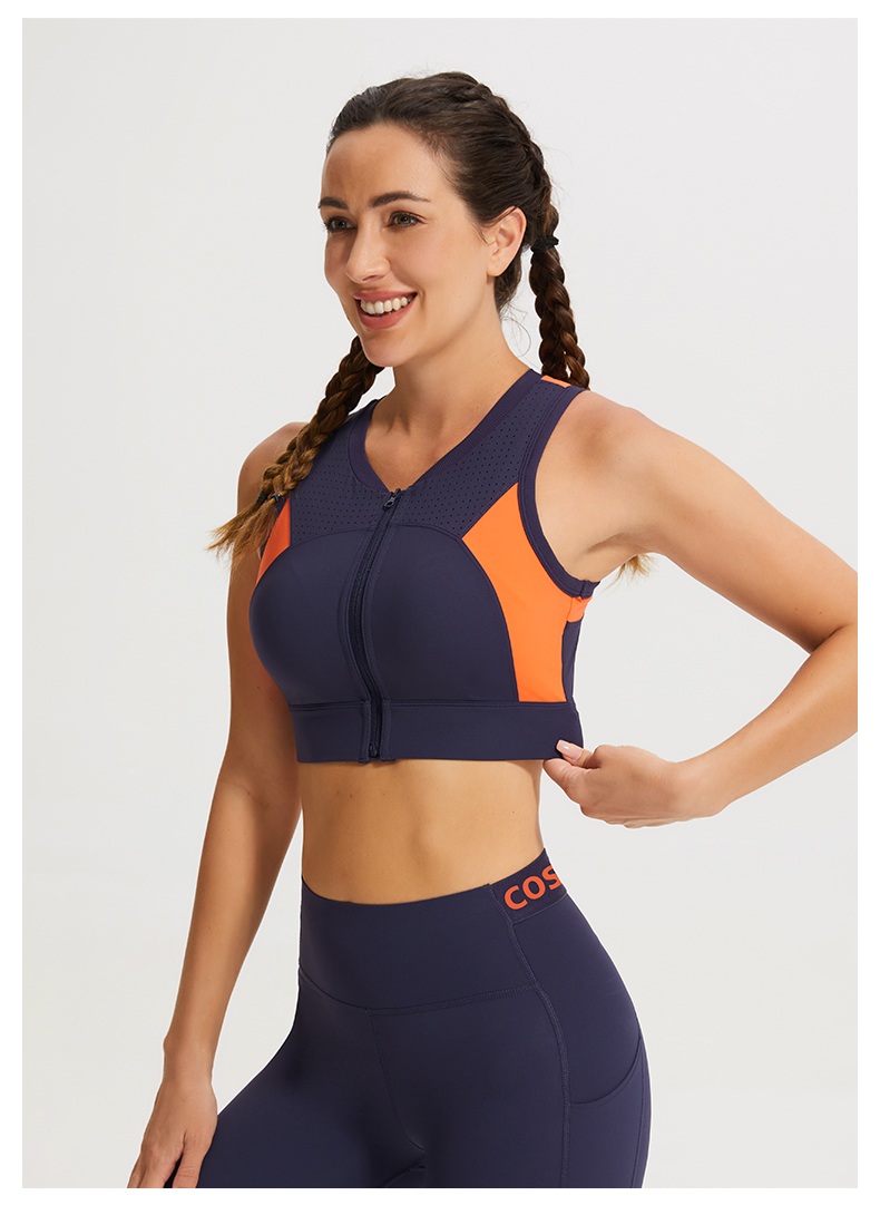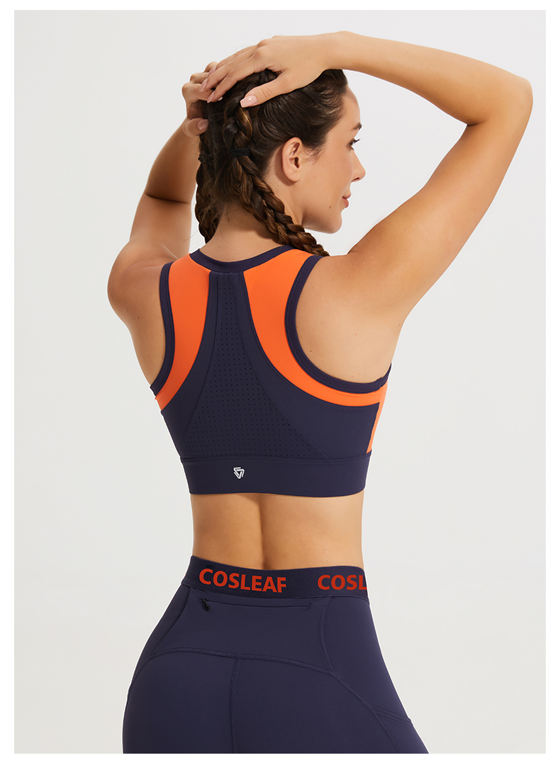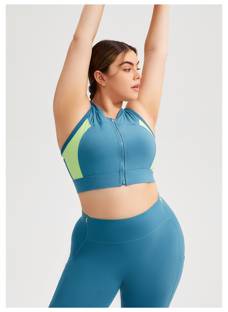科里芙莱卡带胸垫美背圆孔拉链大码内衣健身美背聚拢高弹速干透气