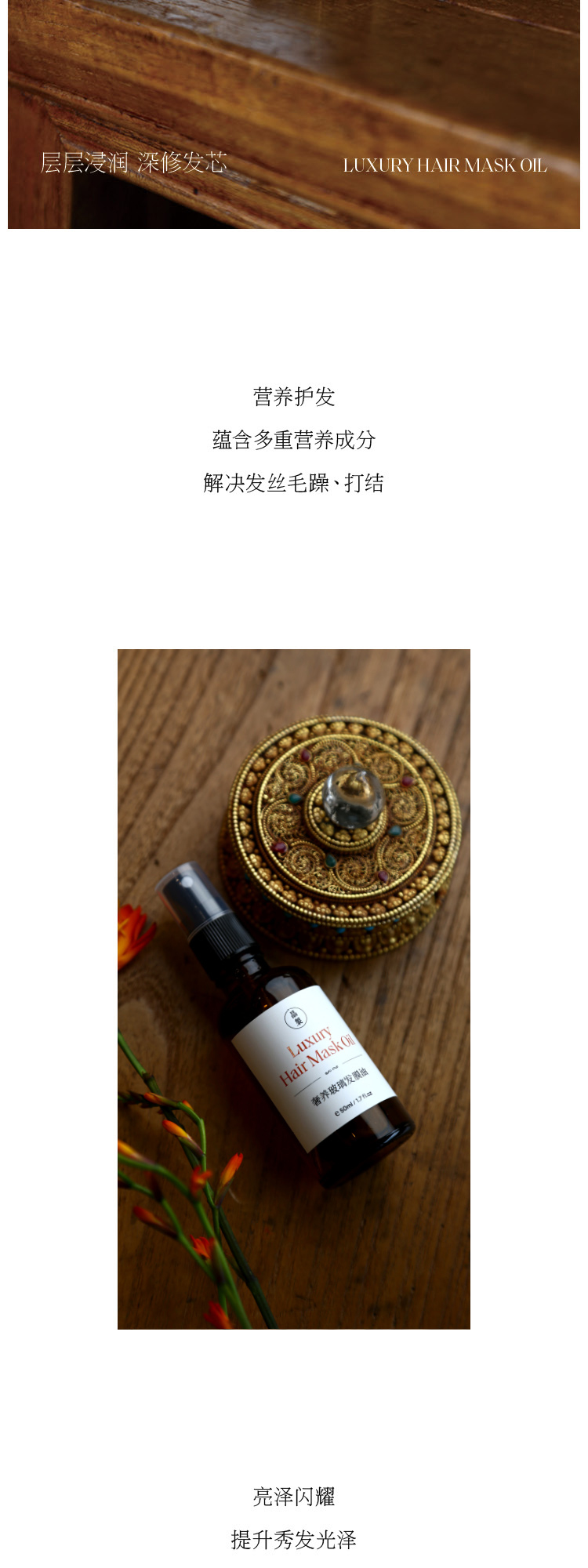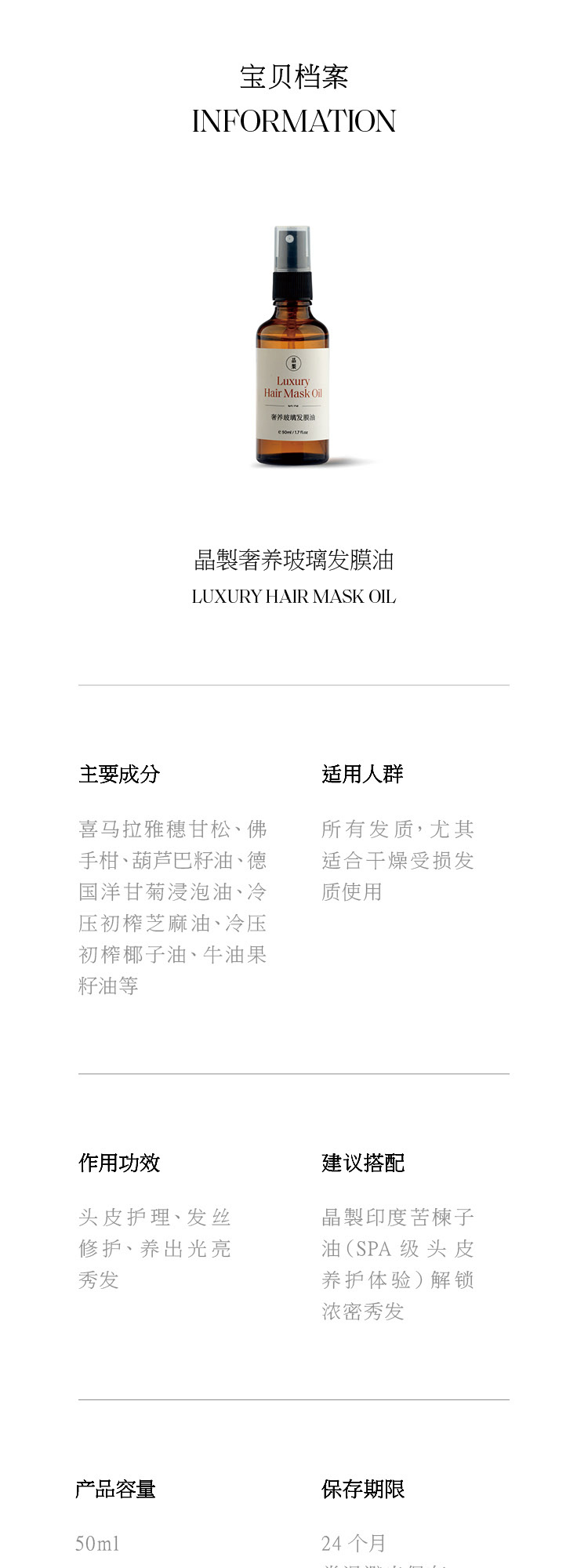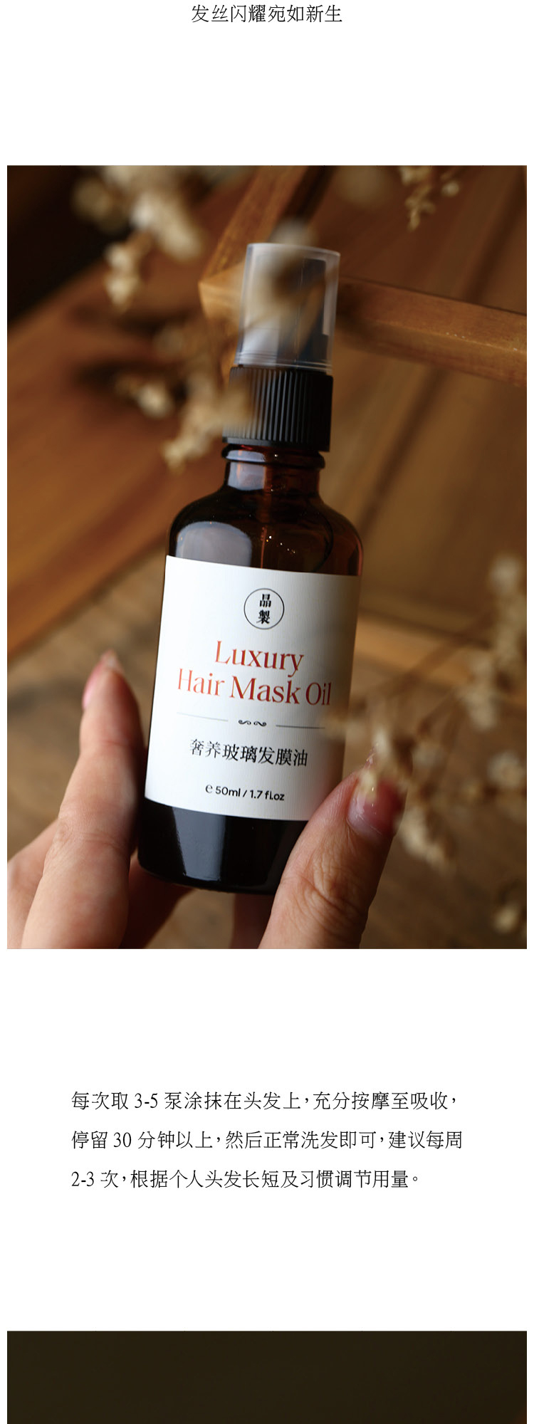 晶製奢养玻璃发膜油50ml养发护发天然纯植物