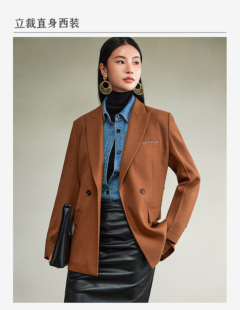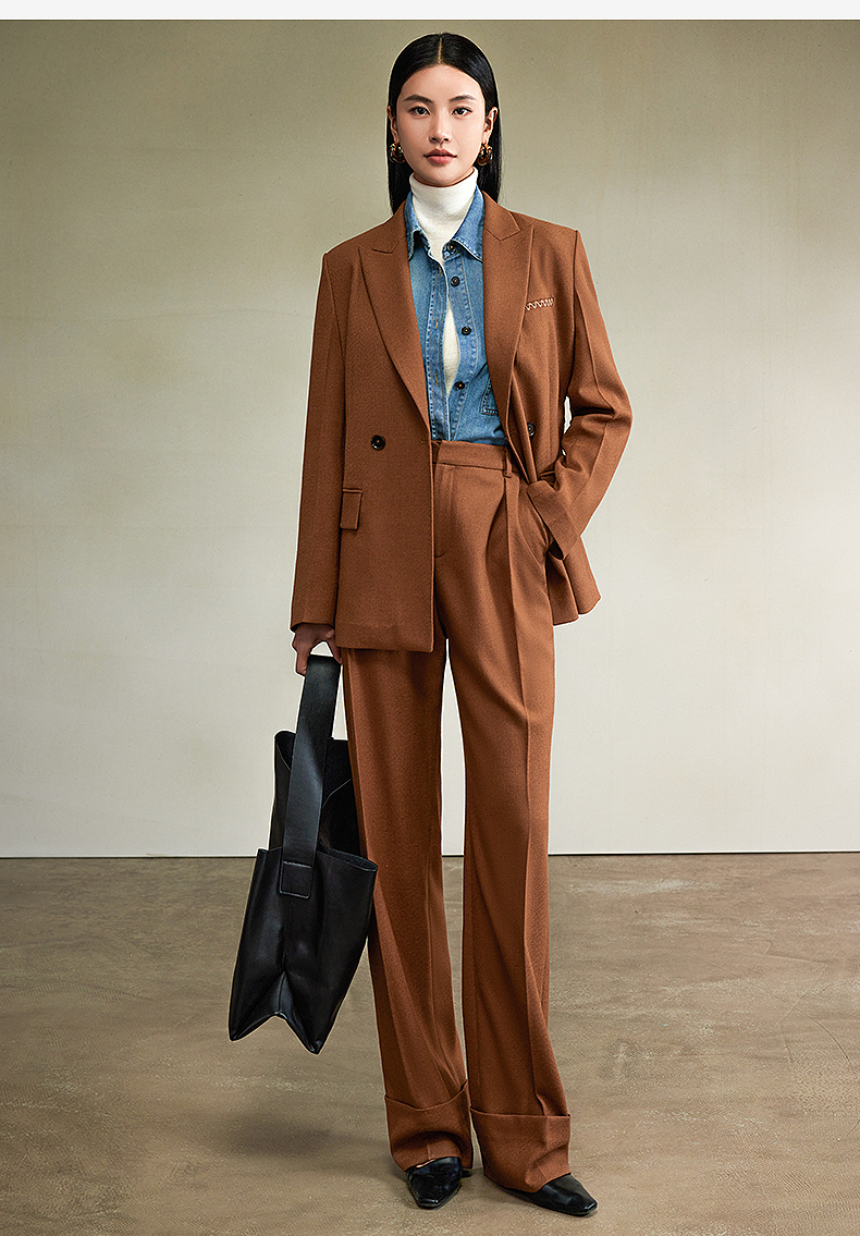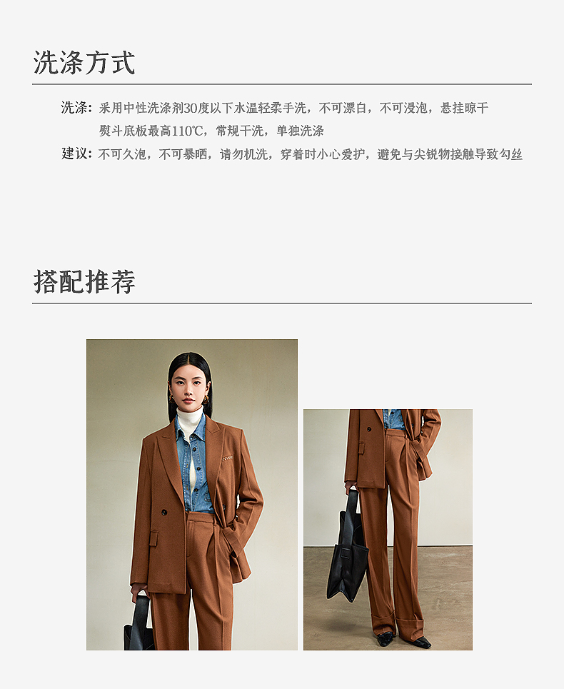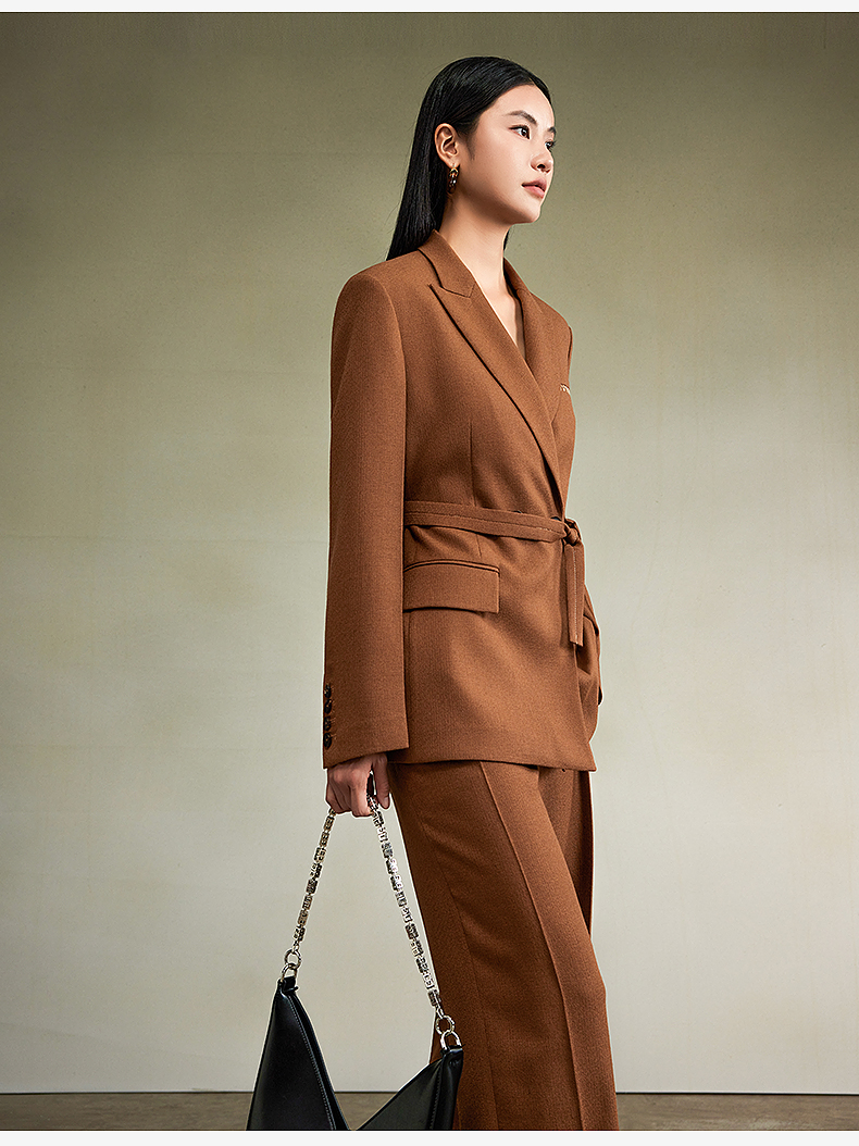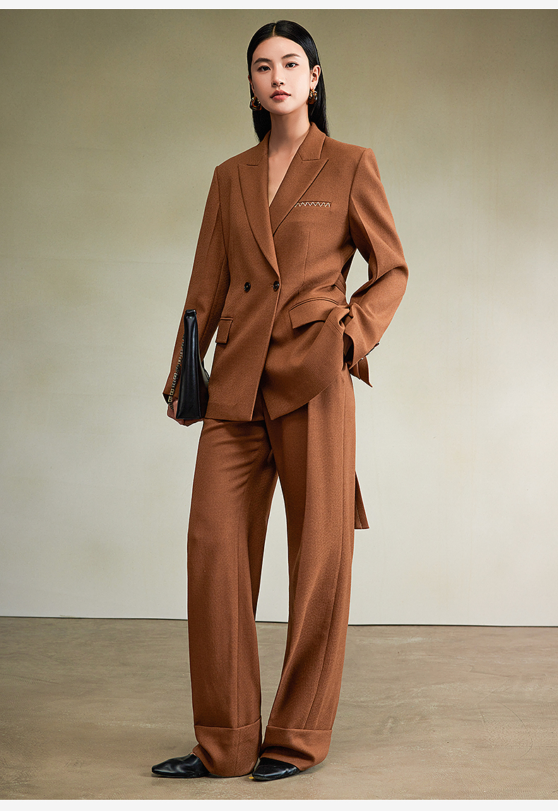 西嘉【秋季新品】醋酸羊毛混纺中古VTG风腰带设计感西装+翻脚口直筒裤(WT2403018)