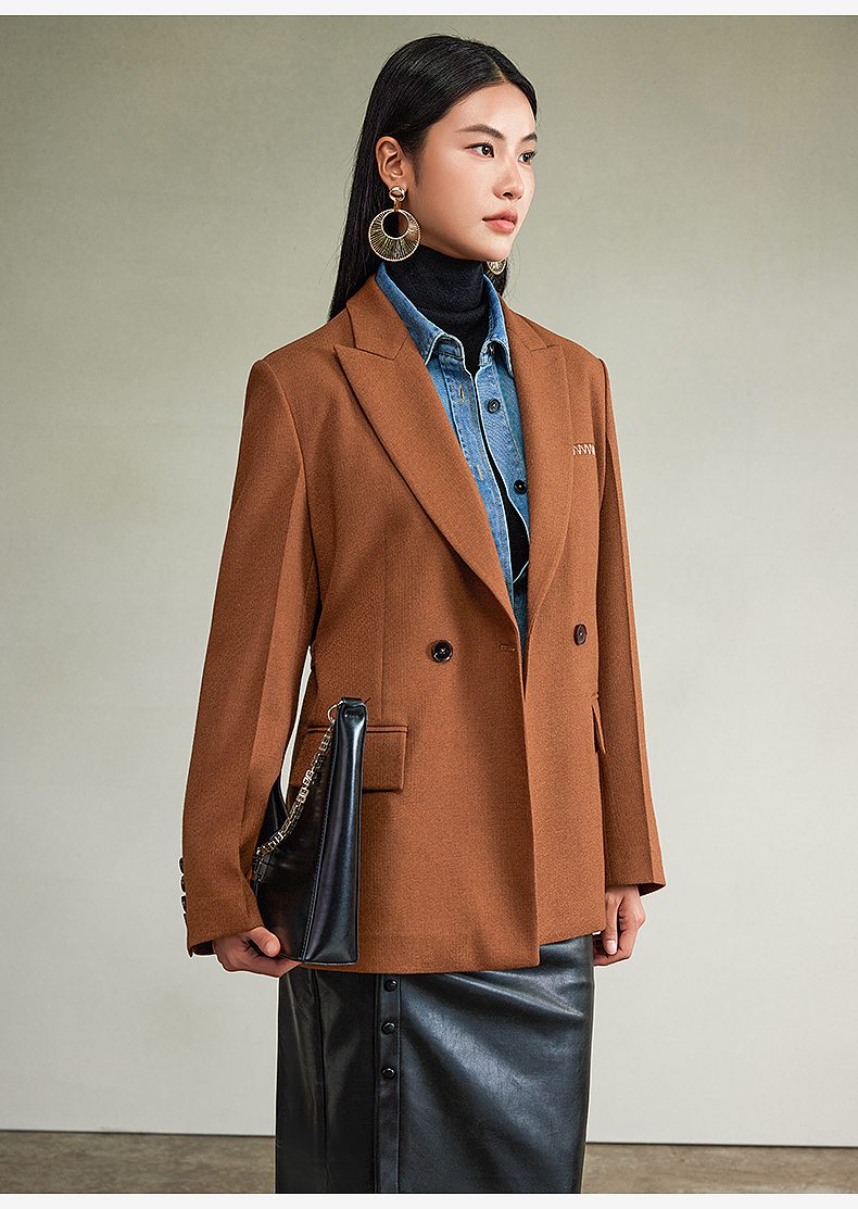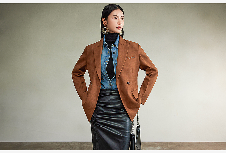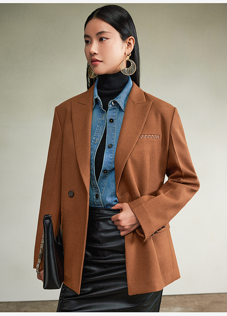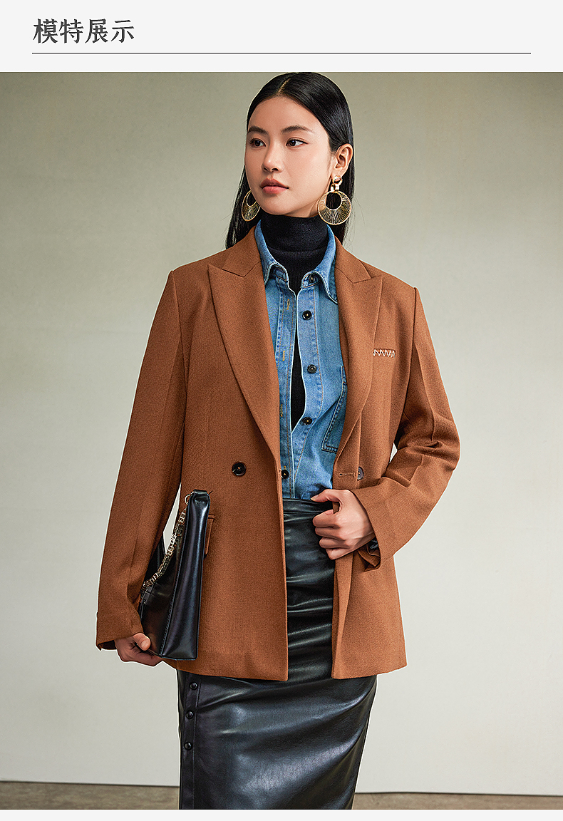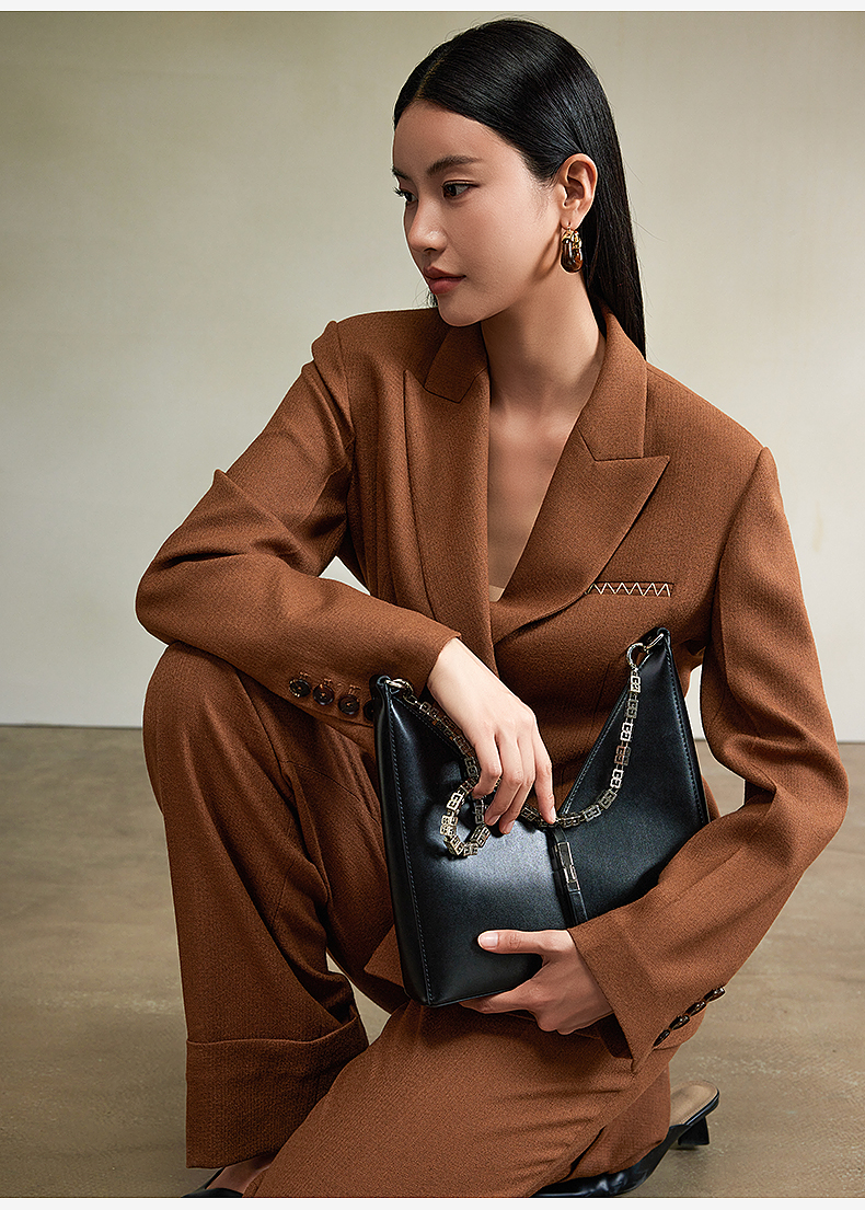 西嘉【秋季新品】醋酸羊毛混纺中古VTG风腰带设计感西装+翻脚口直筒裤(WT2403018)