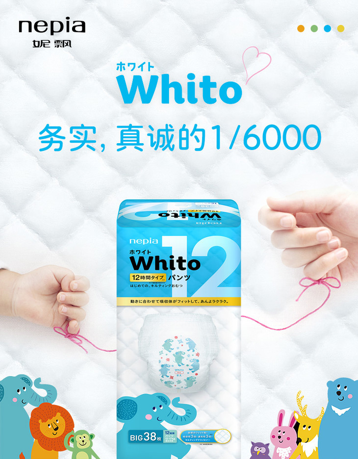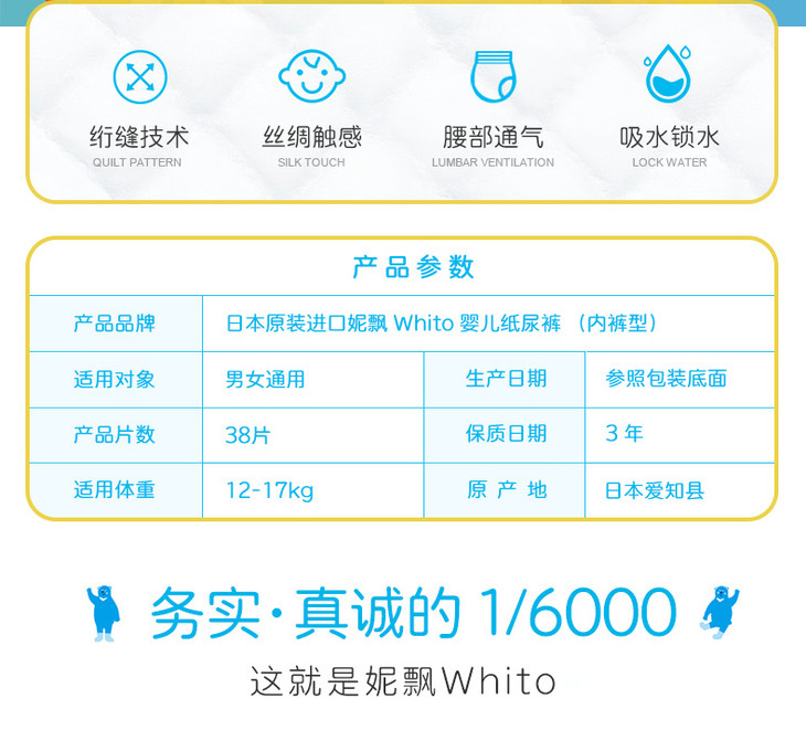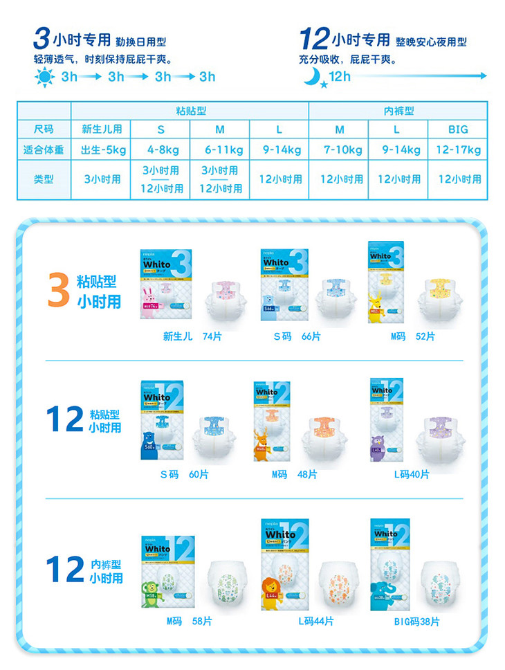 【三包】妮飘日本原装进口whito拉拉裤 纸尿裤12小时