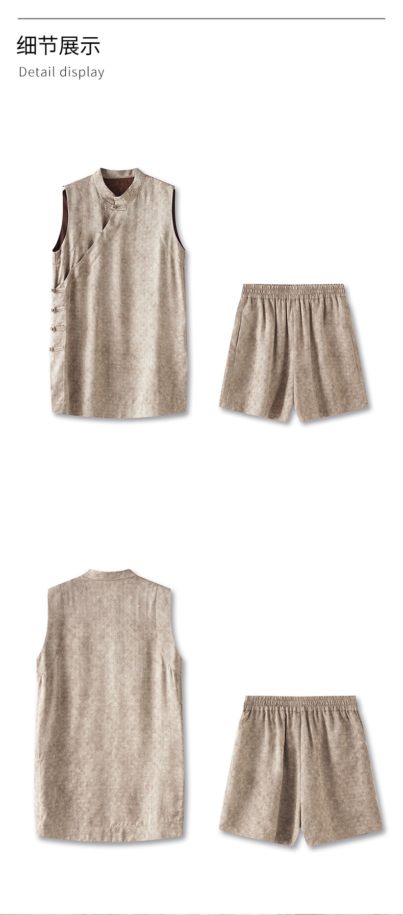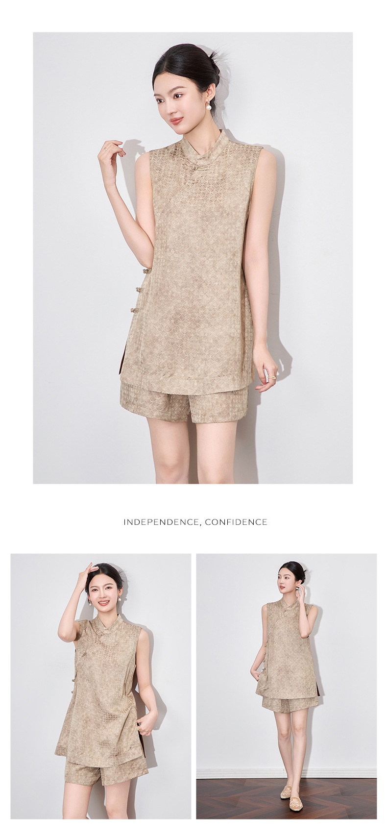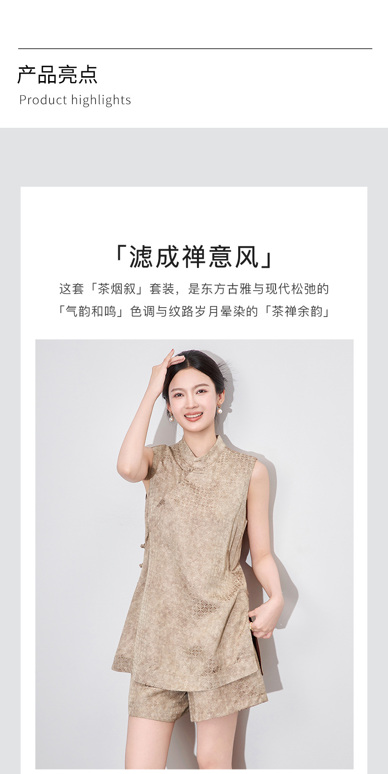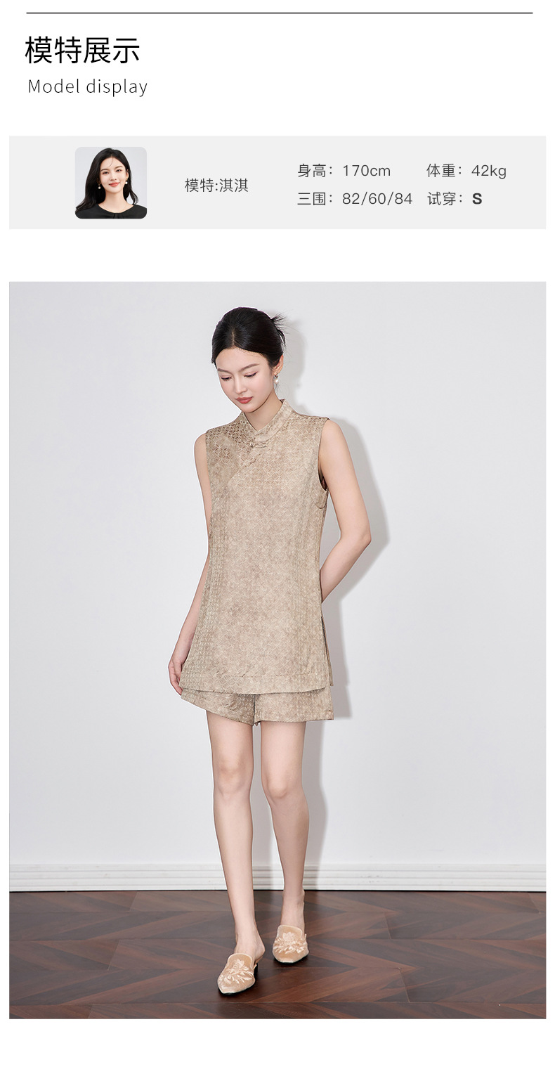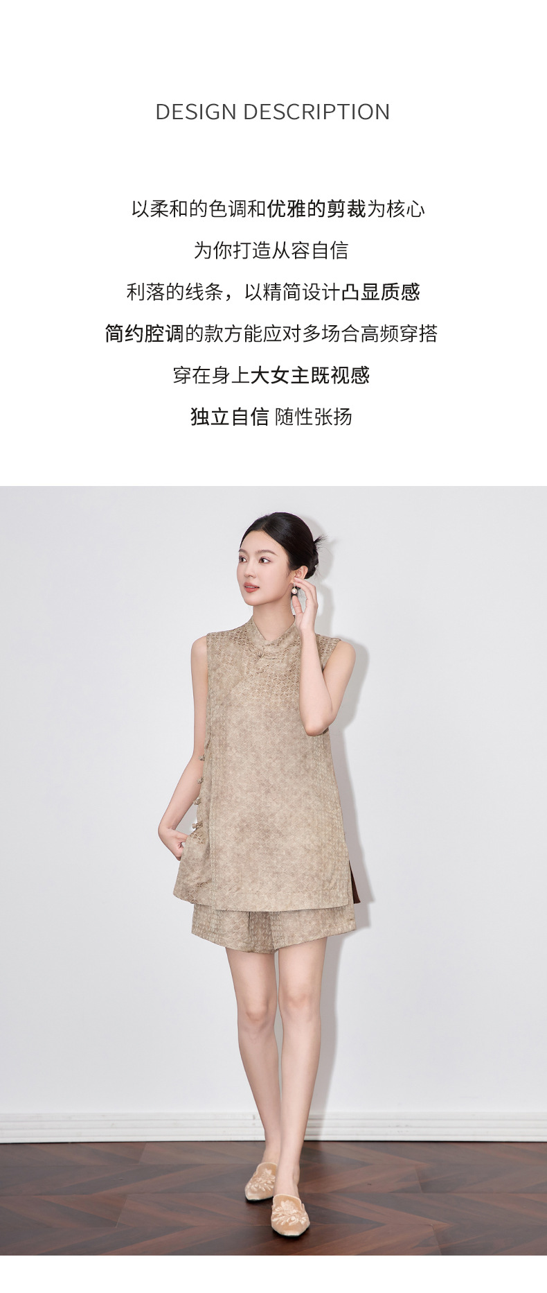 「高货wl」全新升级【铂金会员367/天猫499/差价132】(99855)洛诗琳新中式香云纱盘扣复古马甲高腰阔腿短裤两件套女