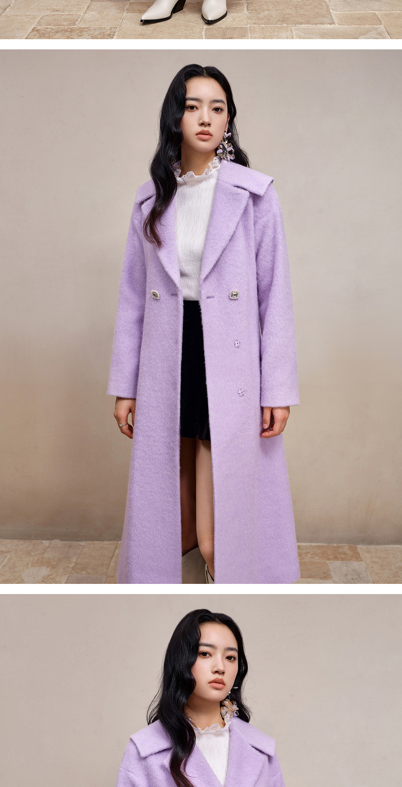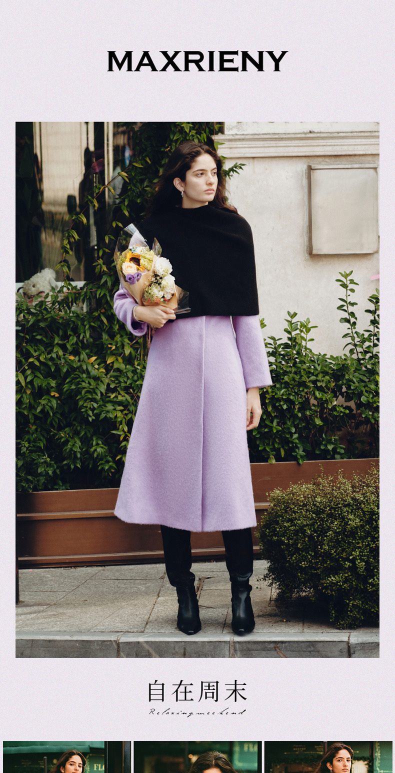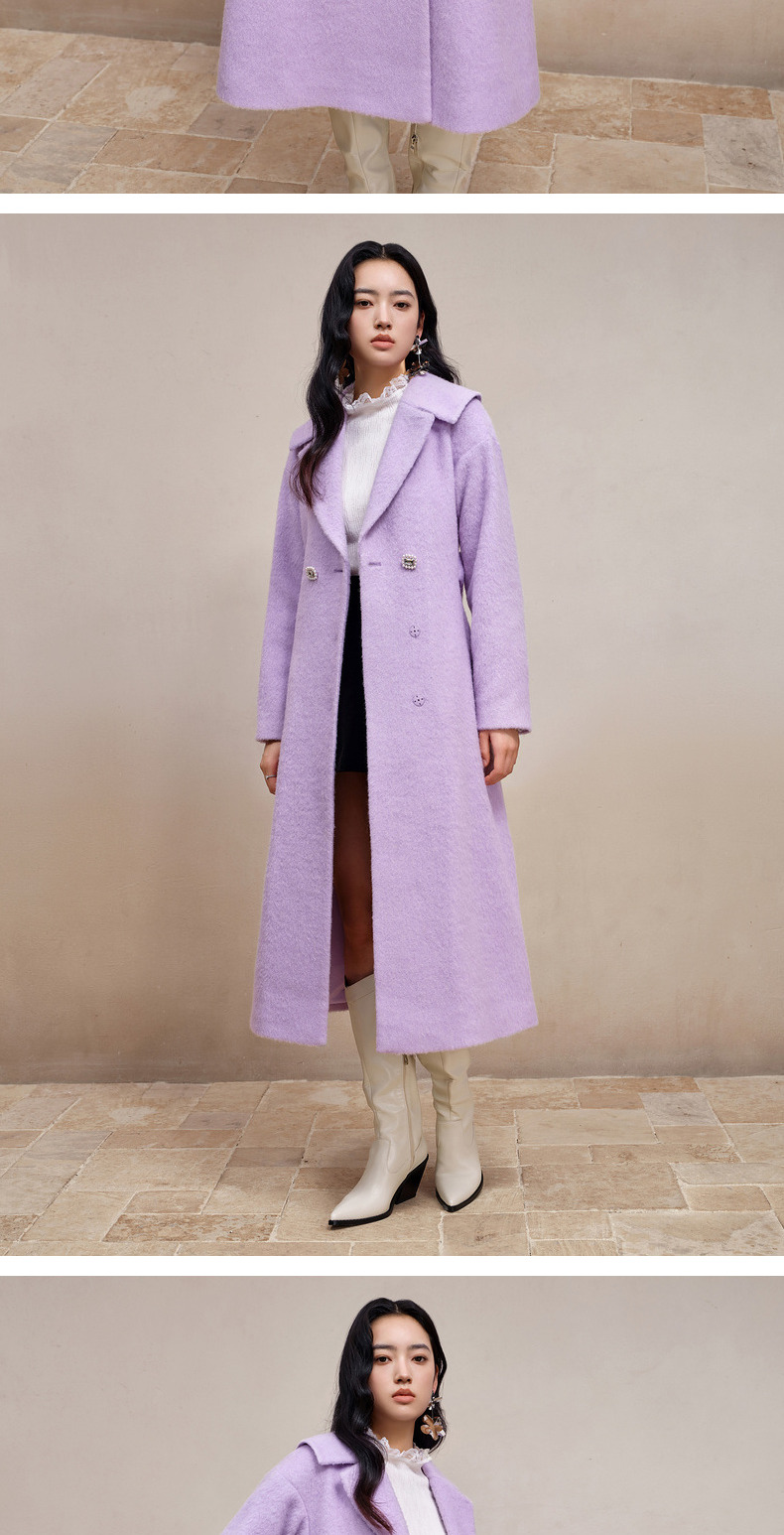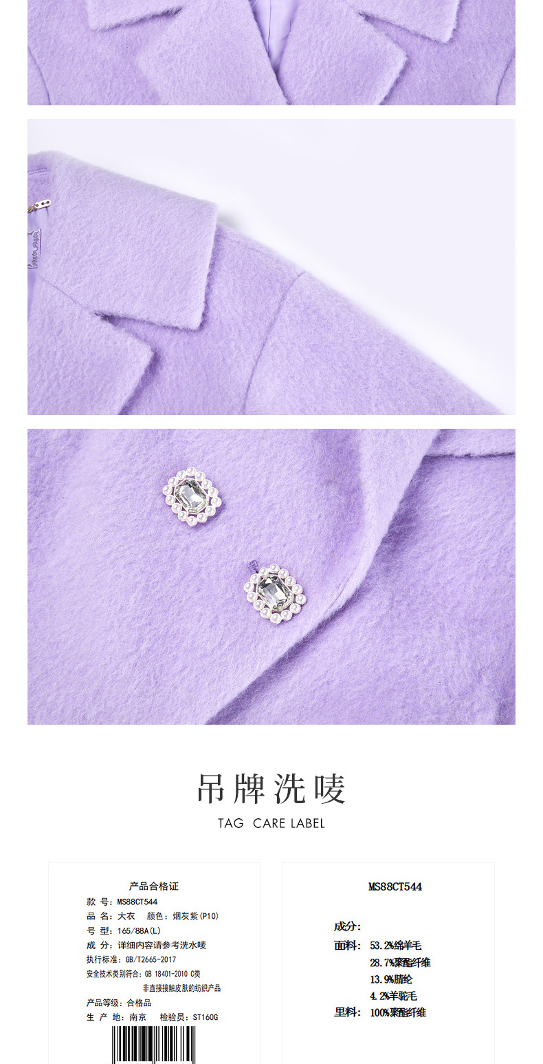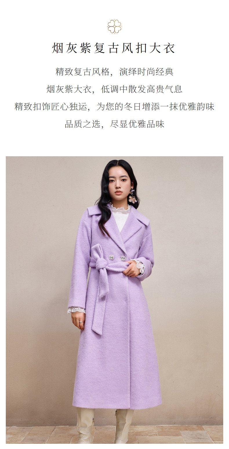 MAXRIENY*复古感烟灰紫*扣大衣秋冬羊毛外套(货号:MS88CT544)