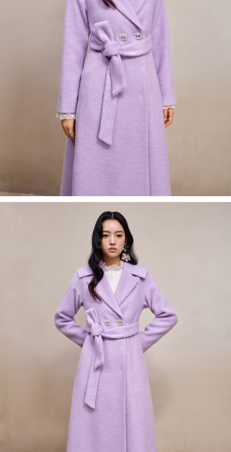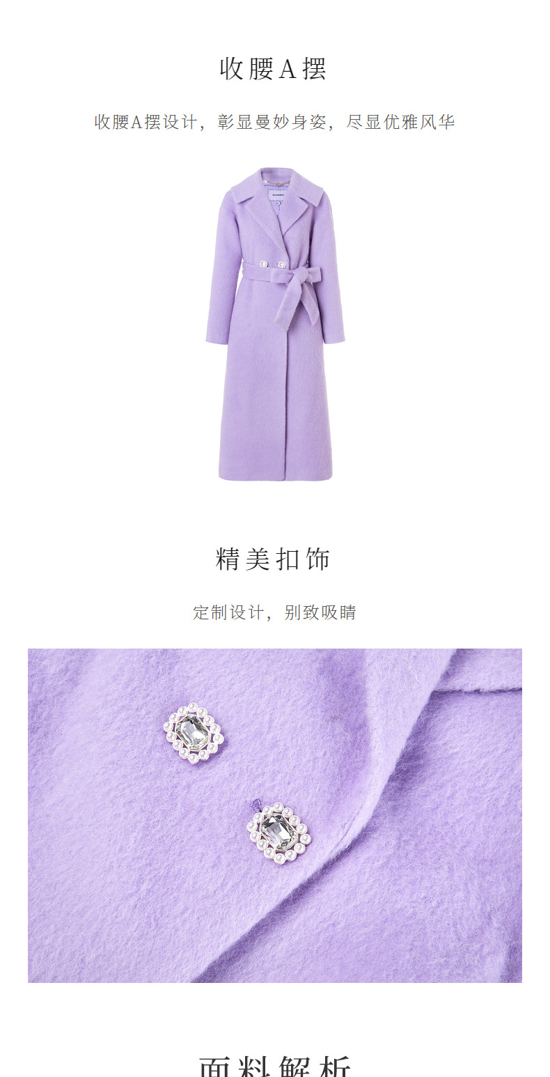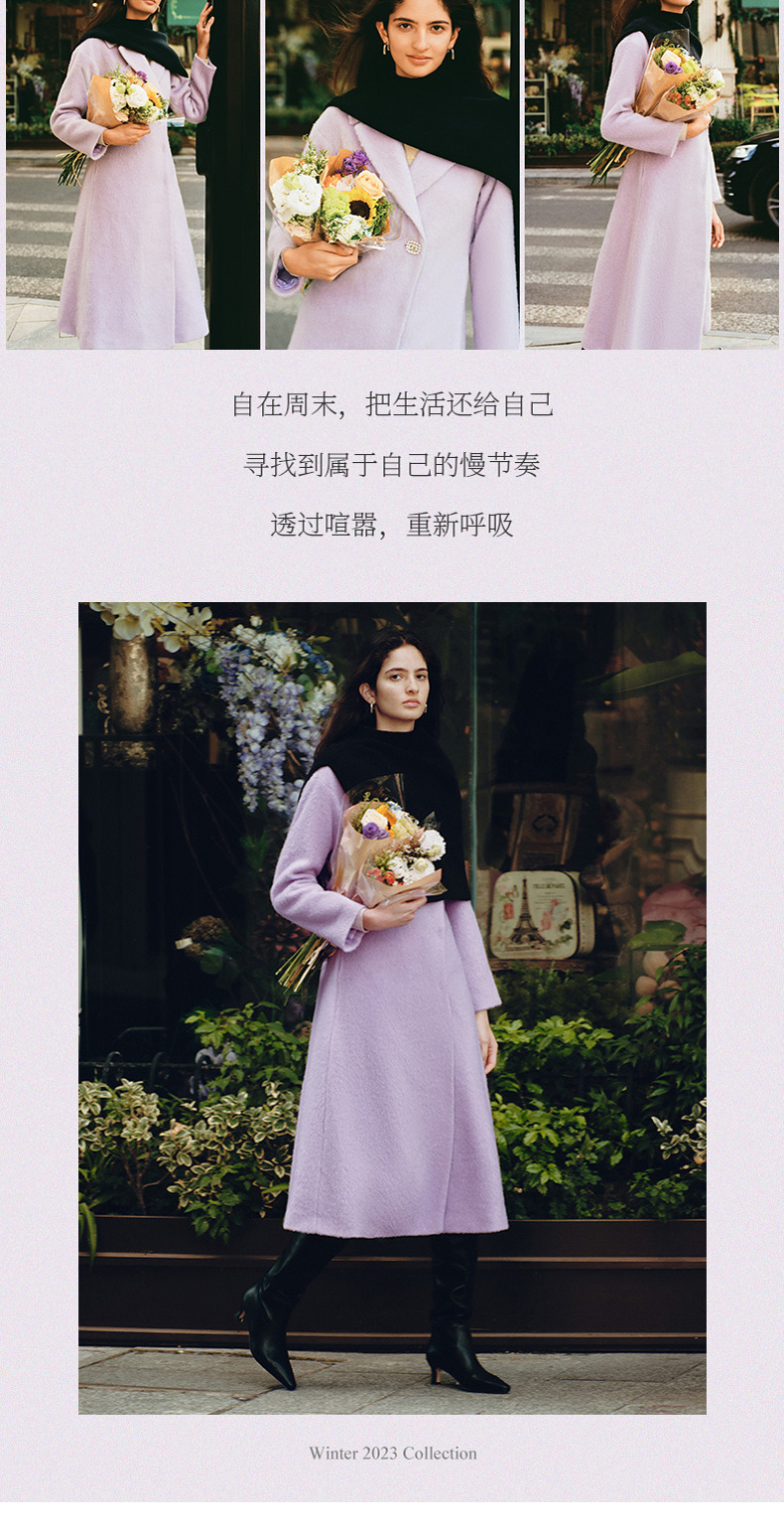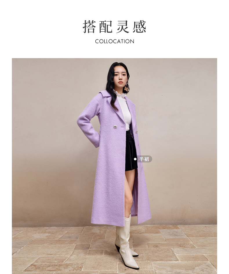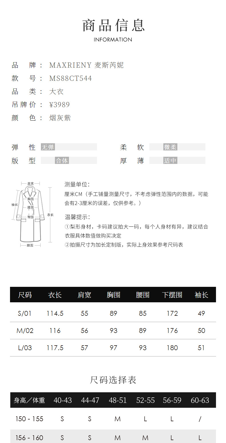MAXRIENY*复古感烟灰紫*扣大衣秋冬羊毛外套(货号:MS88CT544)