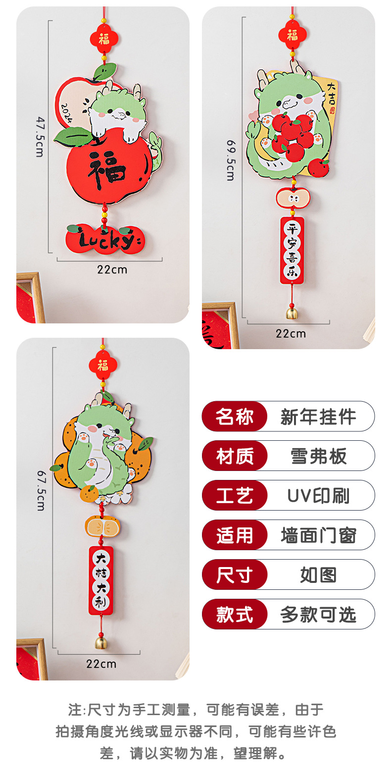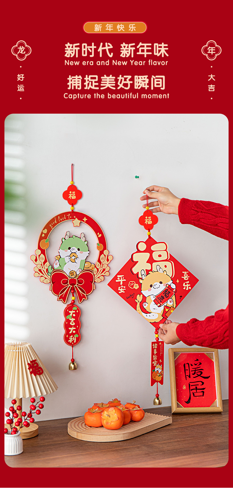 【新时代,新年味!】2024龙年过年装饰雪弗板挂件,新年元旦春节装饰布置用品福字挂饰,易于安装,可轻松悬挂于墙壁、门窗等处,为您的家居增添节日氛围