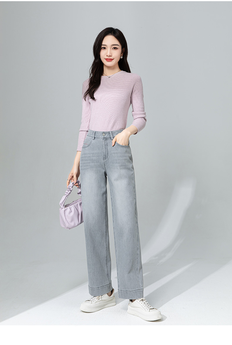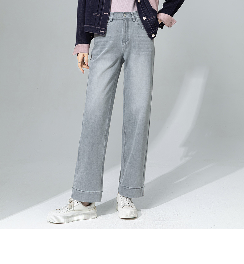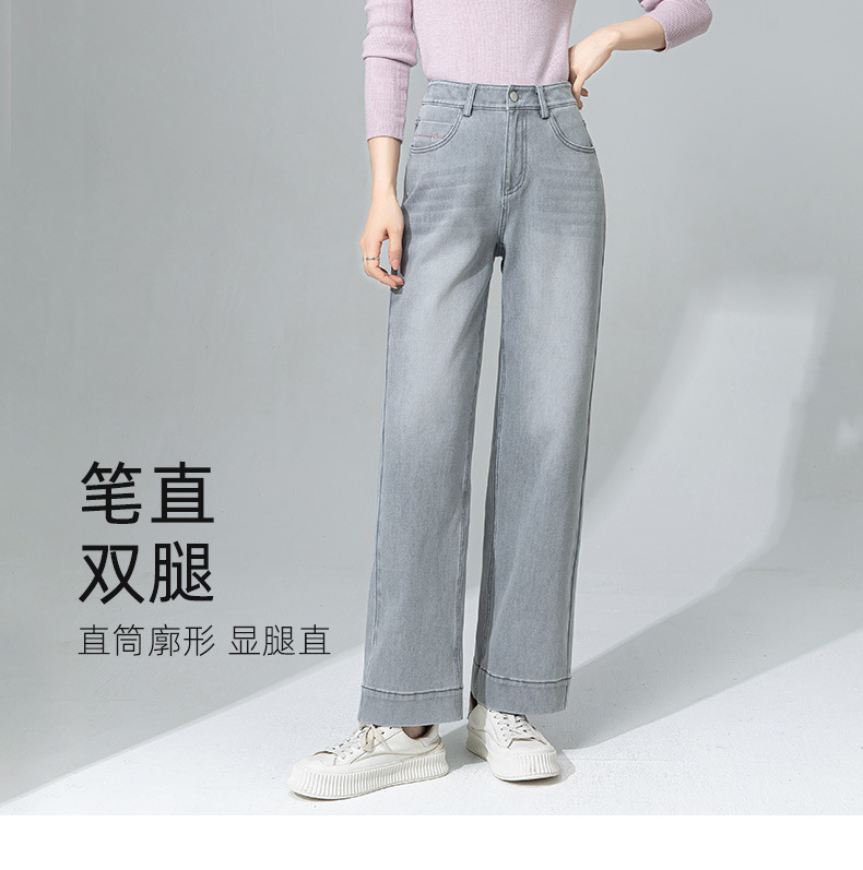 【高货xg】全新升级【铂金会员183/天猫239/差价56】(33925) 洛诗琳灰色九分直筒牛仔裤2025春夏新款高腰显瘦阔腿裤女