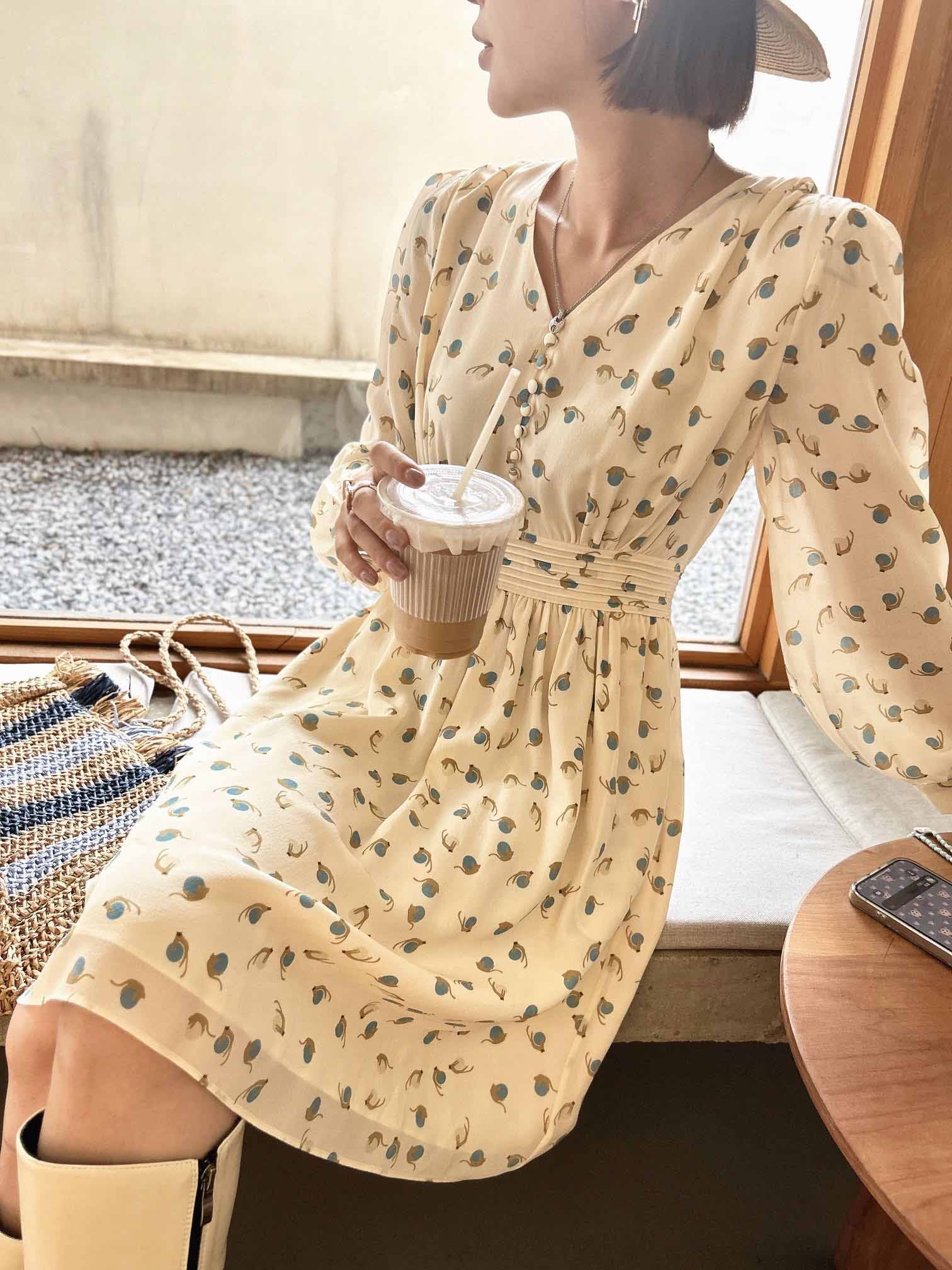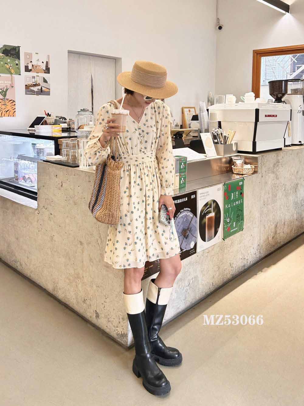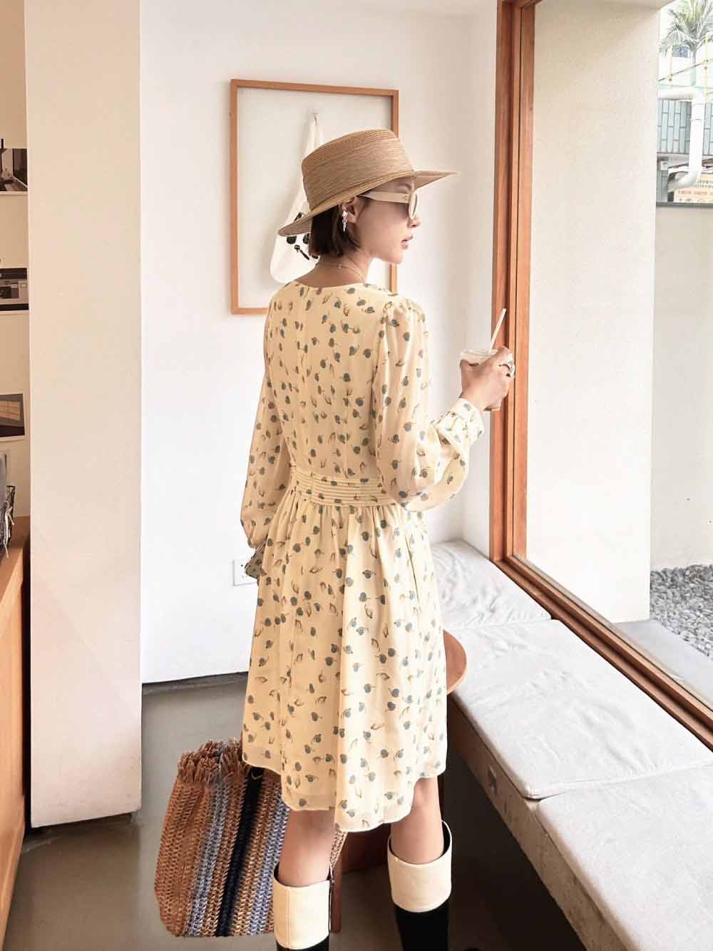 顺丰包邮洛诗琳33947早春新款真丝印花V领显瘦小格子连衣裙53066