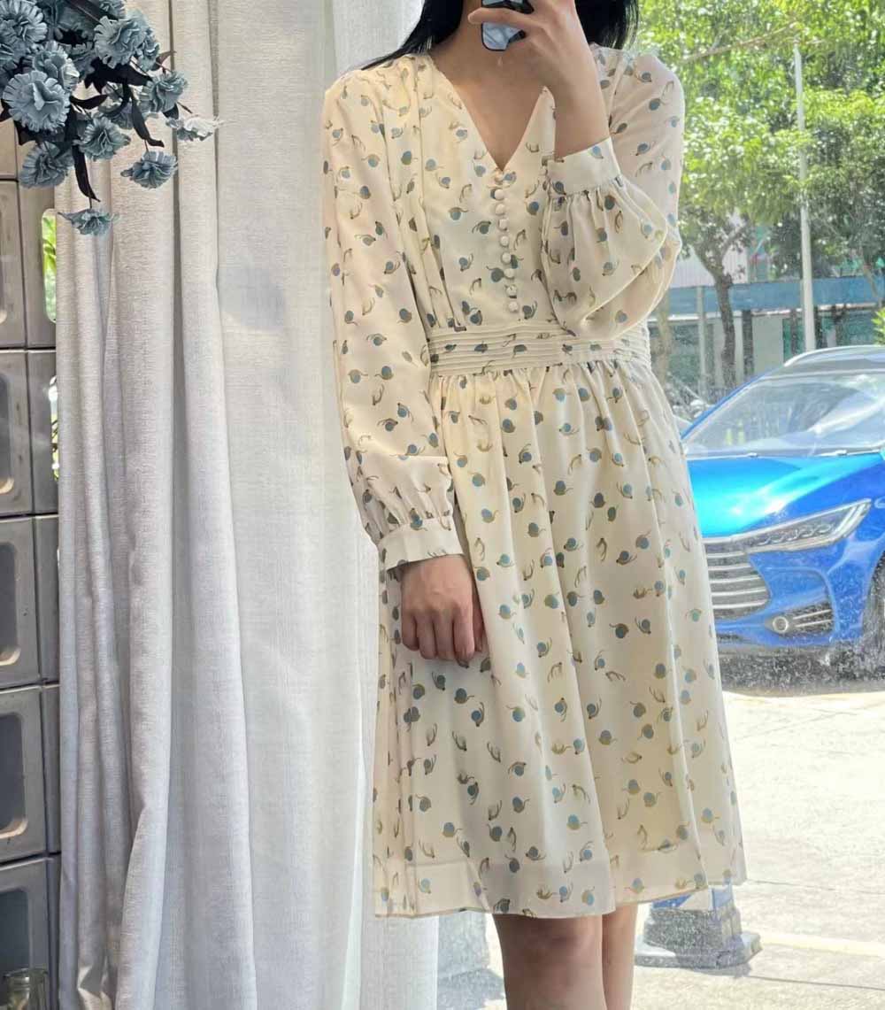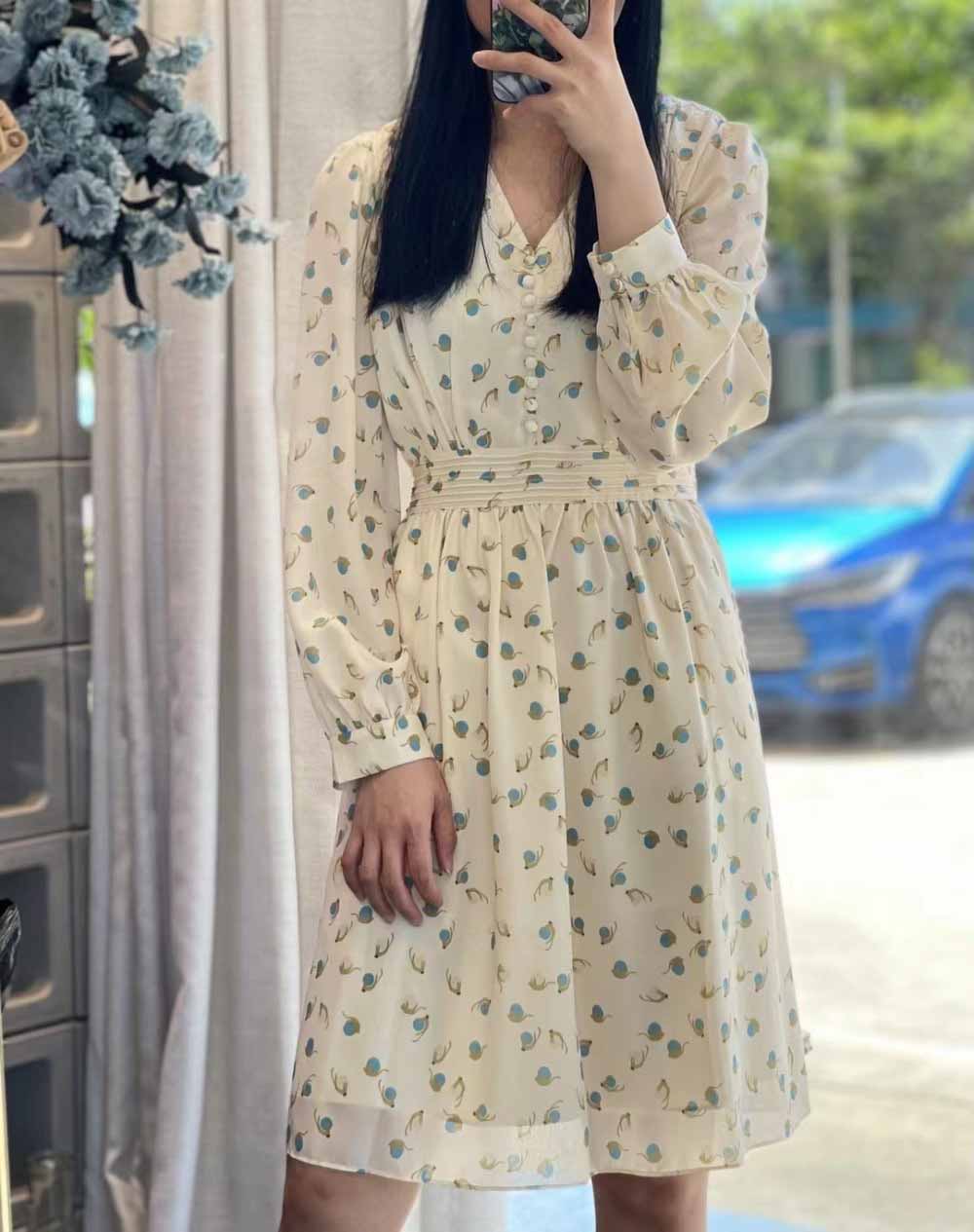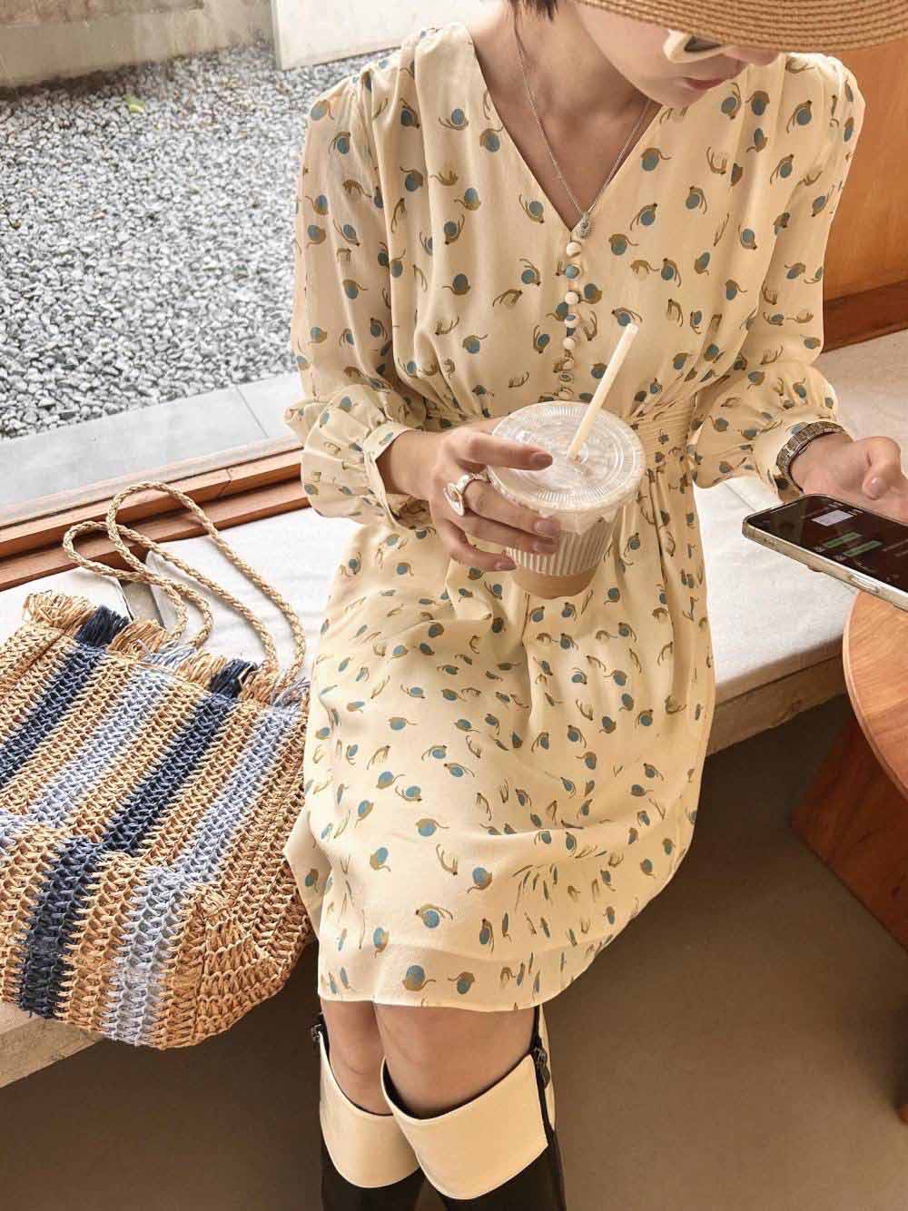 顺丰包邮洛诗琳33947早春新款真丝印花V领显瘦小格子连衣裙53066