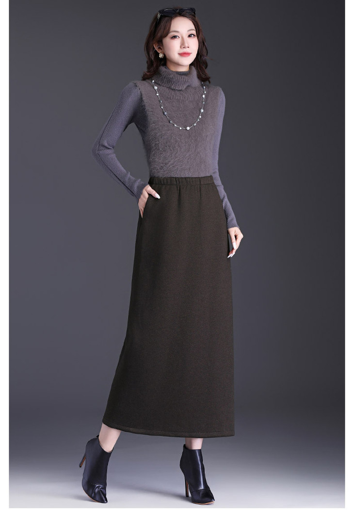 松紧腰长款修身包臀裙,职业通勤毛呢半身裙直筒裙MYX-LDNS-25127-L