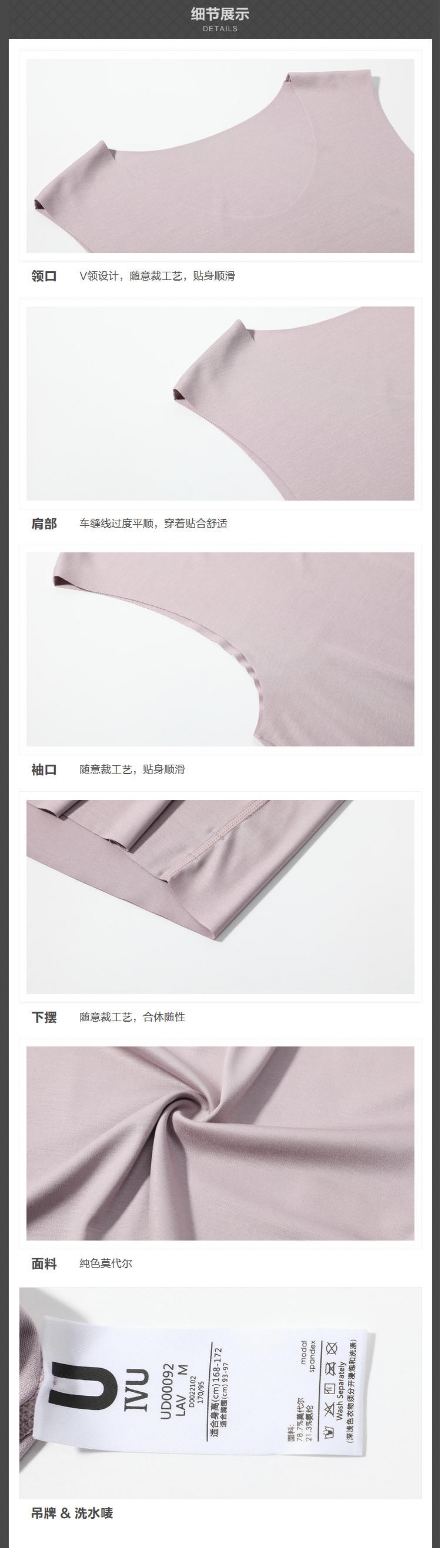 安莉芳旗下IVU莫代尔抗菌无袖T恤情侣男女款可外穿家居服UD00092 第二件1元