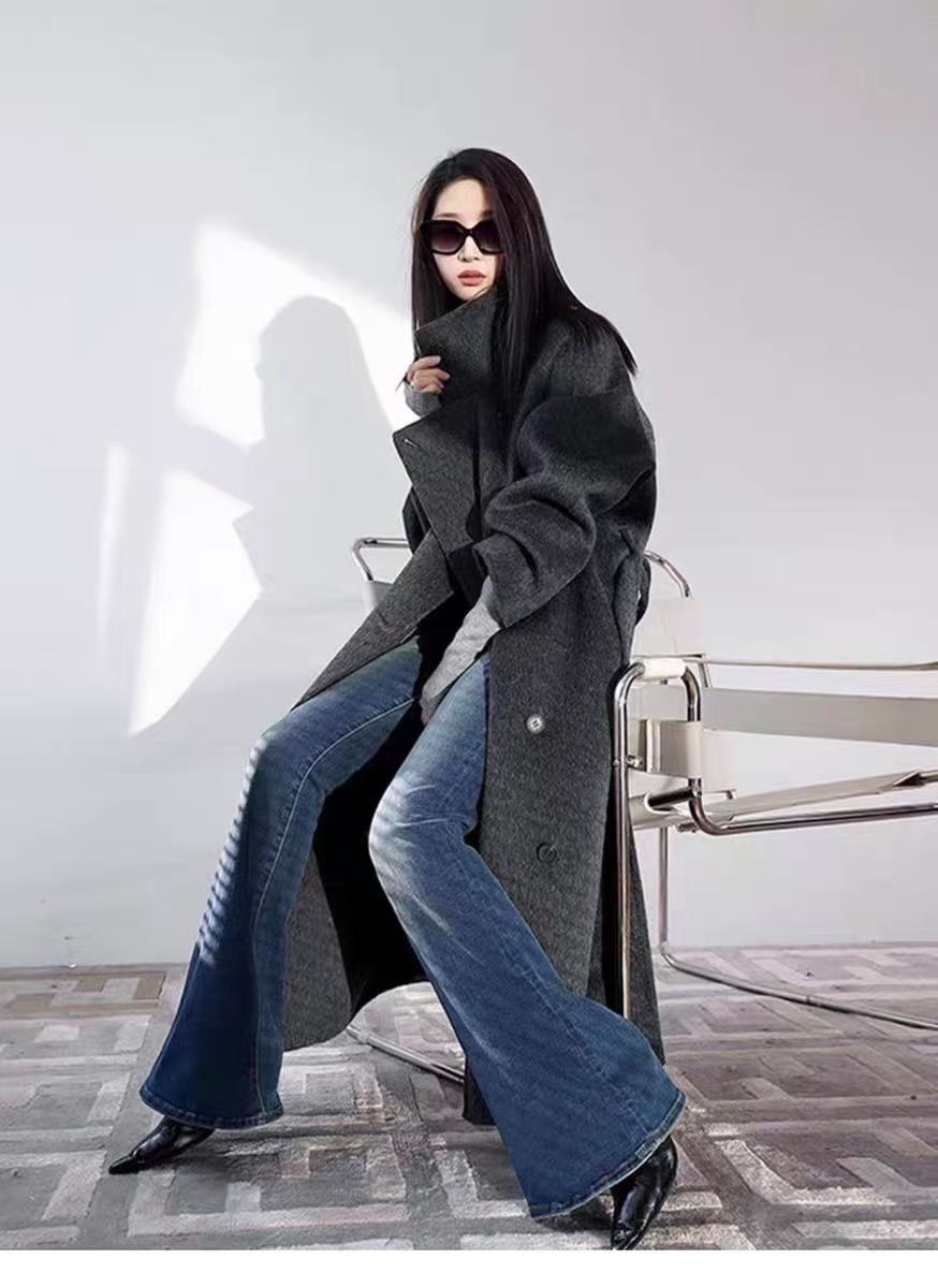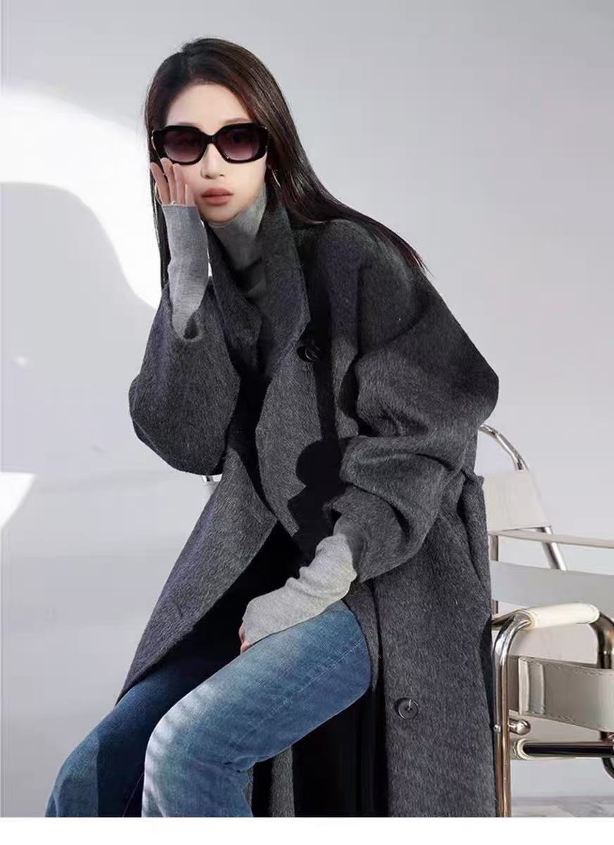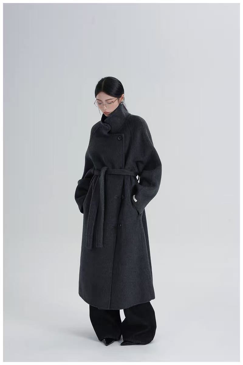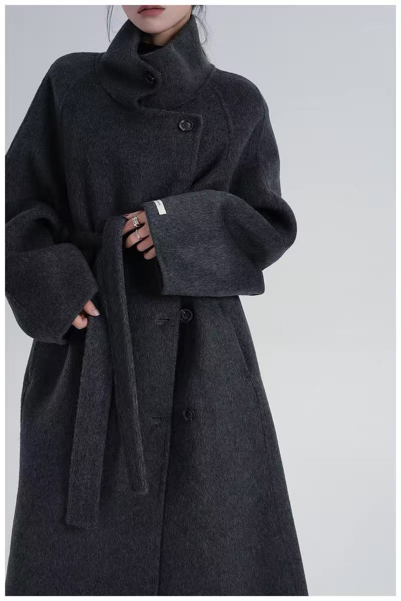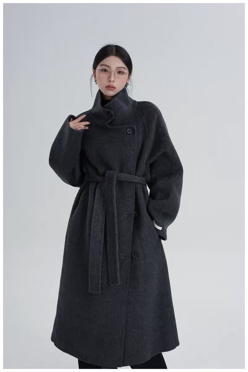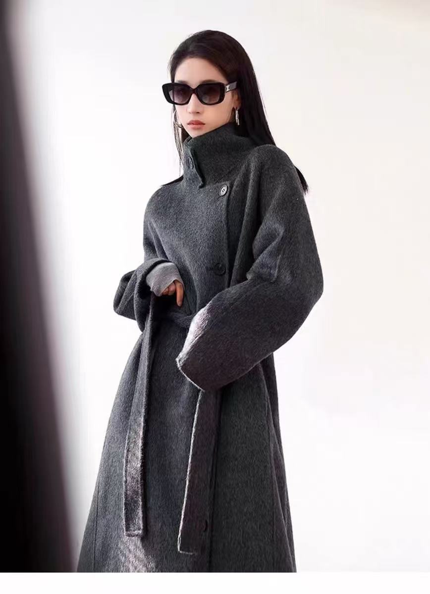 【轻奢双面尼】2515(绵羊毛➕莱赛尔)高级感立领气质双面尼大衣长款外套-喜出