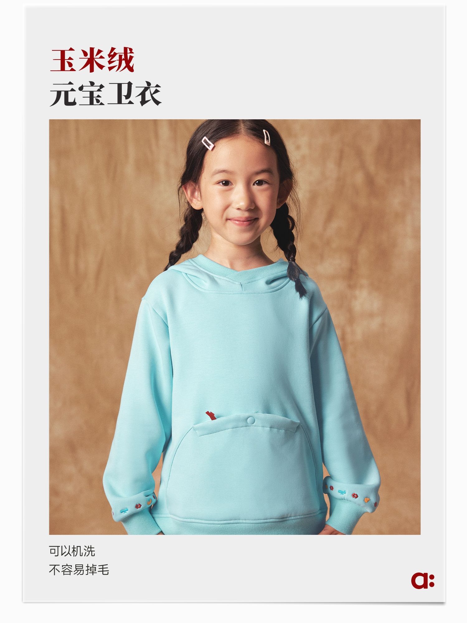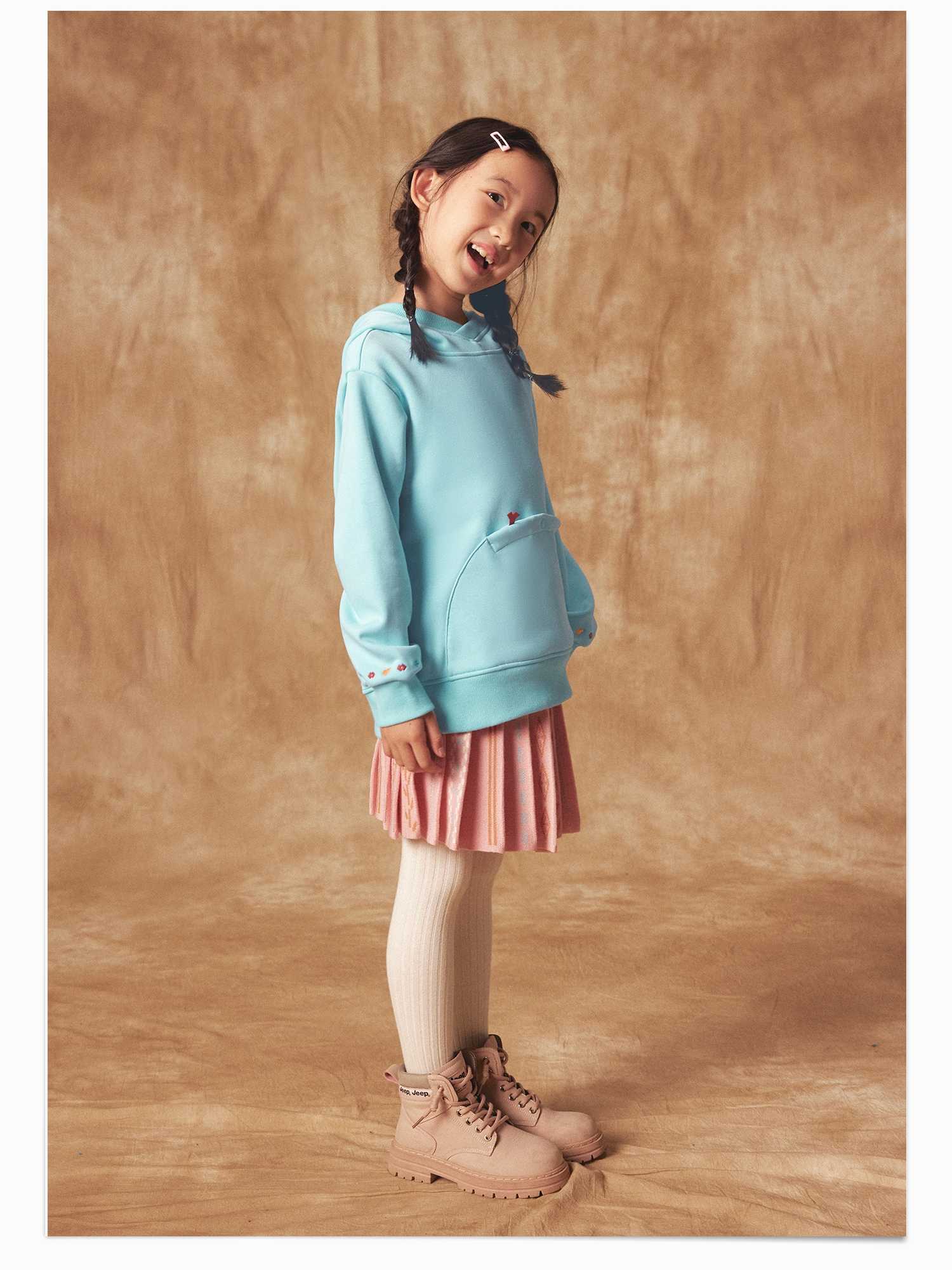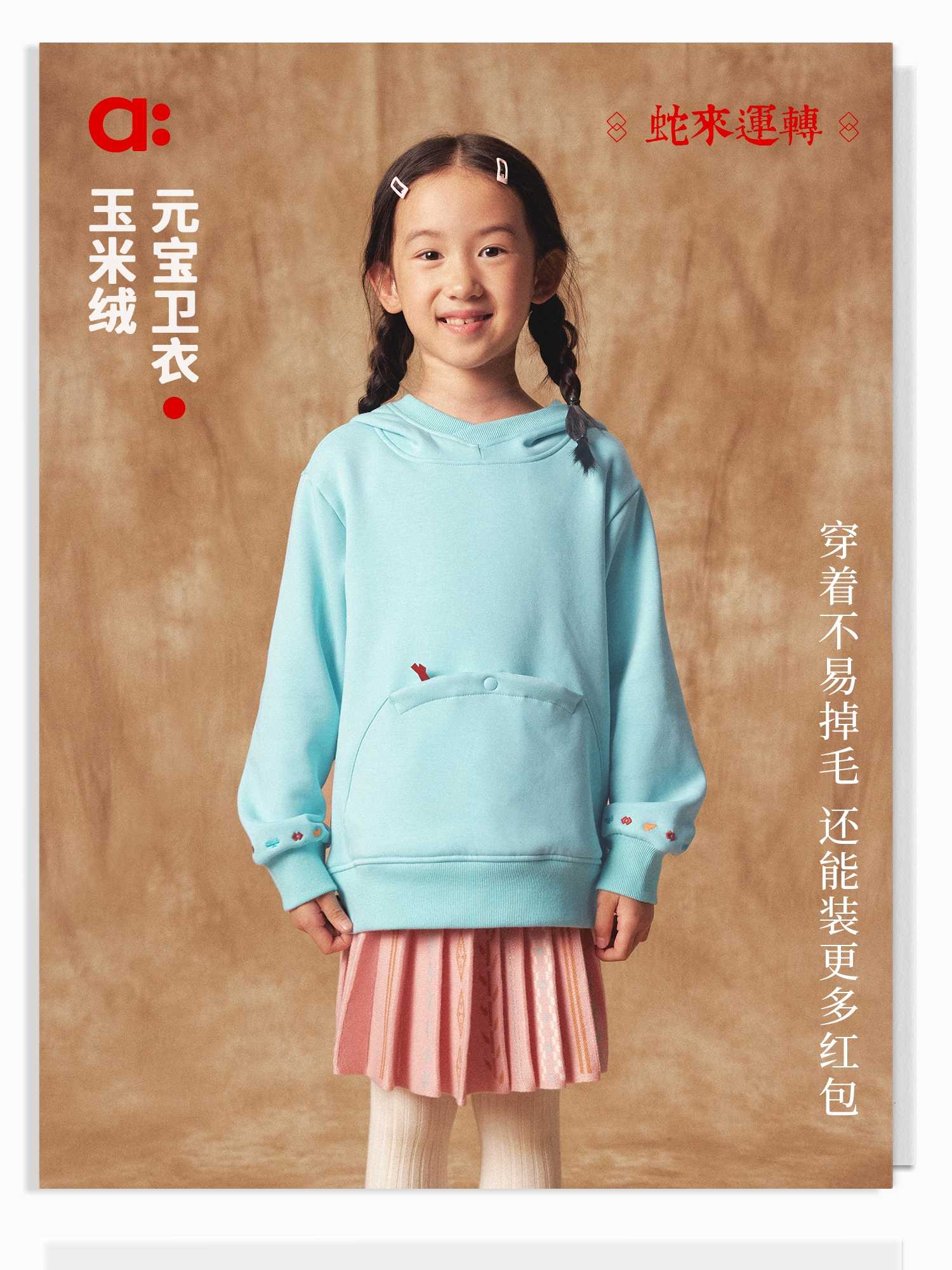 【折扣】幼岚【玉米绒】儿童卫衣秋冬女童男童新款宽松保暖加帽上衣