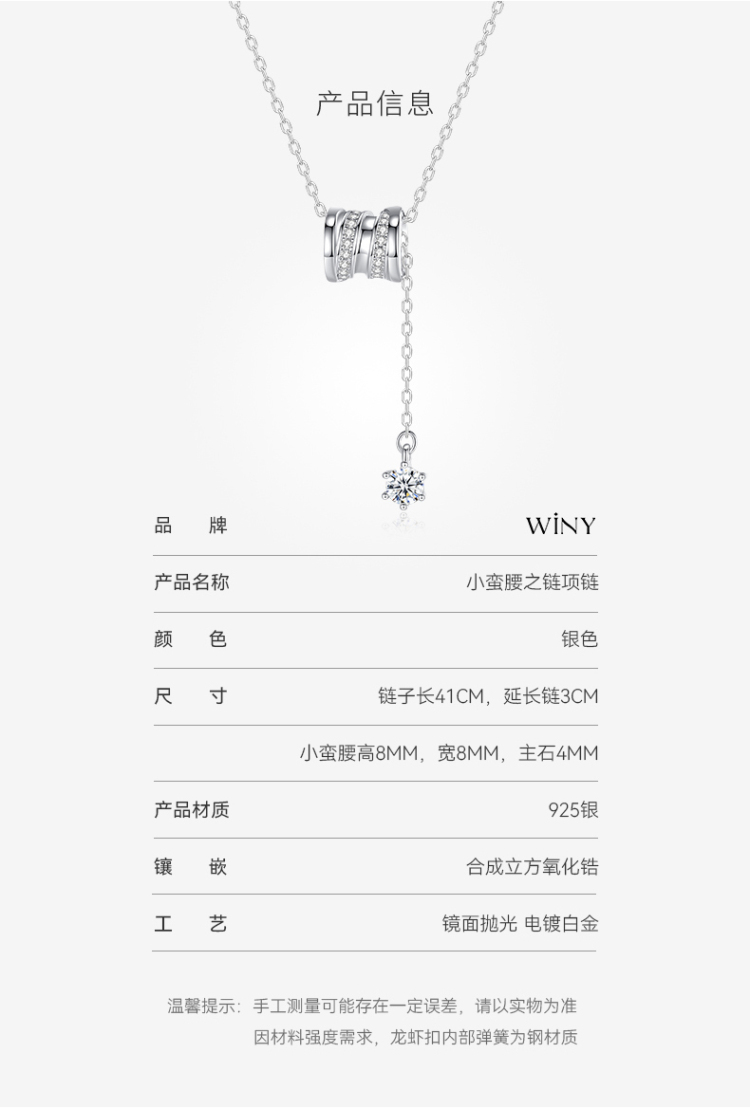 Winy925纯银小蛮腰之链项链女生新款颈链轻奢小众精致锁骨链送女友生日礼物