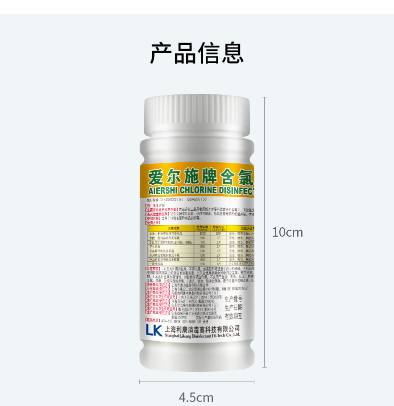 爱尔施含氯消毒片 泡腾片消毒浴缸杀菌宠物家用100片