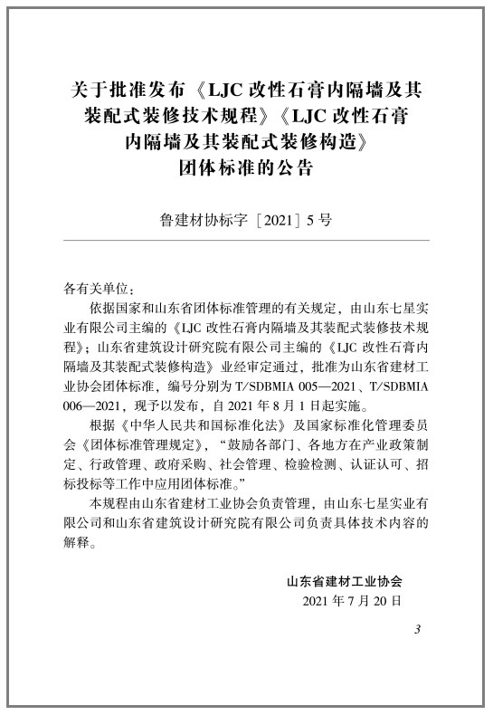 书名:LJC改性石膏内隔墙及其装配式装修技术规程 T/SDBMIA 005-2021