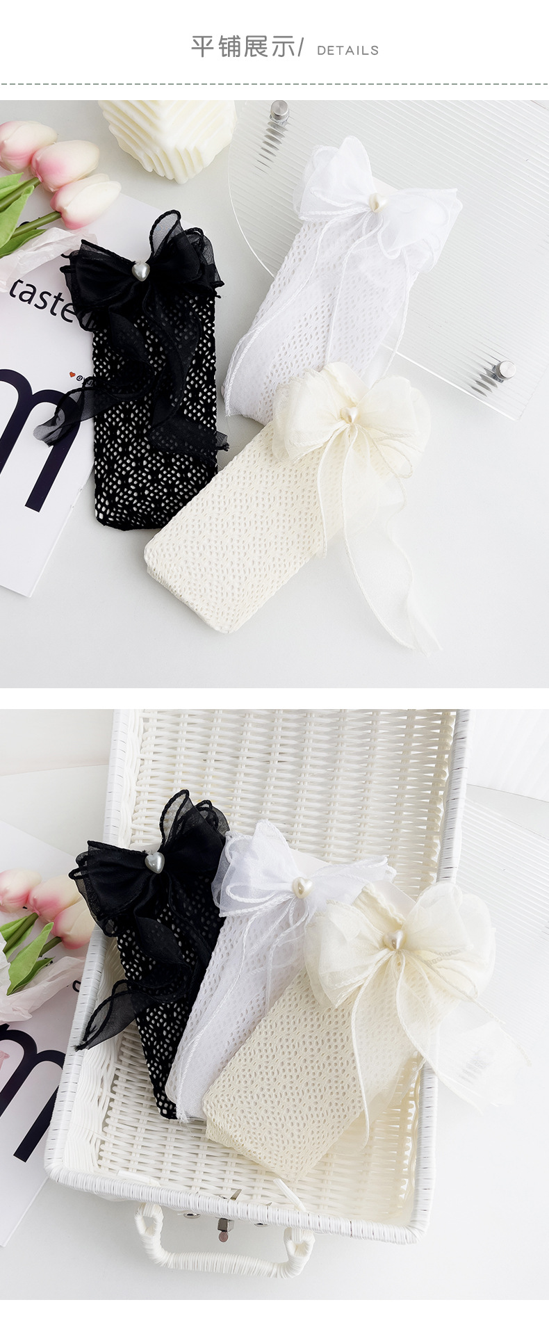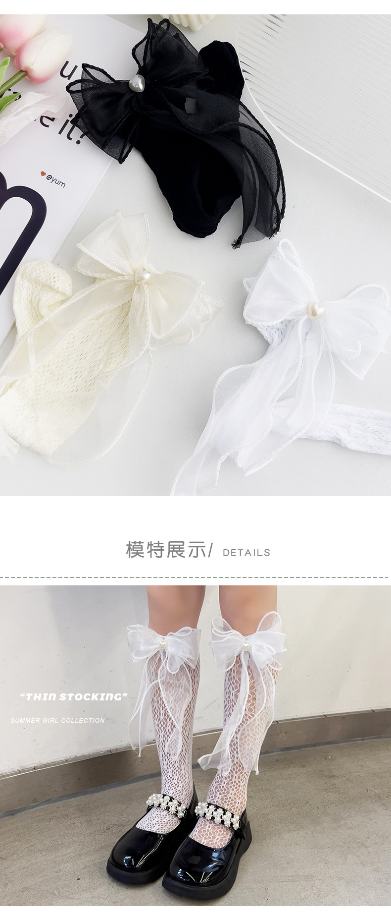 【买一送一!】三层蝴蝶结 珍珠爱心网眼袜 儿童袜子薄款 小腿袜女童宝宝 春夏蕾丝袜-QQ