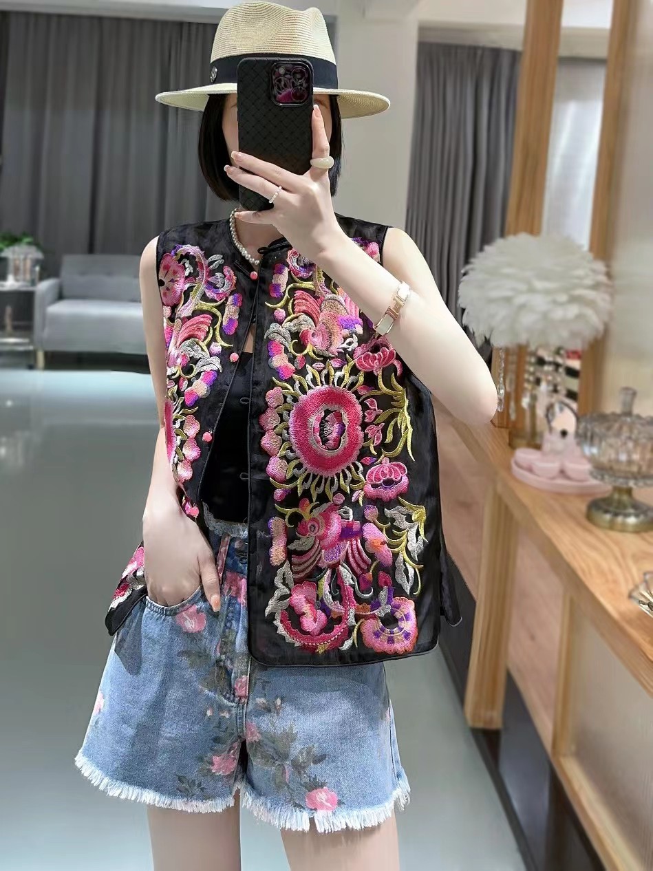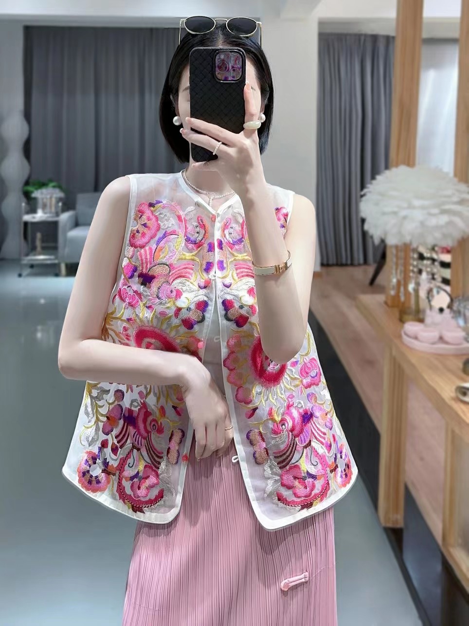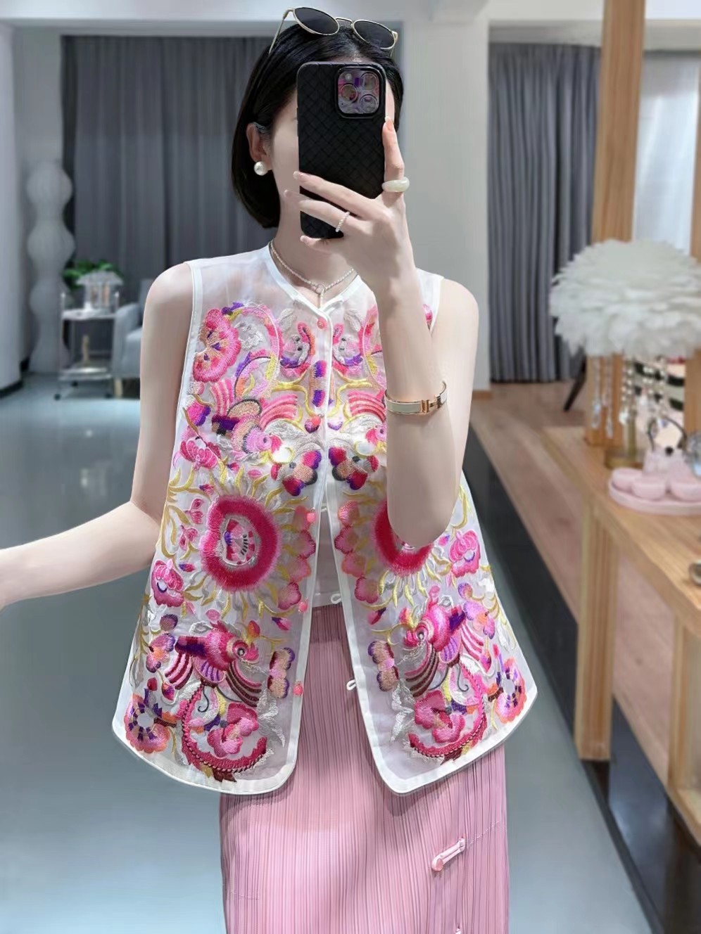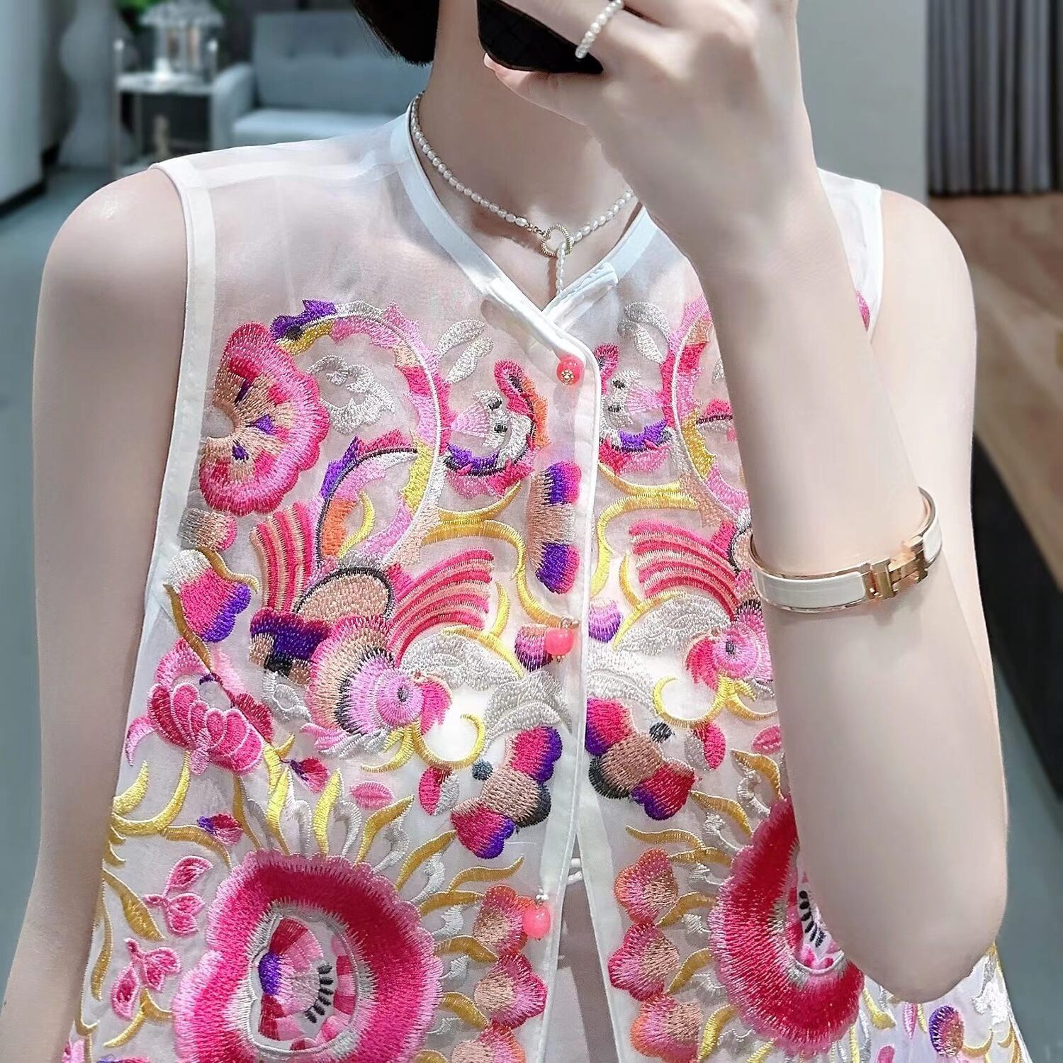 KDS-2242国风马甲夏天外穿薄款女新中式民族刺绣马夹欧根纱国潮风背心
