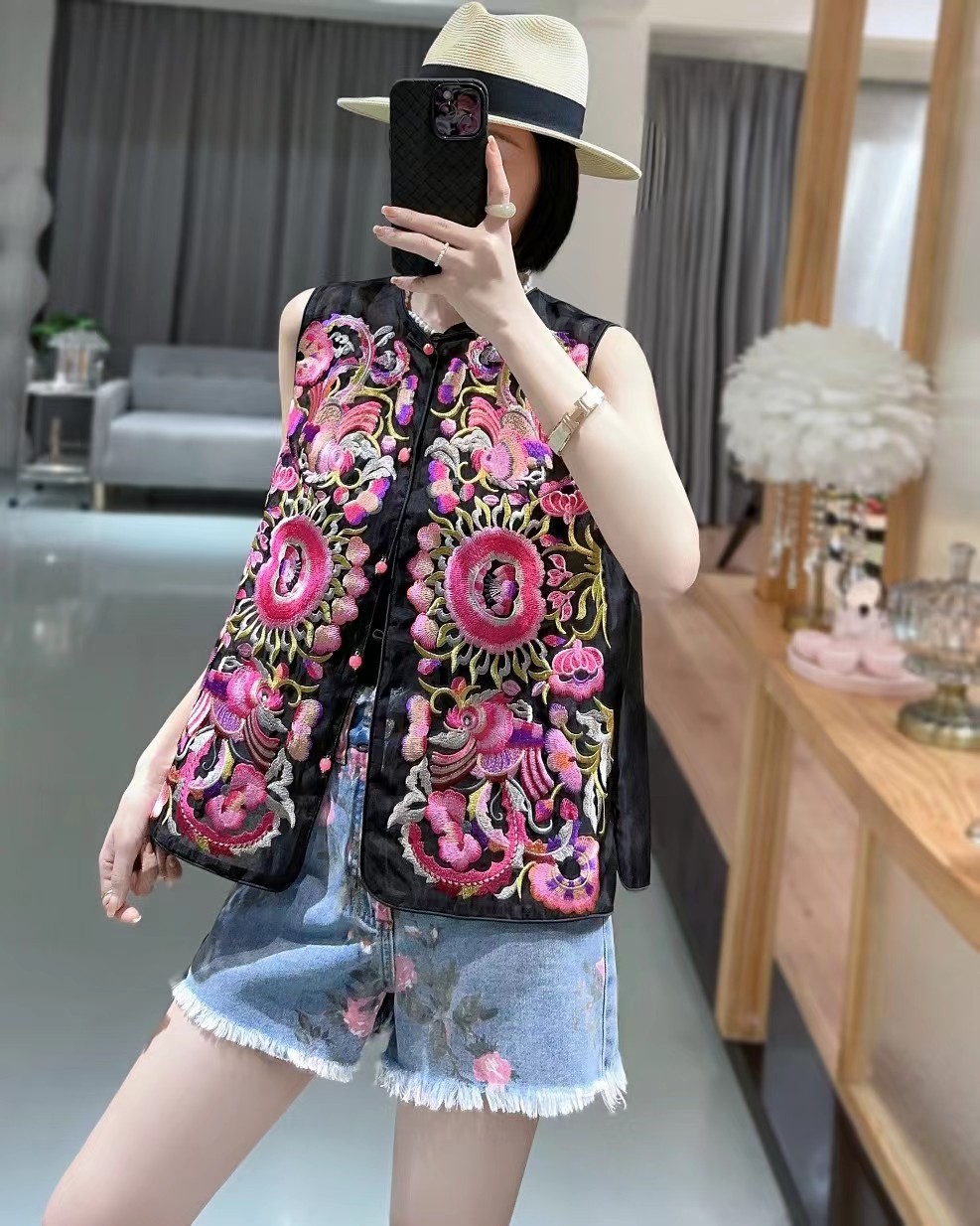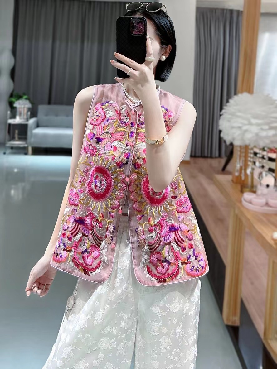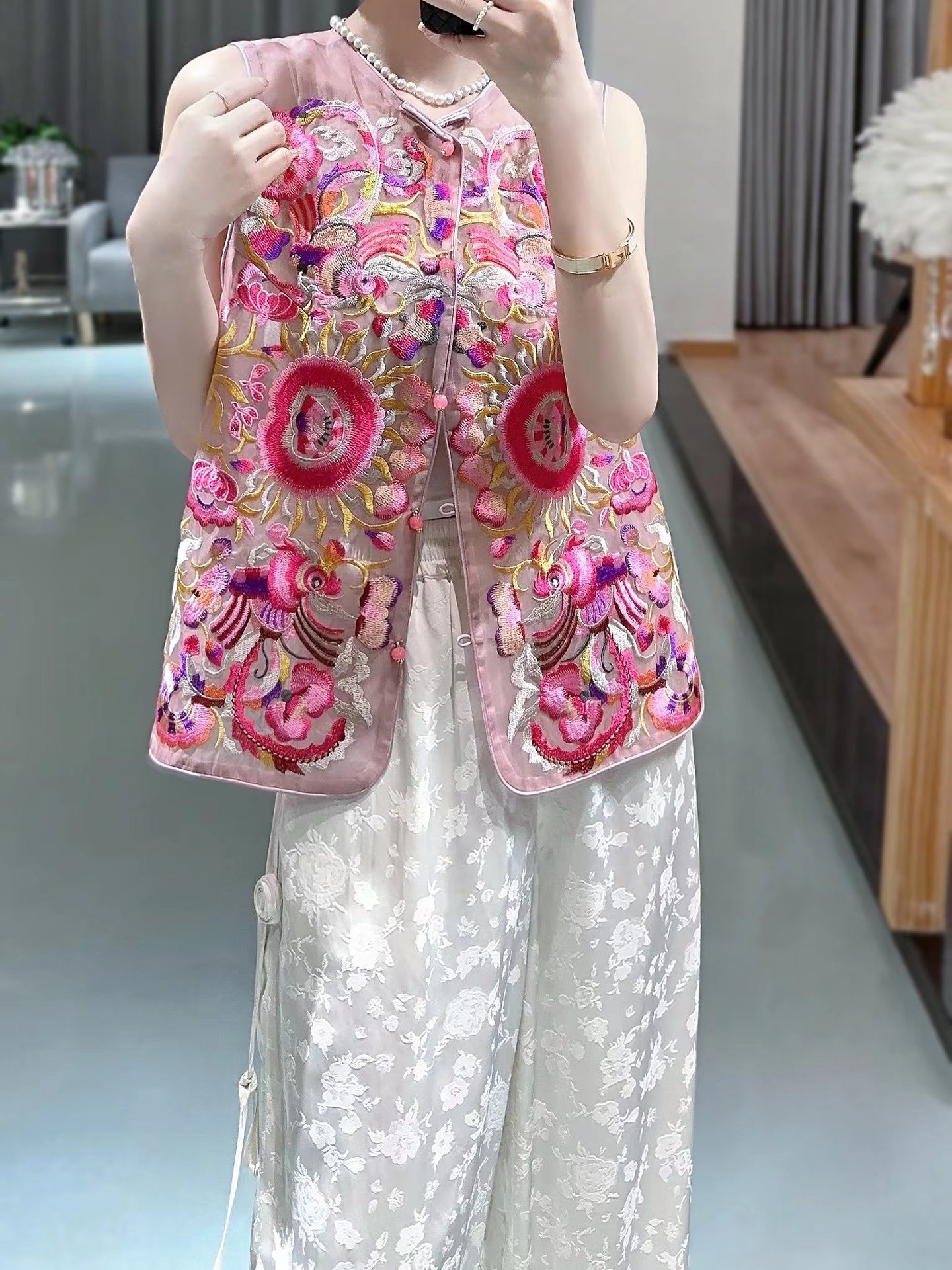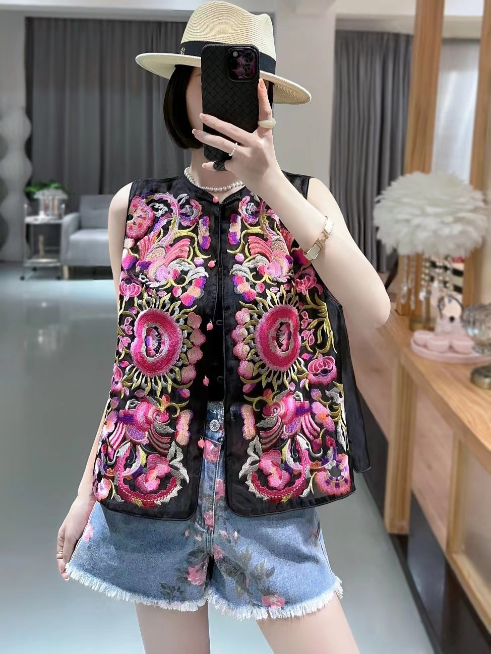 KDS-2242国风马甲夏天外穿薄款女新中式民族刺绣马夹欧根纱国潮风背心