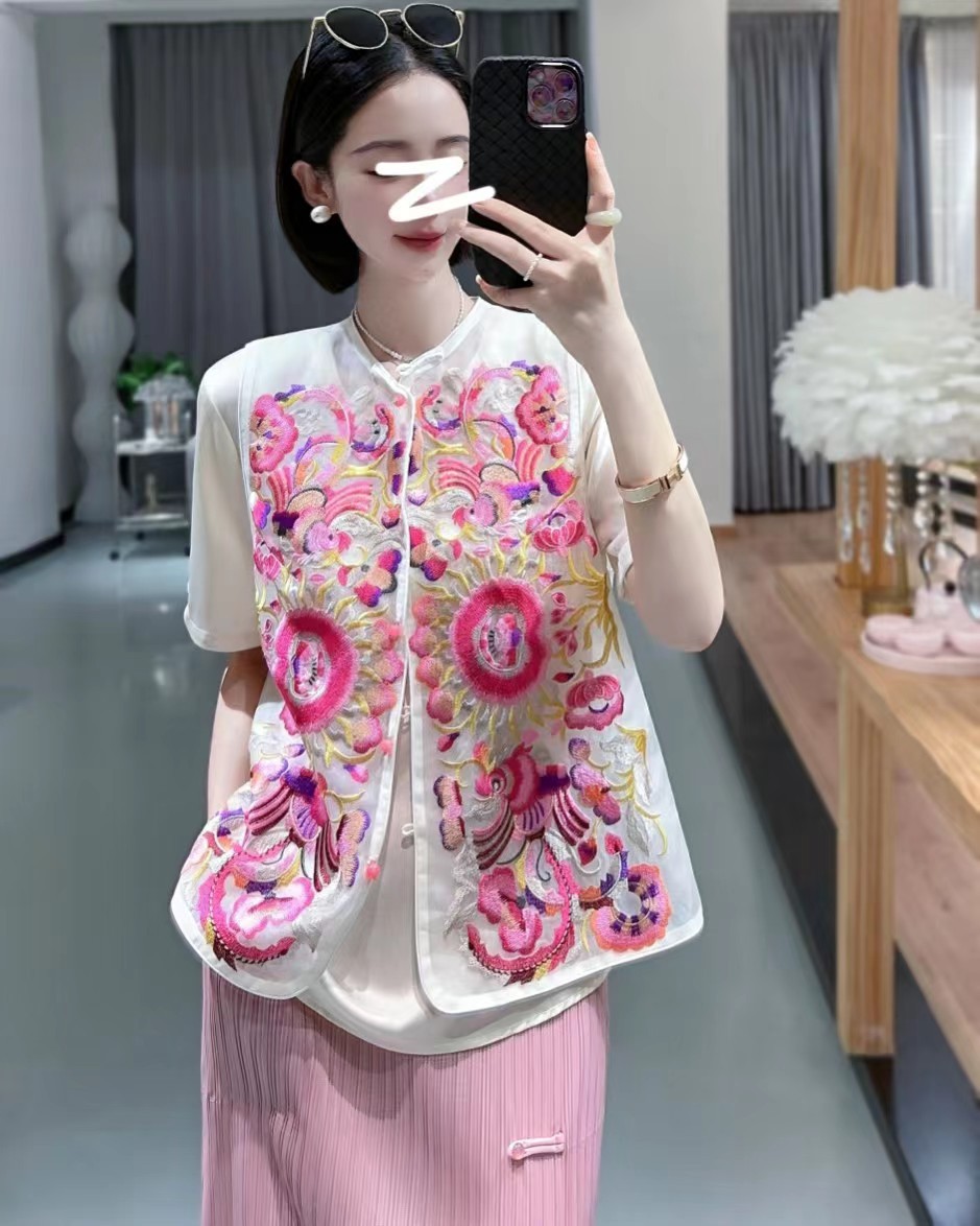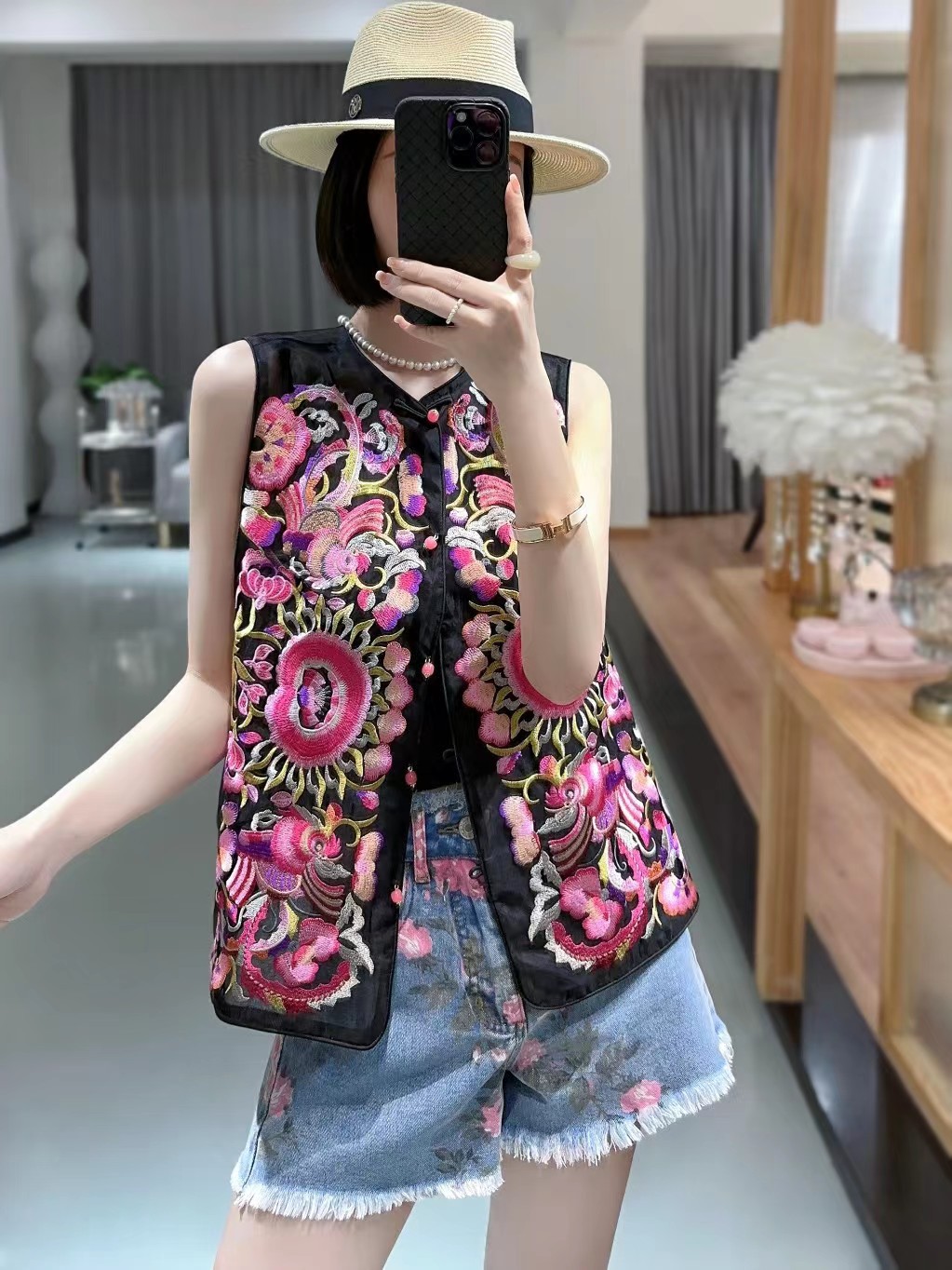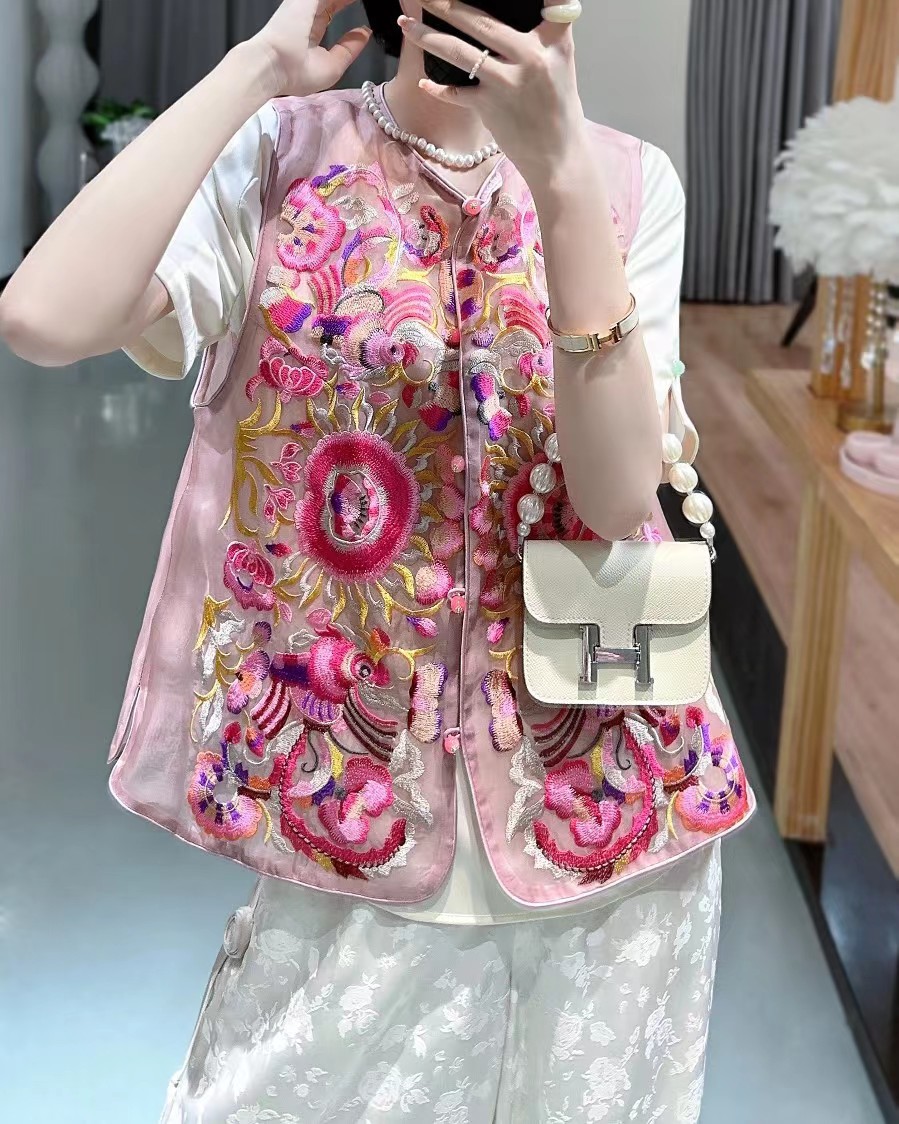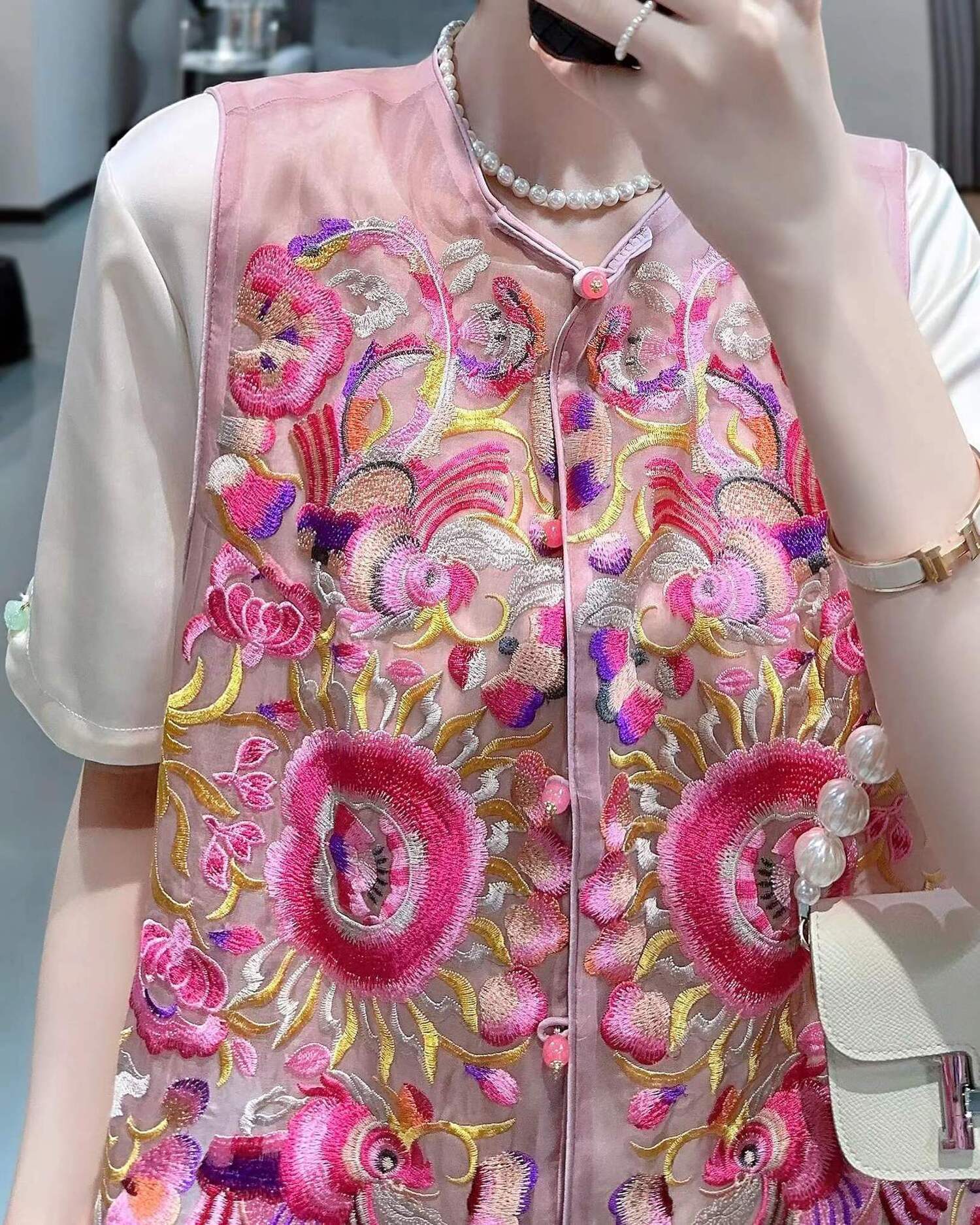 KDS-2242国风马甲夏天外穿薄款女新中式民族刺绣马夹欧根纱国潮风背心