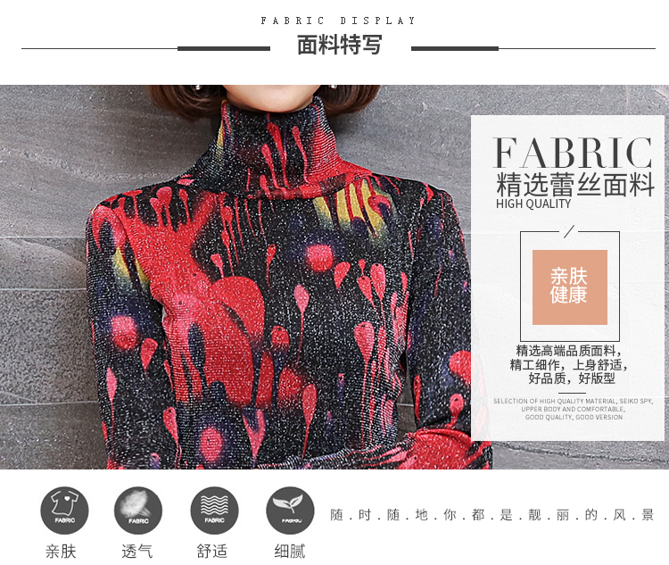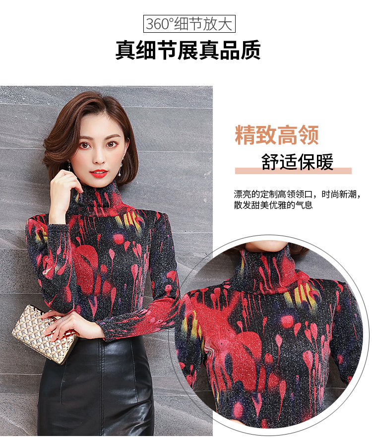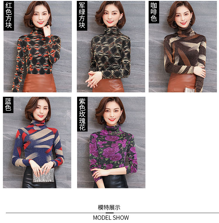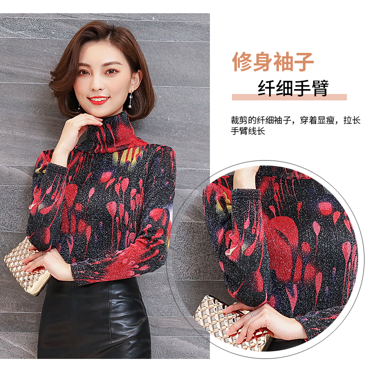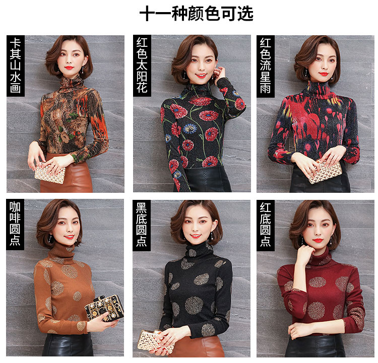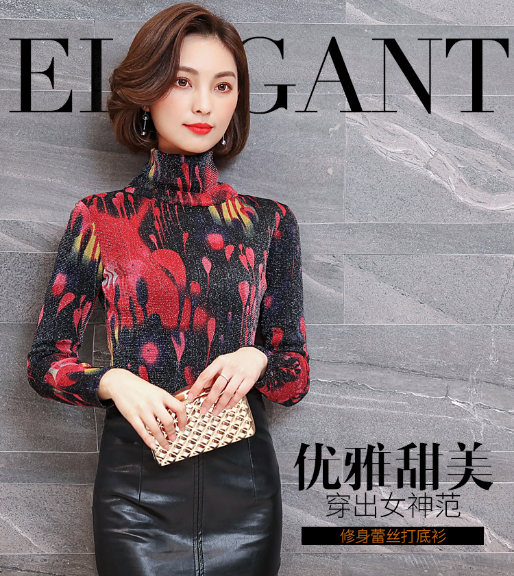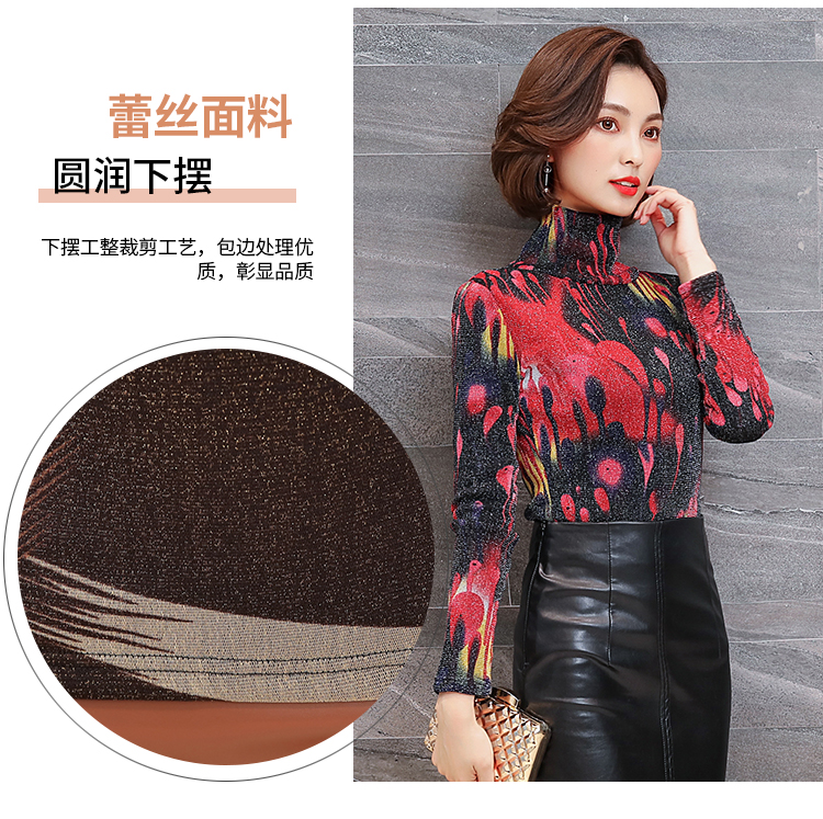 AL YZX5196 冬季单件高领花色通勤蕾丝衫