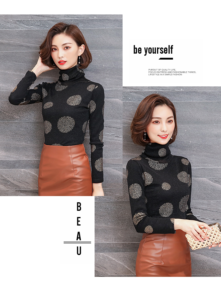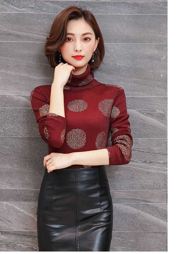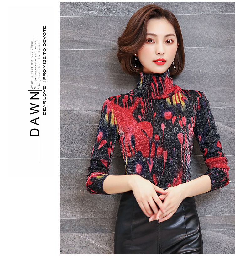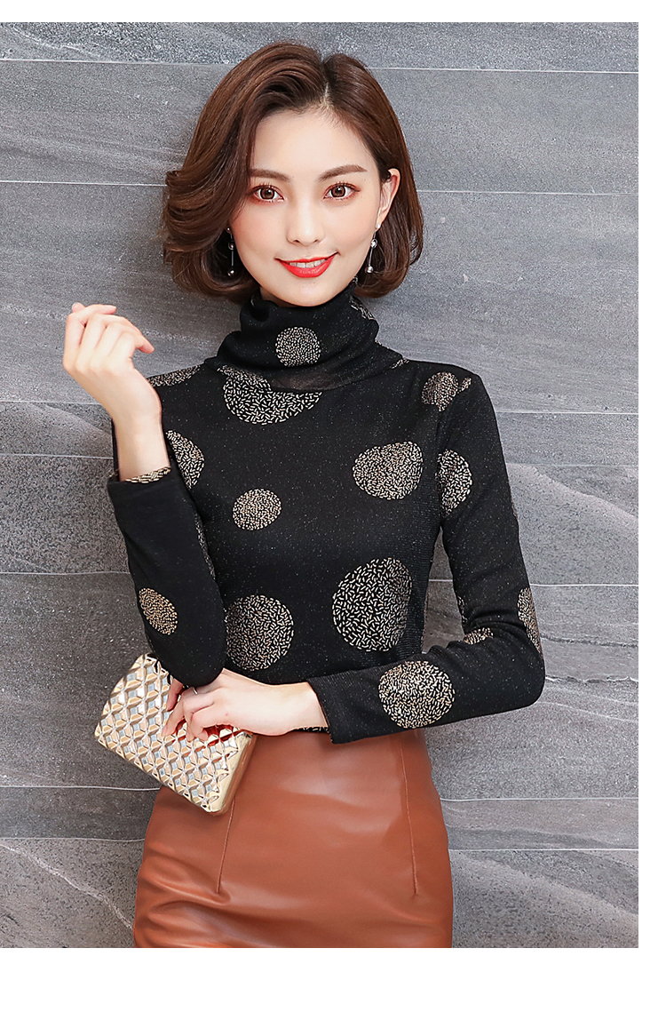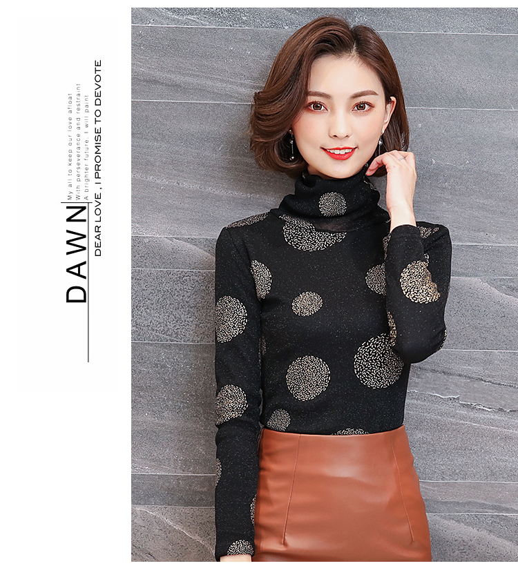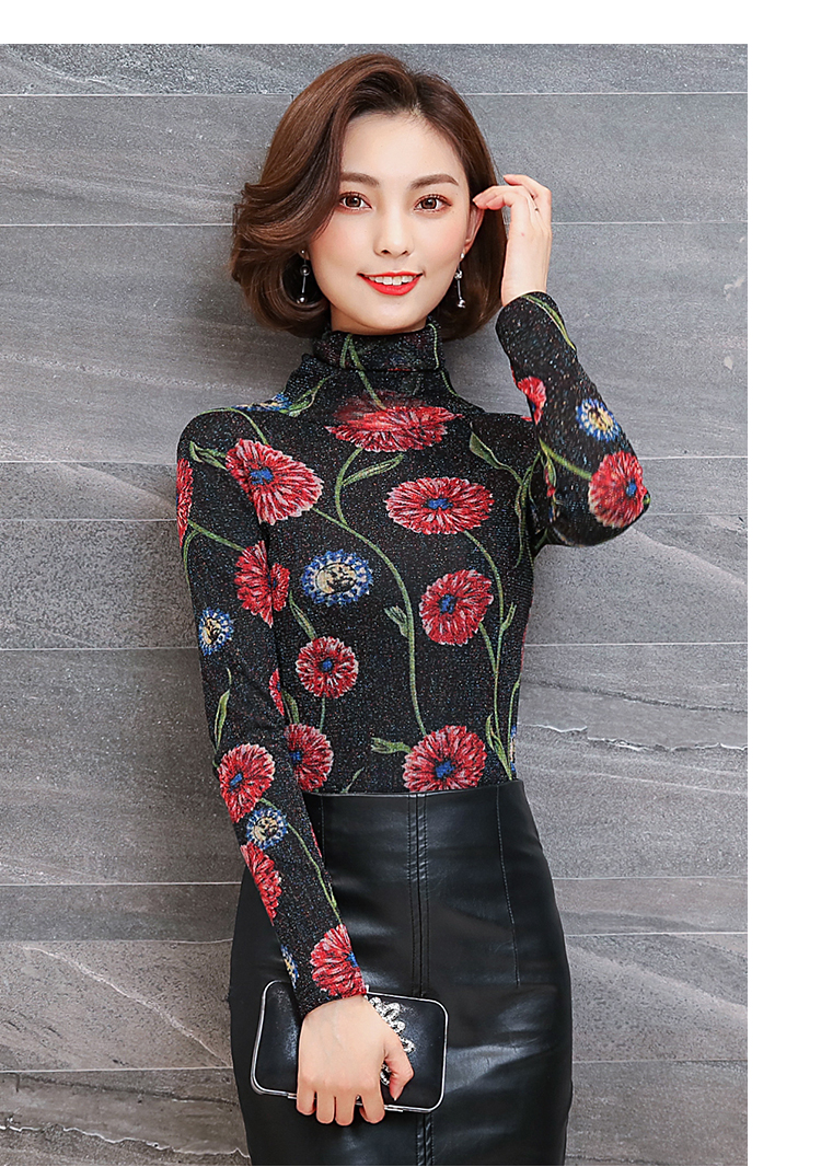 AL YZX5196 冬季单件高领花色通勤蕾丝衫