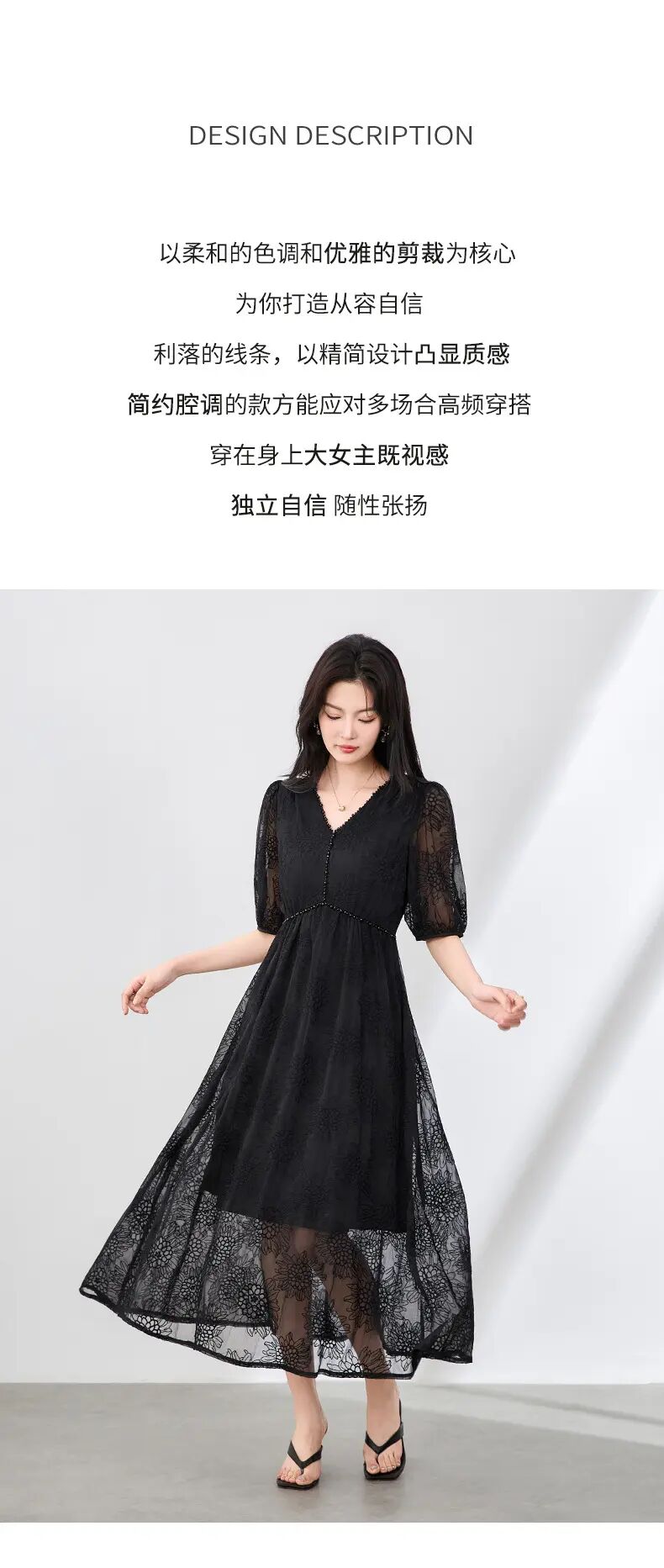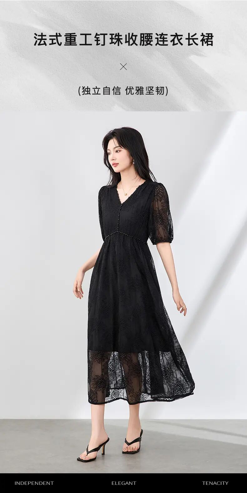「高货wl」全新升级【铂金会员367/天猫499/差价132】(20816)洛诗琳法式重工提花刺绣连衣裙2025夏季高级感钉珠优雅长裙20816