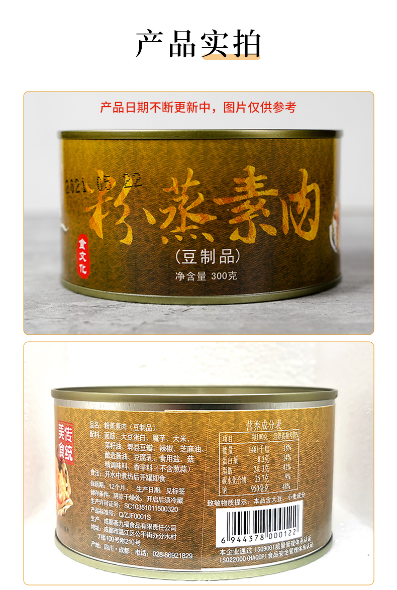 粉蒸素肉 | 160g/300g 川味微辣 开罐即食 佐餐配菜 方便罐头 开胃菜 斋九福