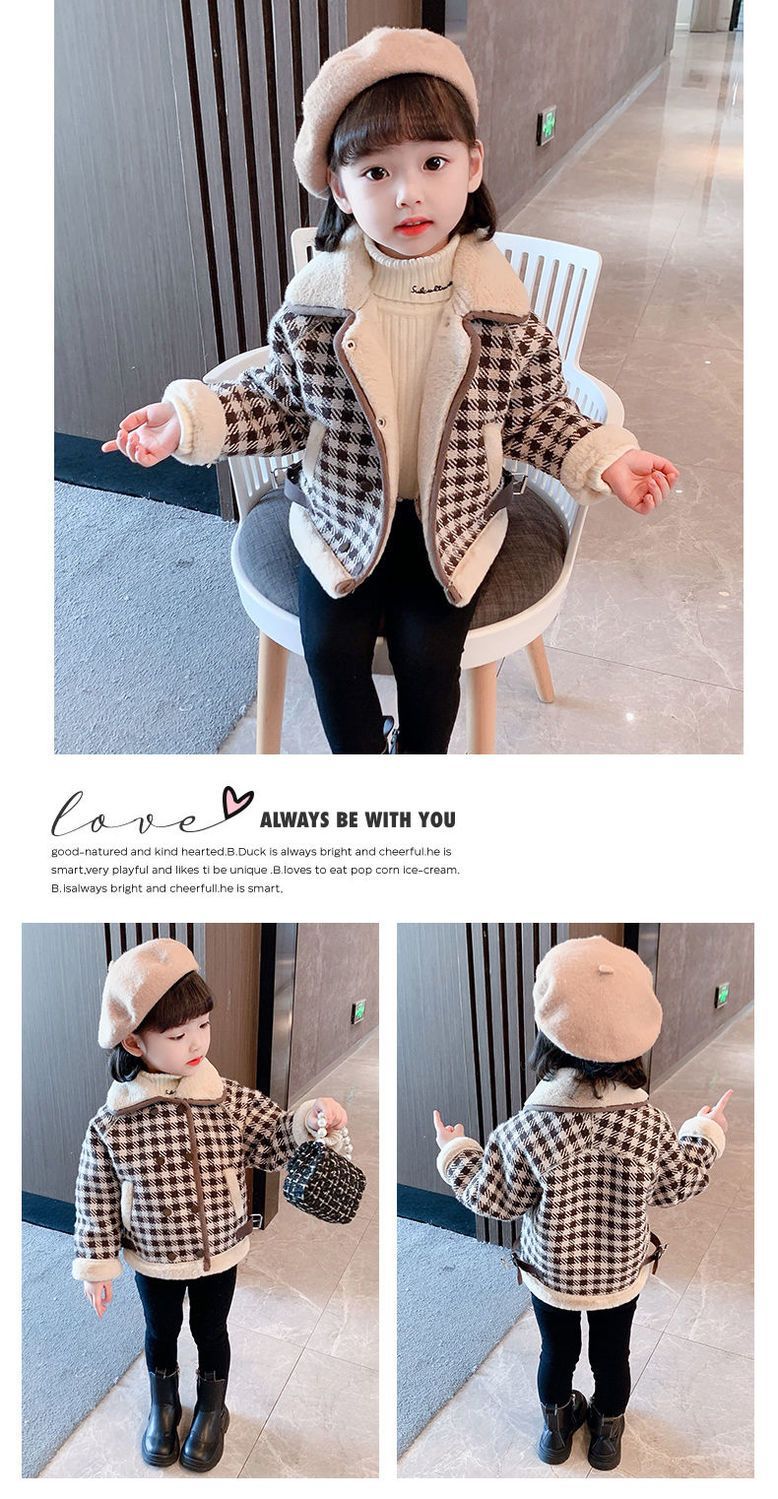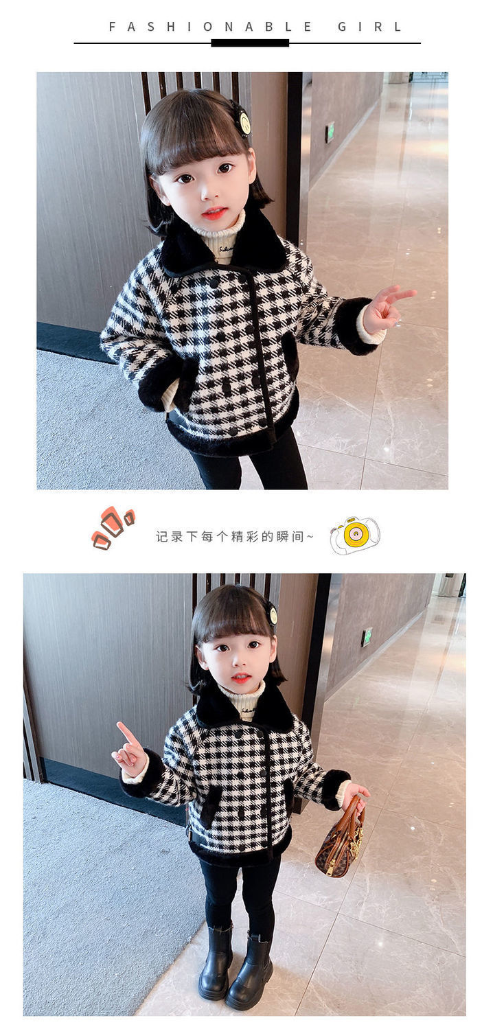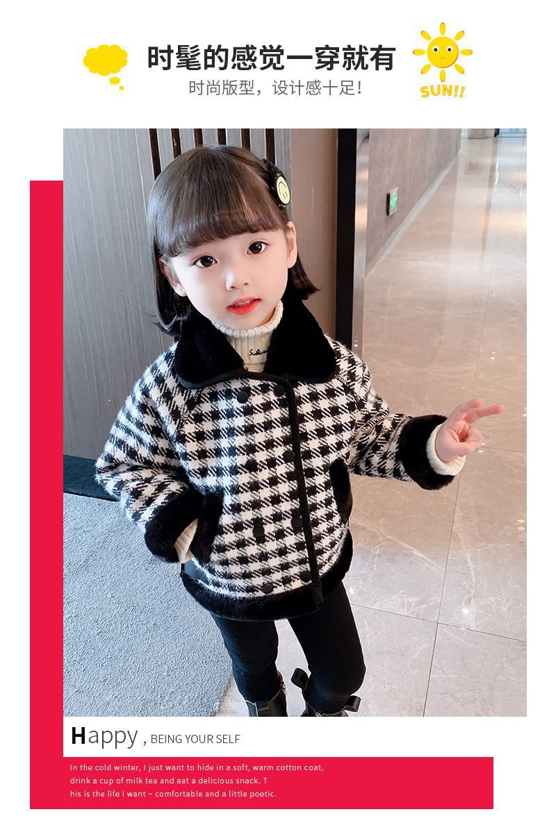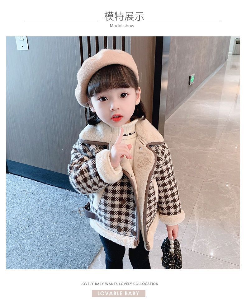 【时尚版型,设计感十足!】女童加厚外套秋冬装 新款洋气网红儿童 女宝宝加绒格子呢子大衣-QQ
