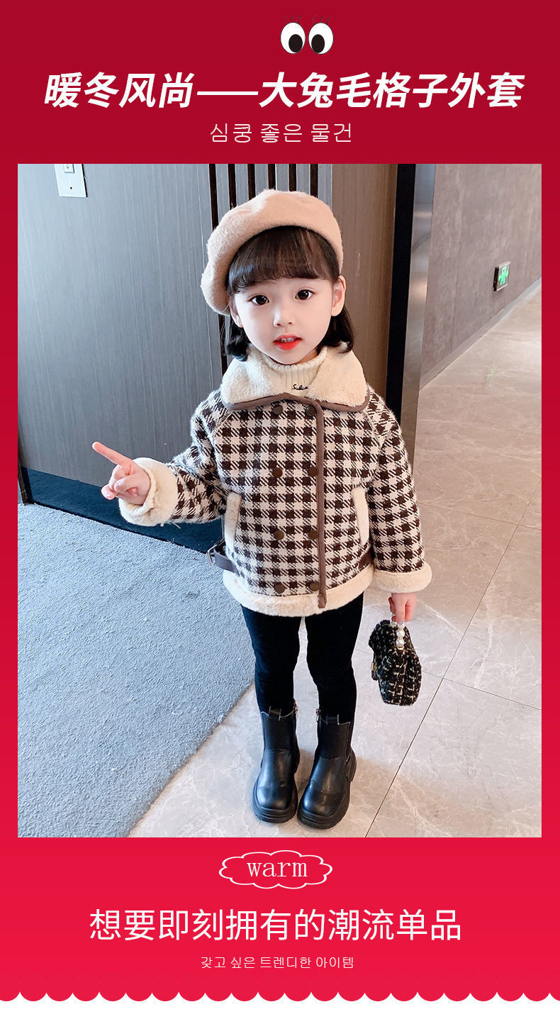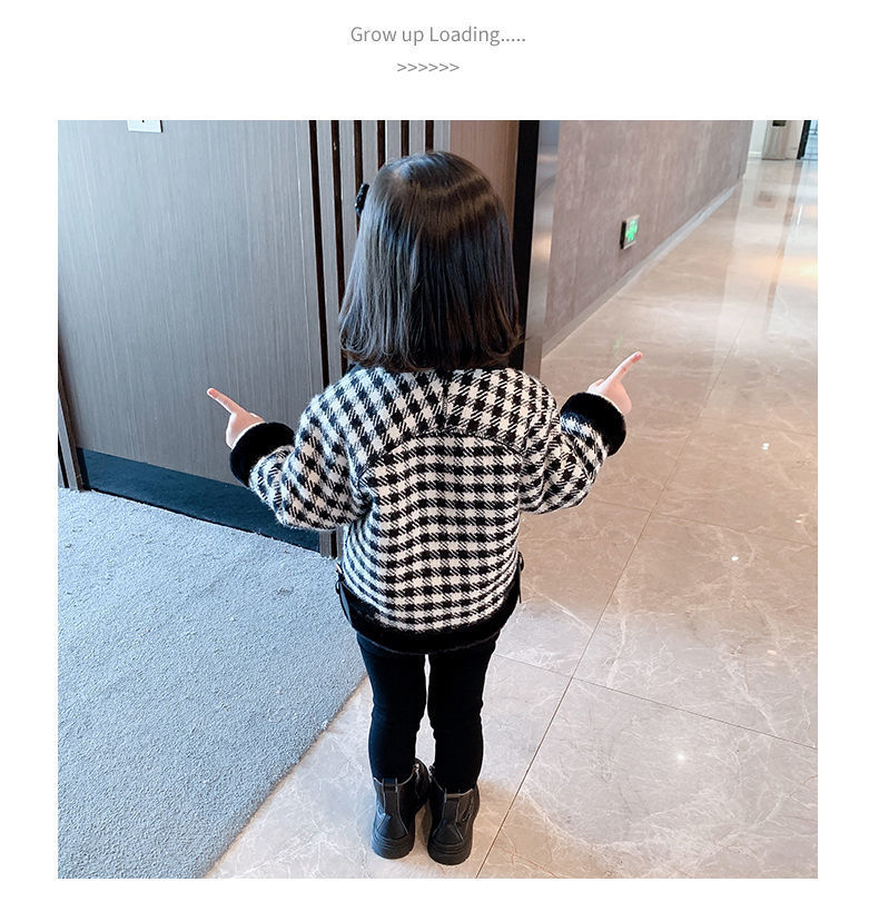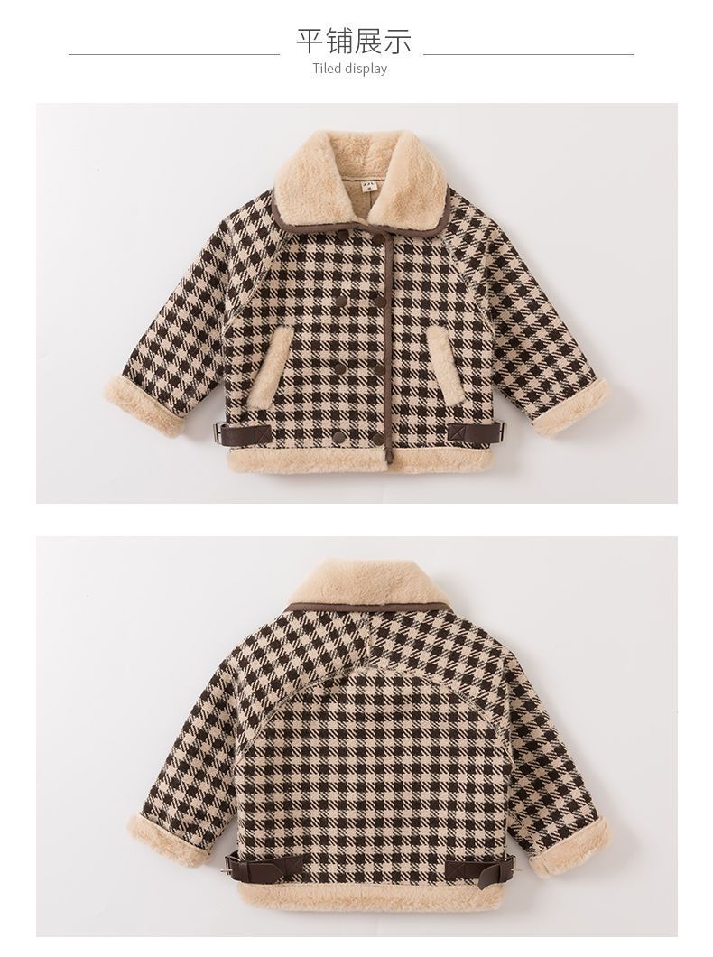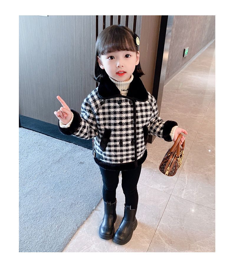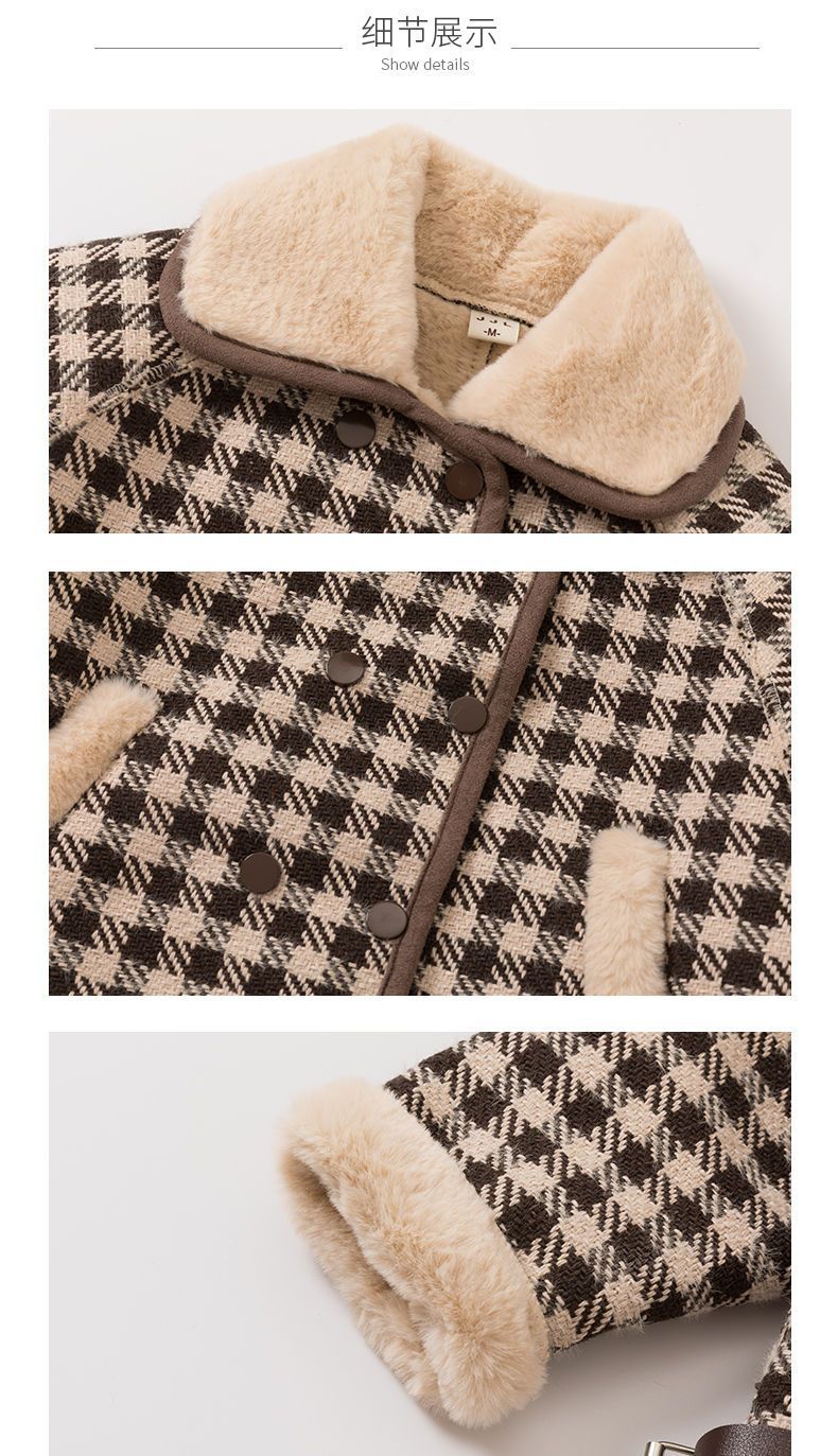 【时尚版型,设计感十足!】女童加厚外套秋冬装 新款洋气网红儿童 女宝宝加绒格子呢子大衣-QQ