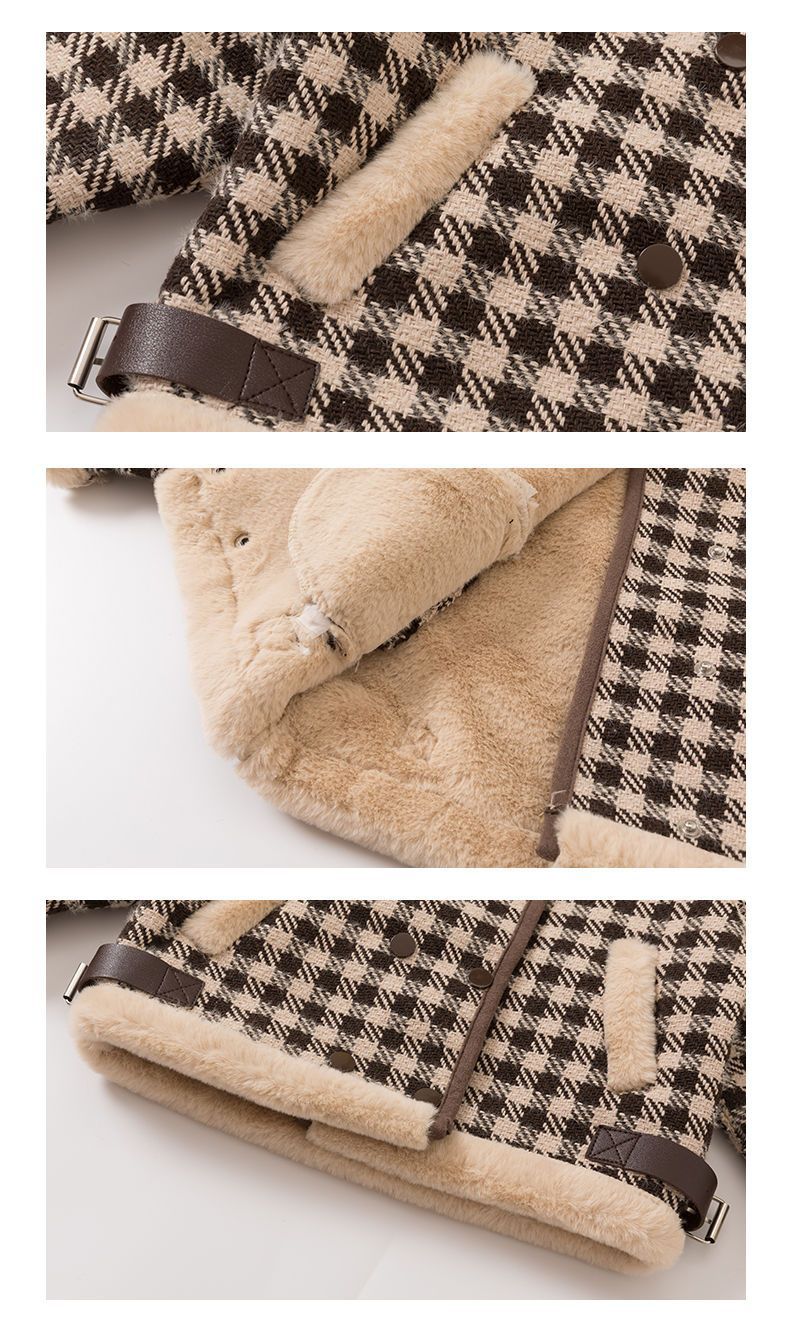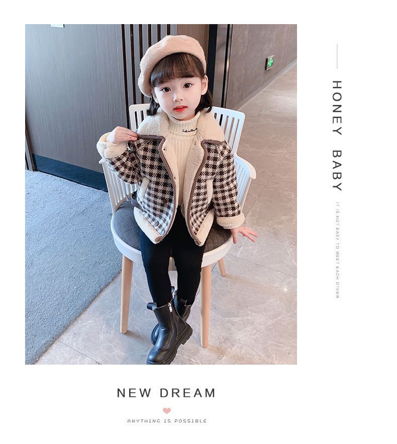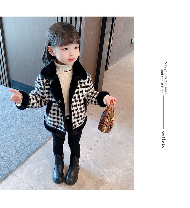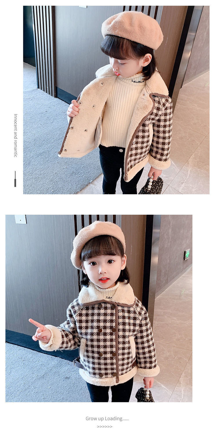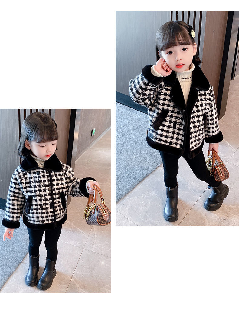 【时尚版型,设计感十足!】女童加厚外套秋冬装 新款洋气网红儿童 女宝宝加绒格子呢子大衣-QQ